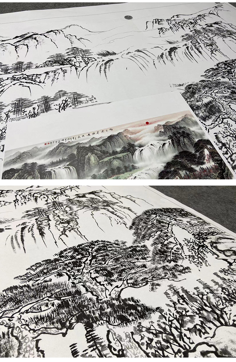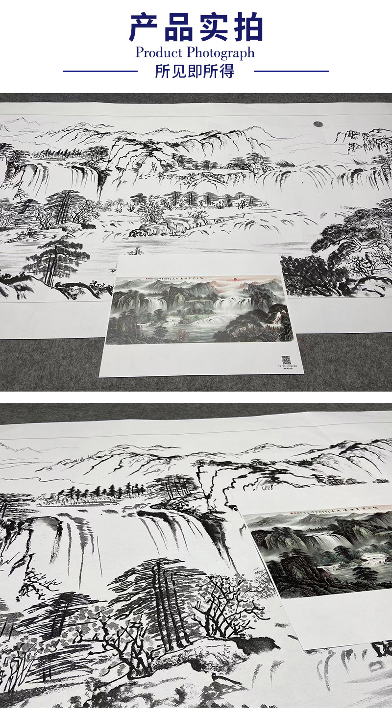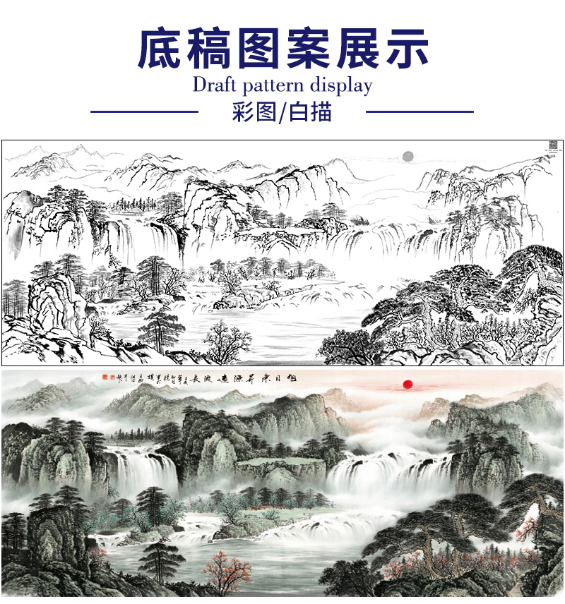 【大彩图】横幅工笔画白描底稿《绿水青山》临摹勾线山水线稿FS12
