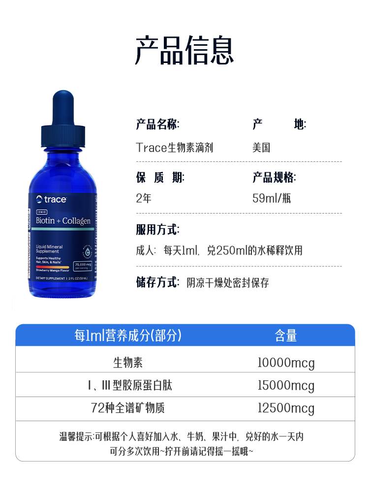 TRACE液态离子生物素+胶原蛋白滴剂59ML