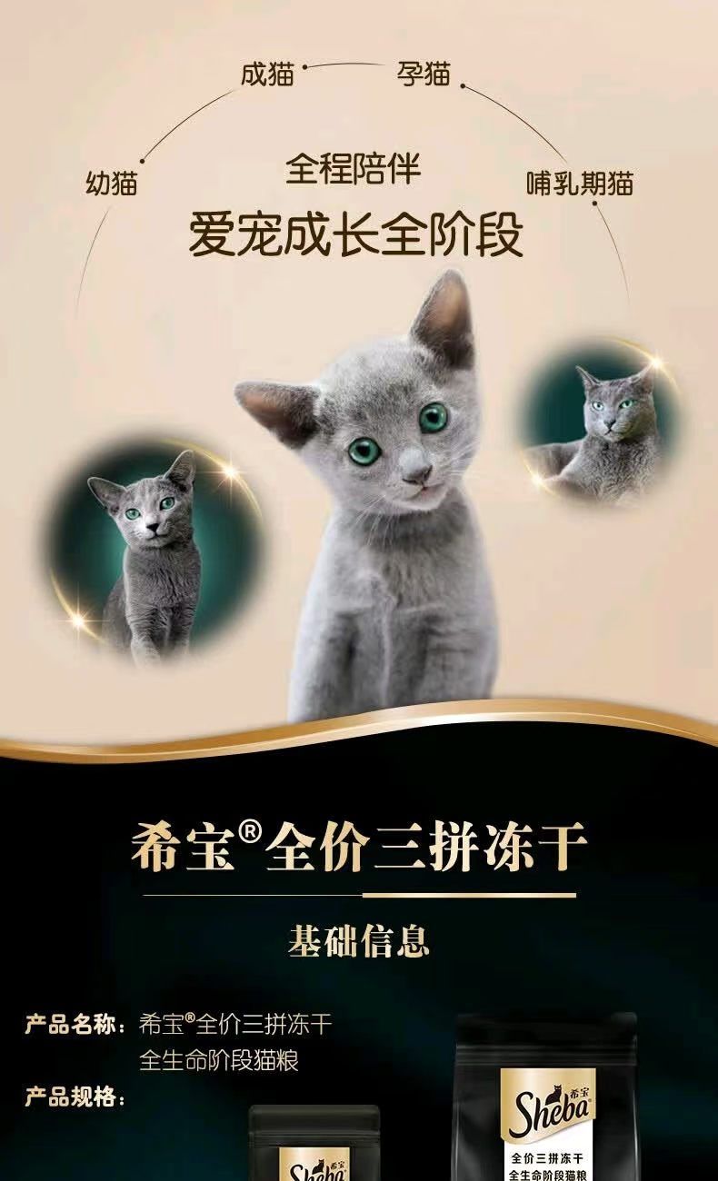 希宝全价三拼冻干粮成幼猫专用高蛋白营养主粮膨化粮1.5kg/袋