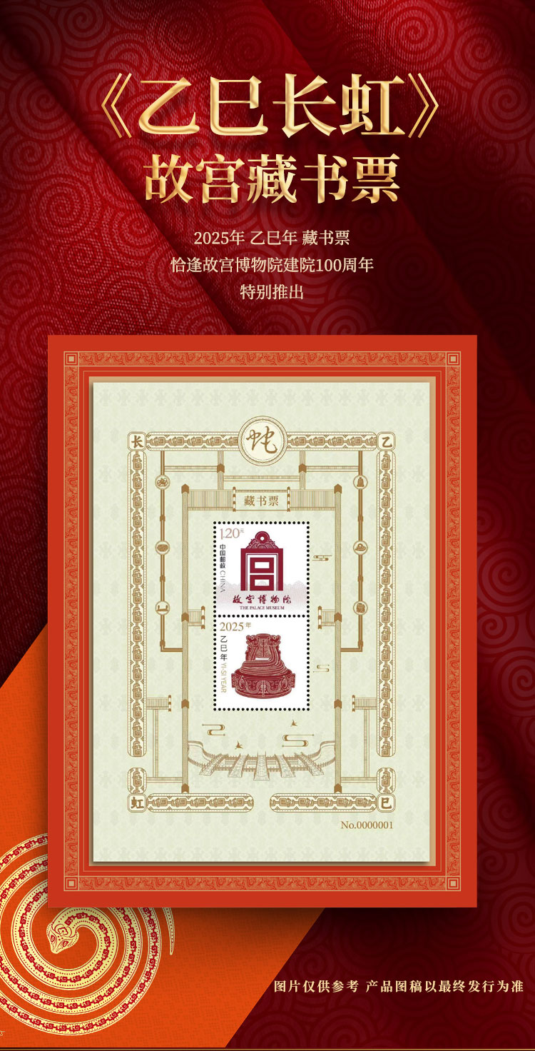 【盖章版 故宫博物院出品】2025故宫蛇年藏书票 故宫博物院出品 蛇年限定「乙巳长虹」藏书票