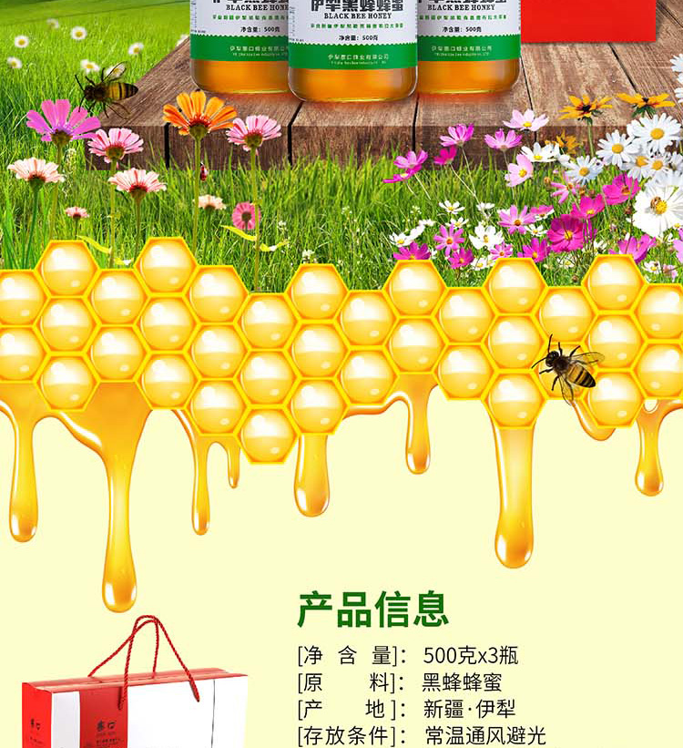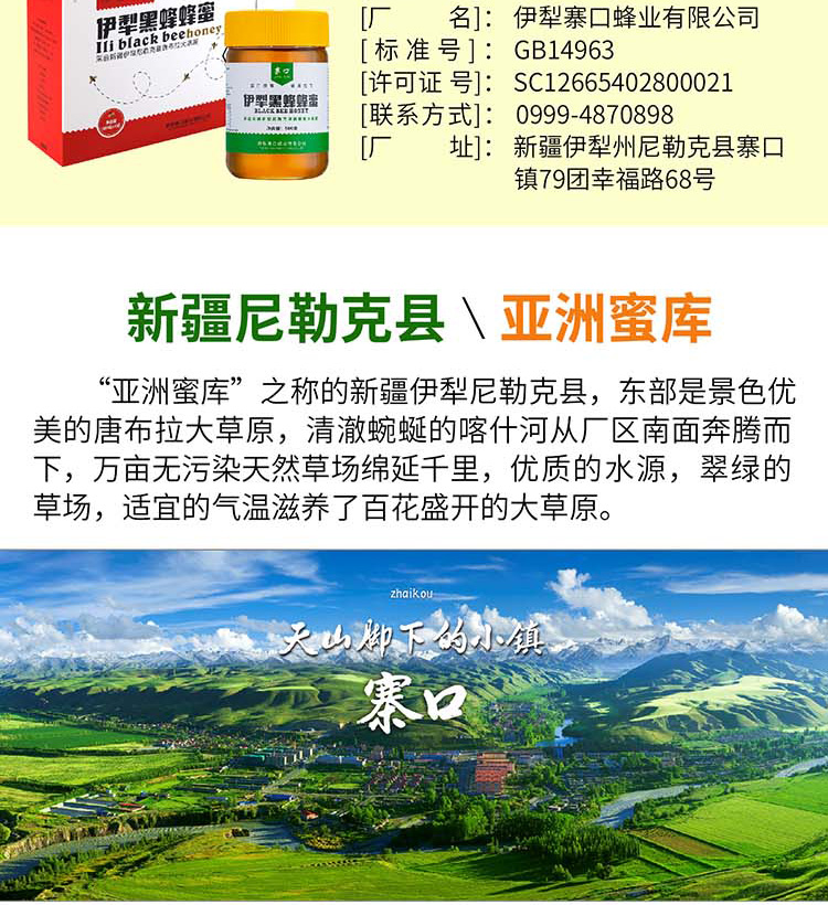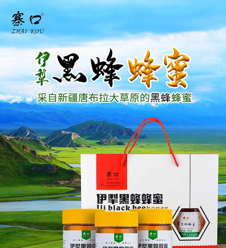 寨口·伊犁黑蜂蜂蜜礼盒 500g*3瓶 来自“亚洲蜜库”之称的新疆伊犁尼勒克县