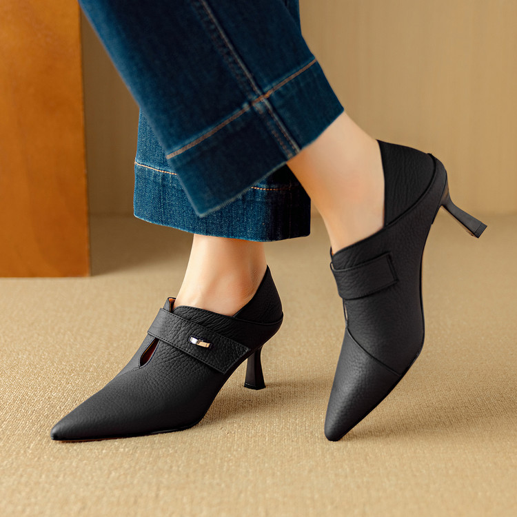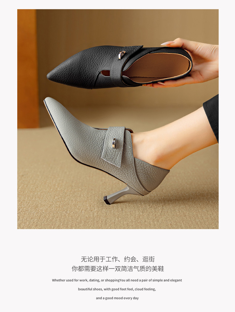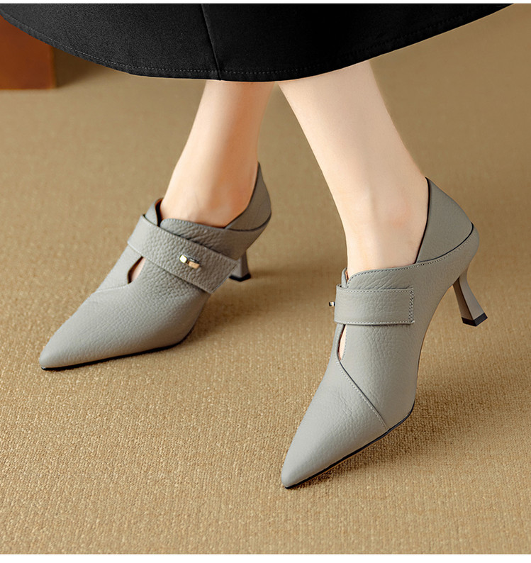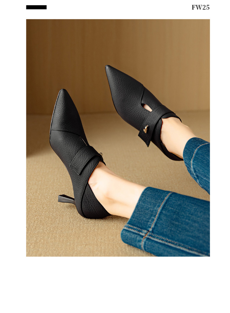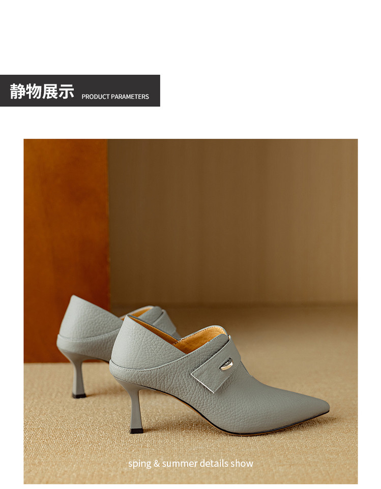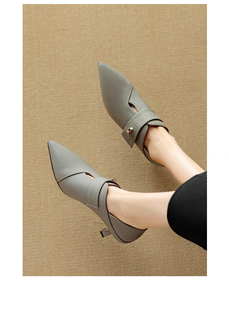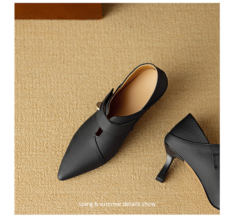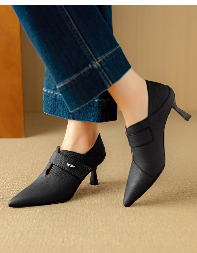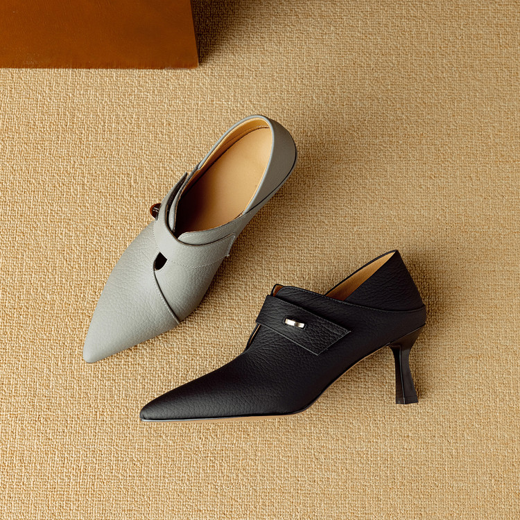 【预售5天】法式复古真皮高跟鞋女新款气质尖头深口单鞋小皮鞋DB&M6608