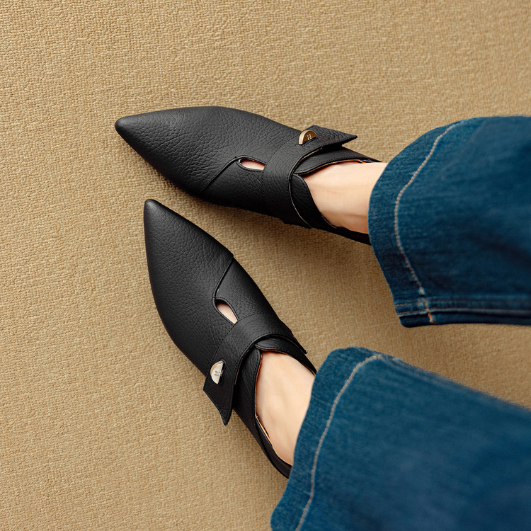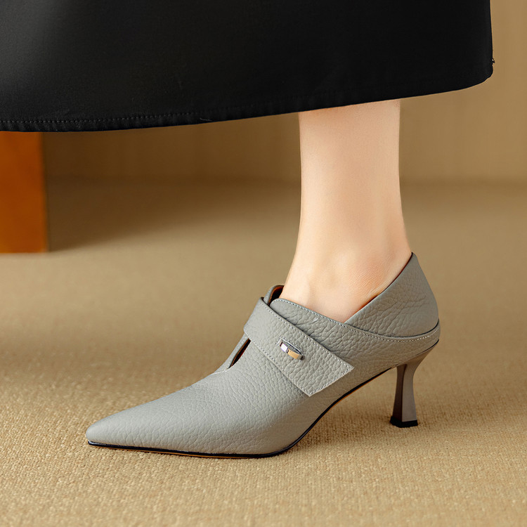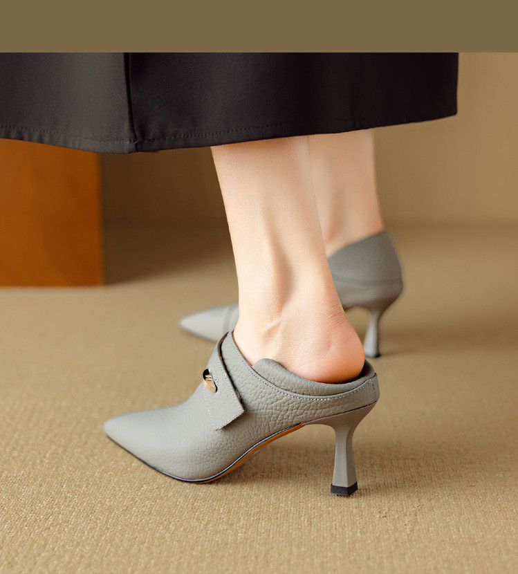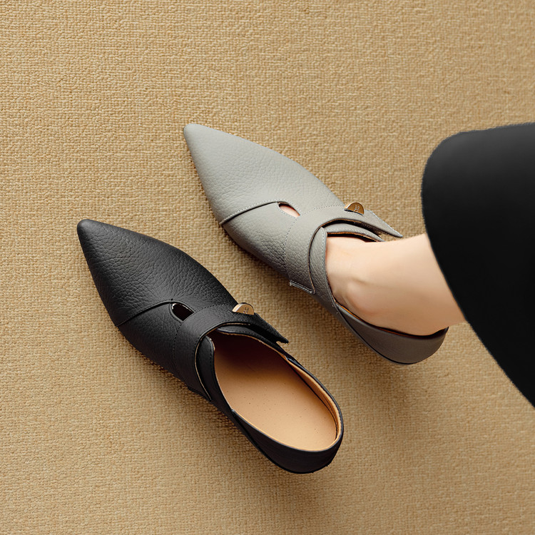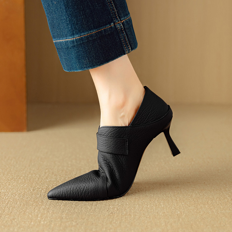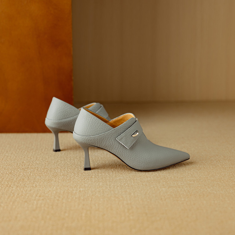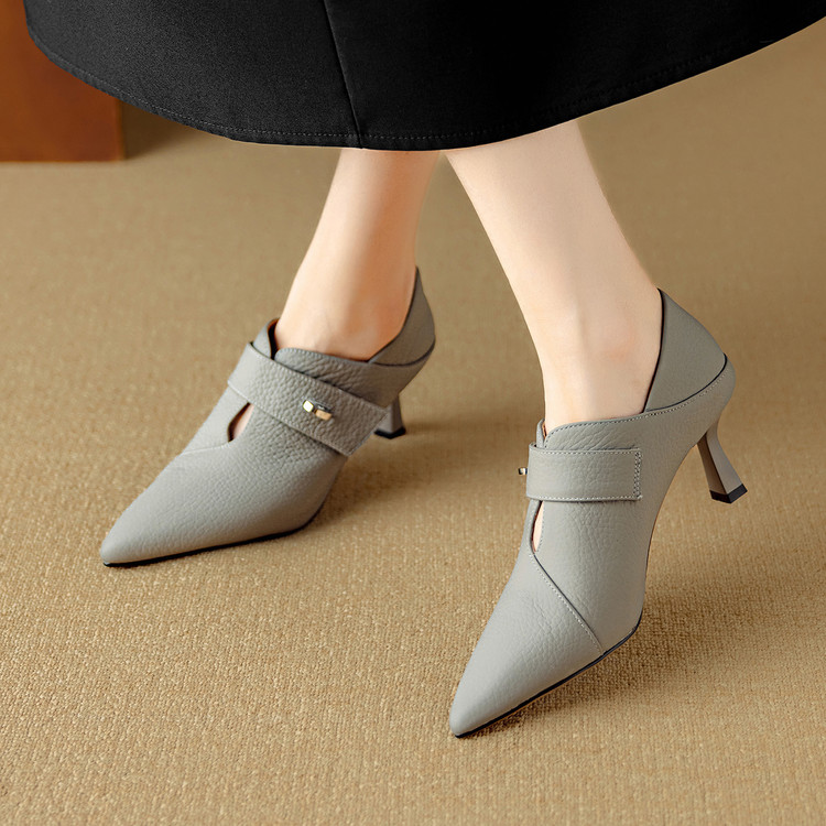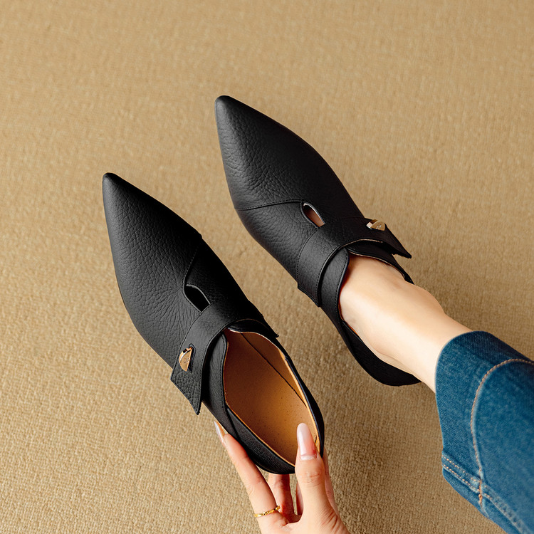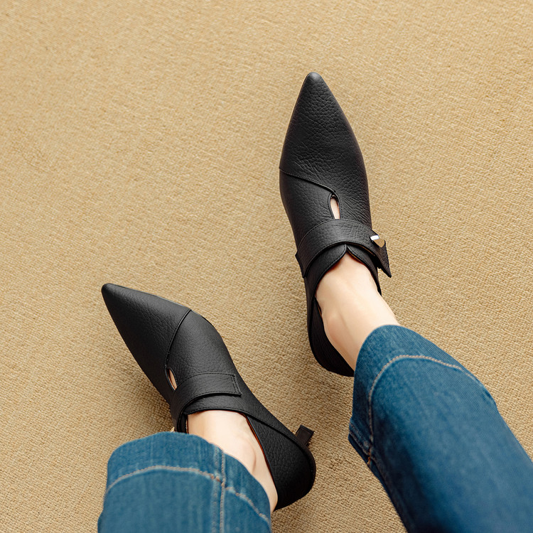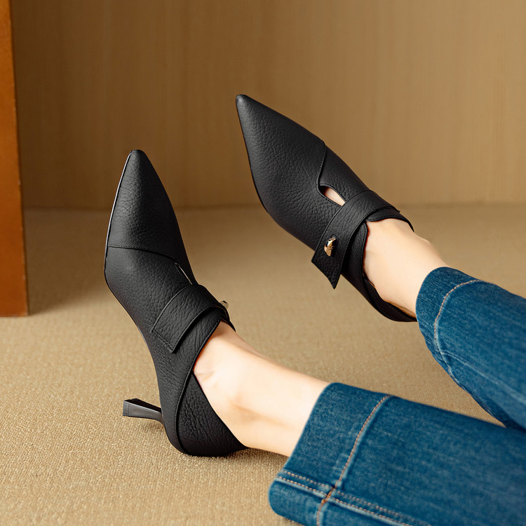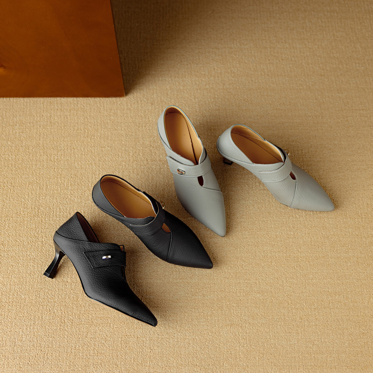 【预售5天】法式复古真皮高跟鞋女新款气质尖头深口单鞋小皮鞋DB&M6608
