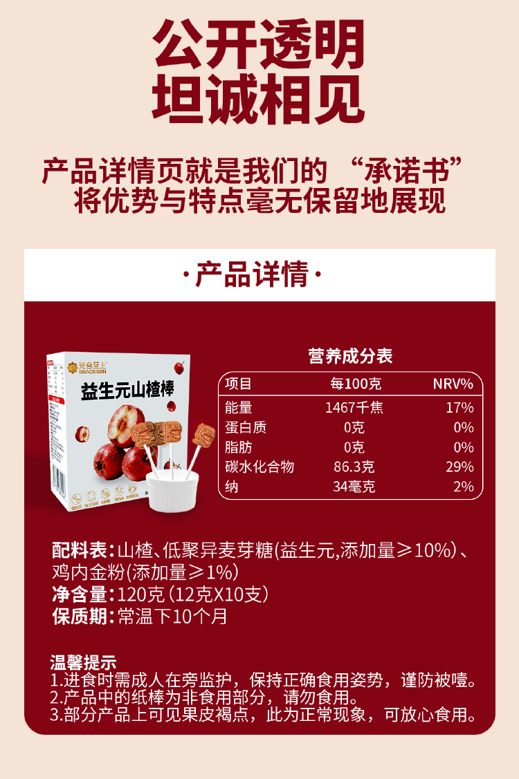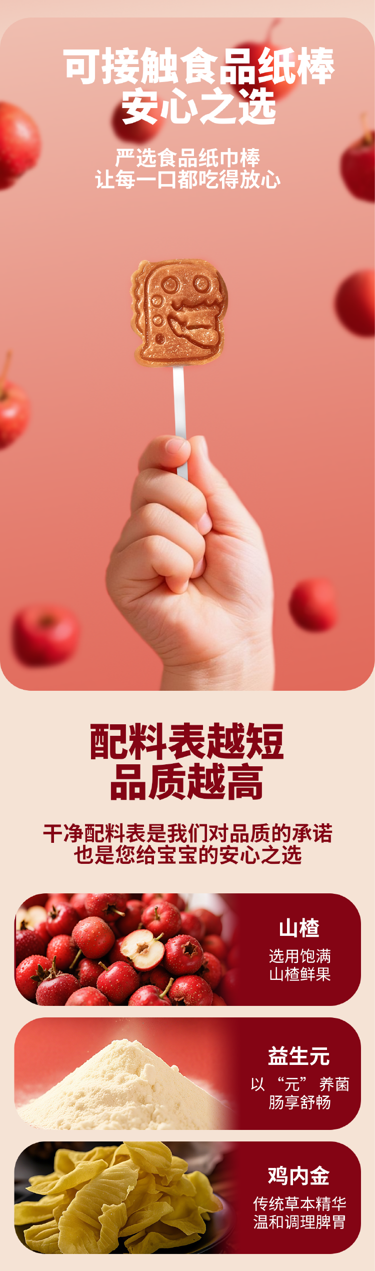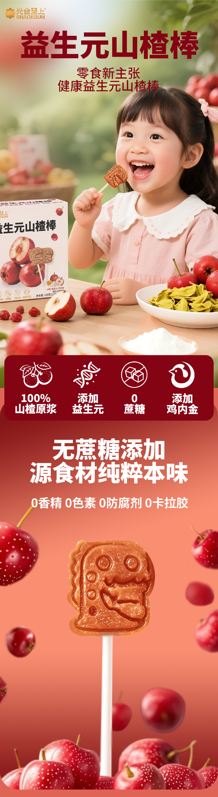 2岁+益生元脾胃养护棒棒糖山楂棒120g/盒(12g*10支)配料很干净【26年7月】光合至上