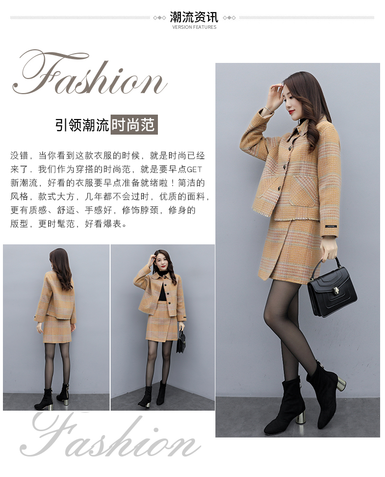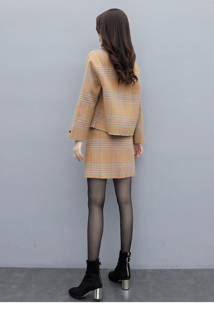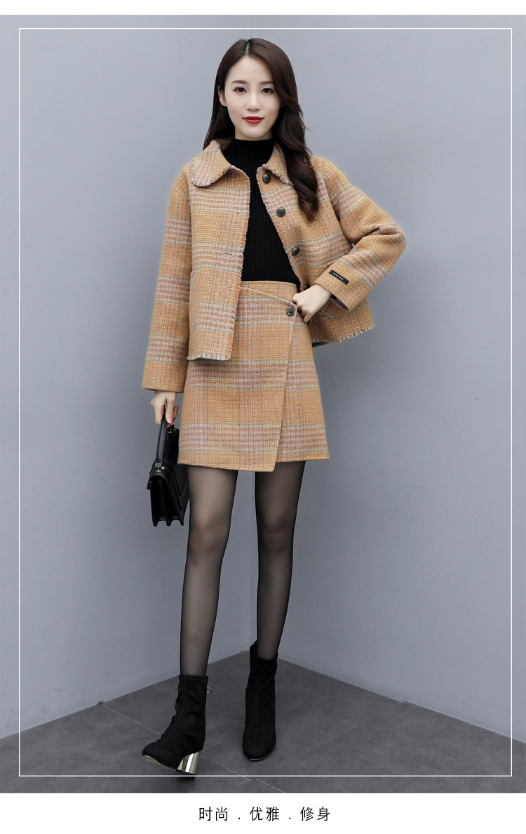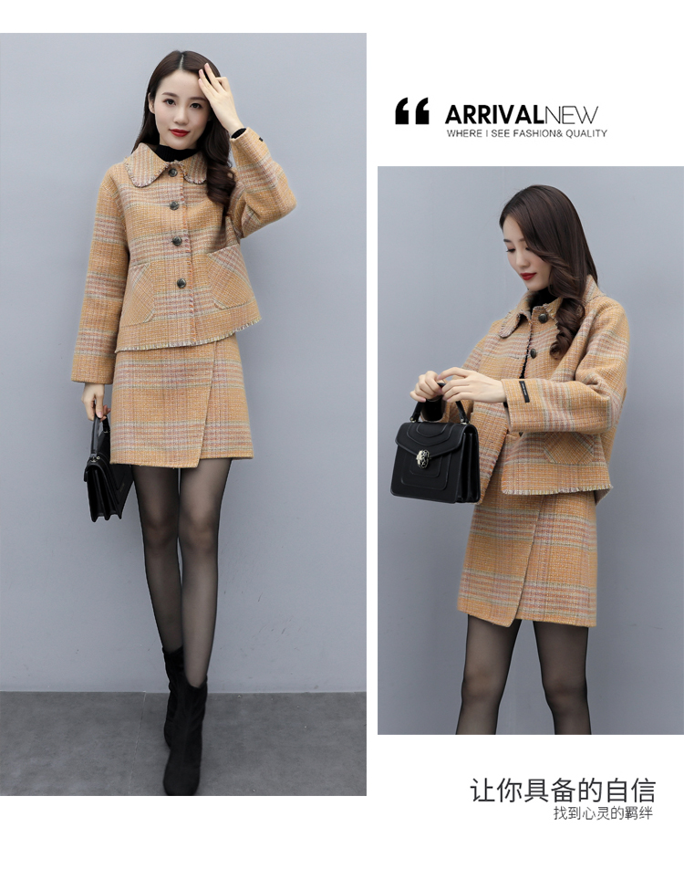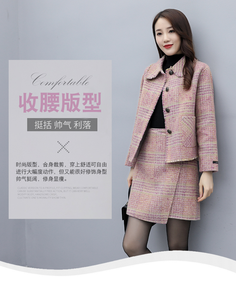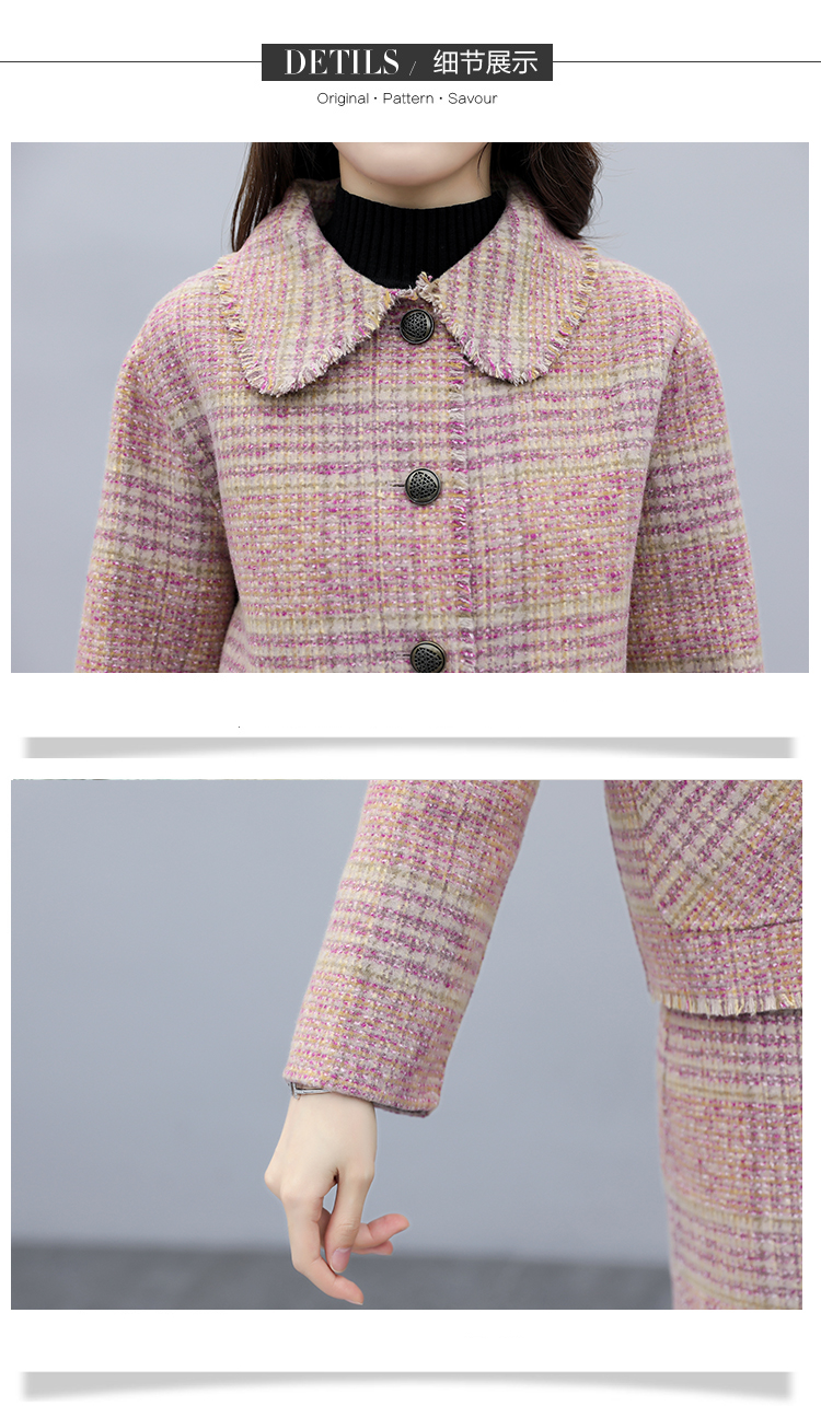 WZNH-ANY99611英伦小香风格子毛呢外套粗花毛呢百搭套装