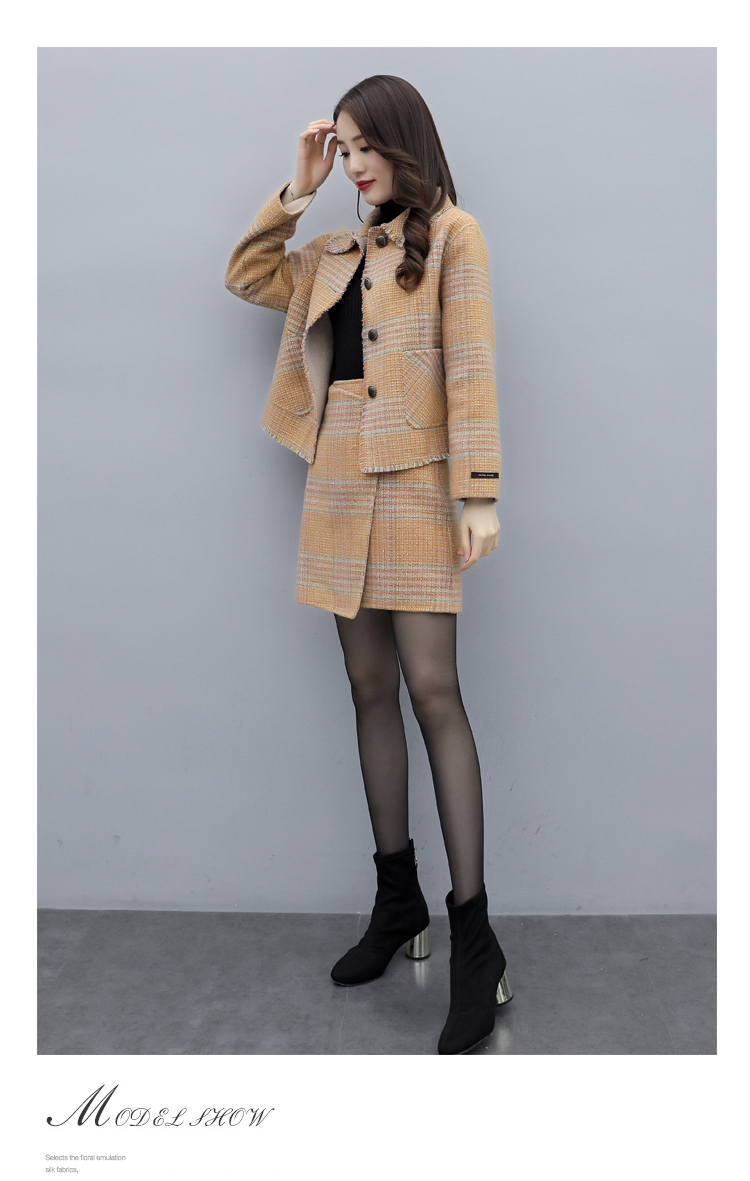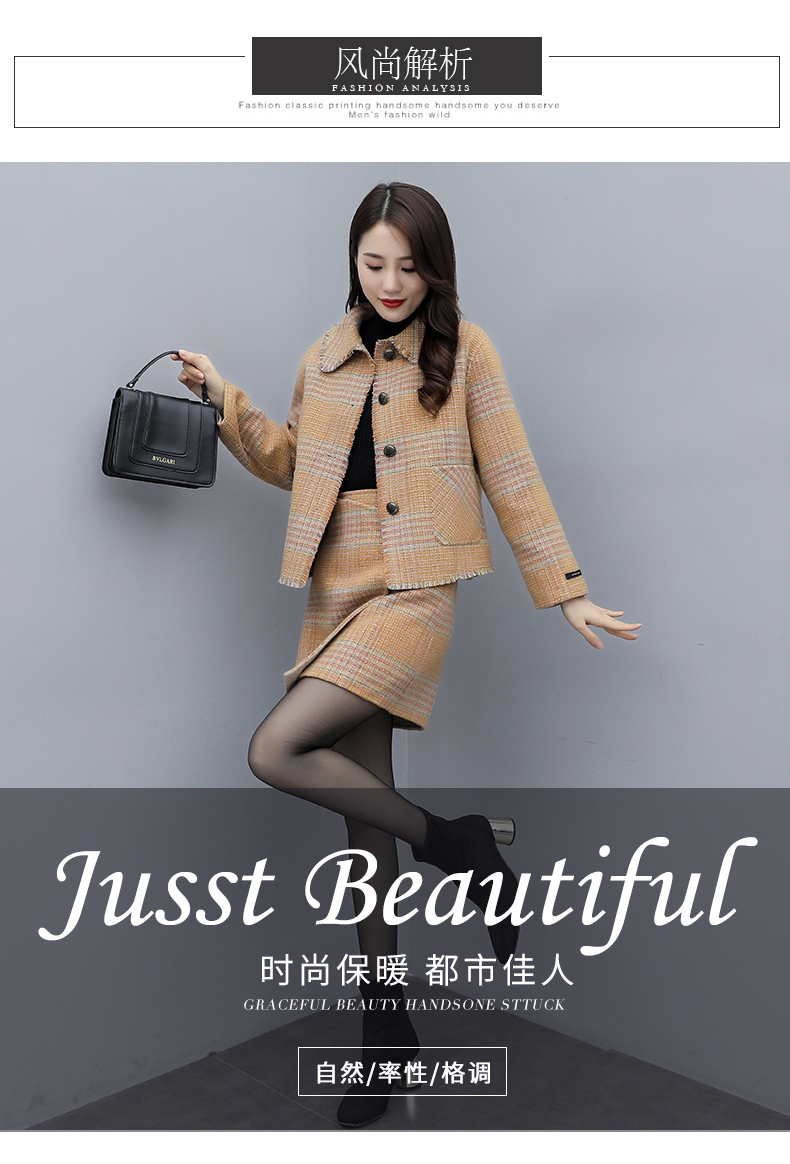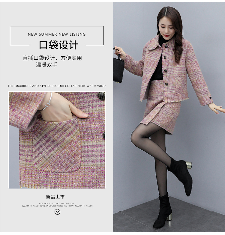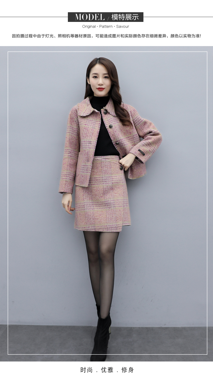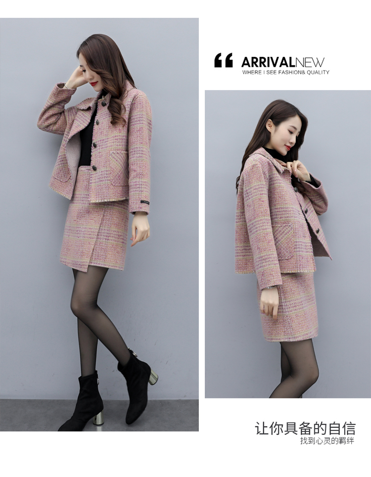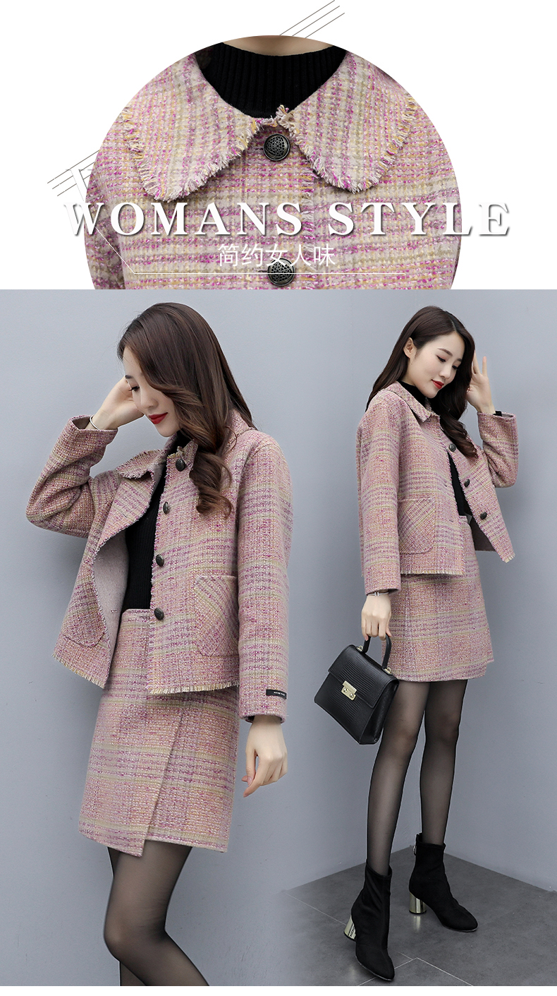 WZNH-ANY99611英伦小香风格子毛呢外套粗花毛呢百搭套装