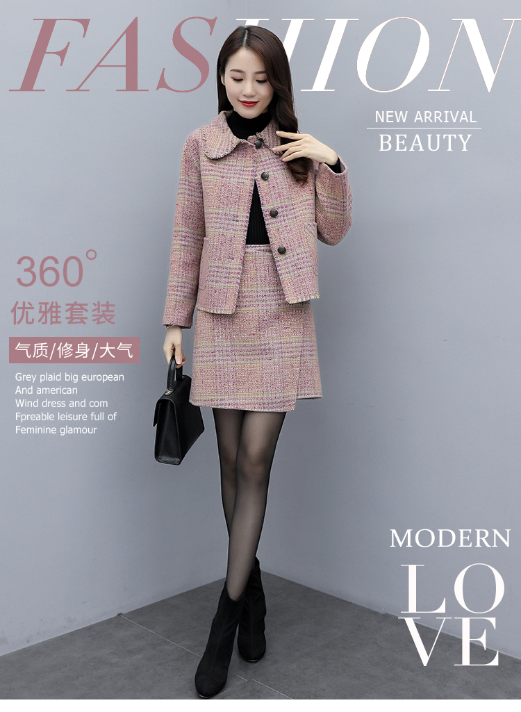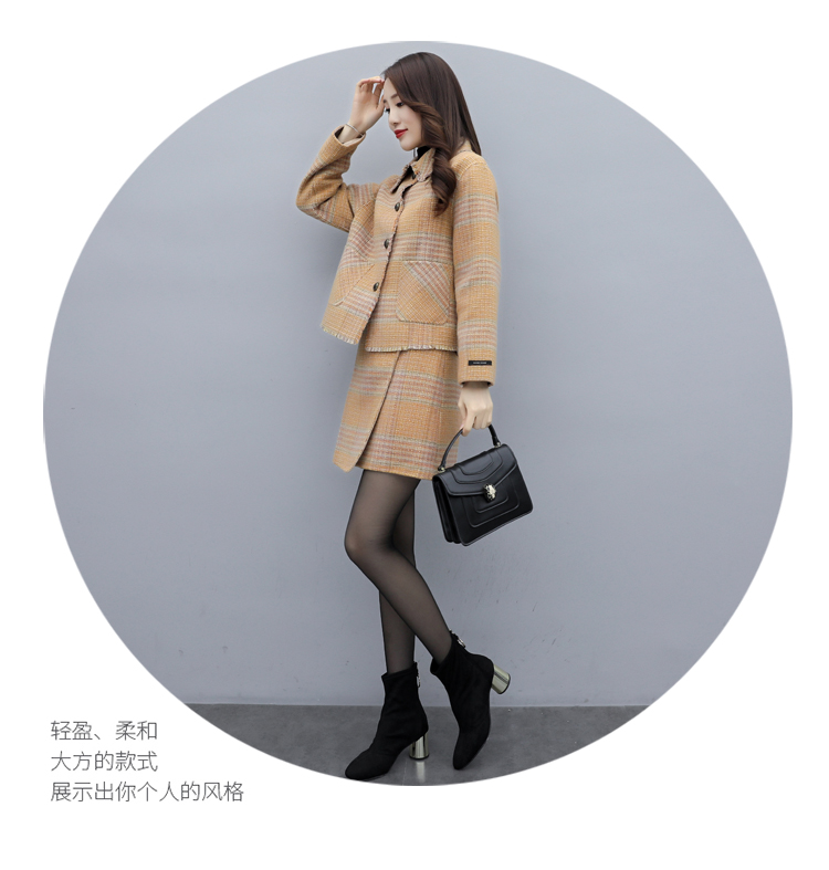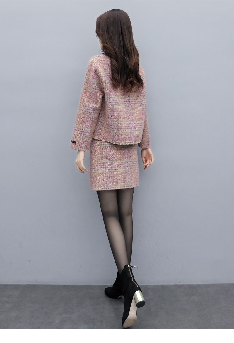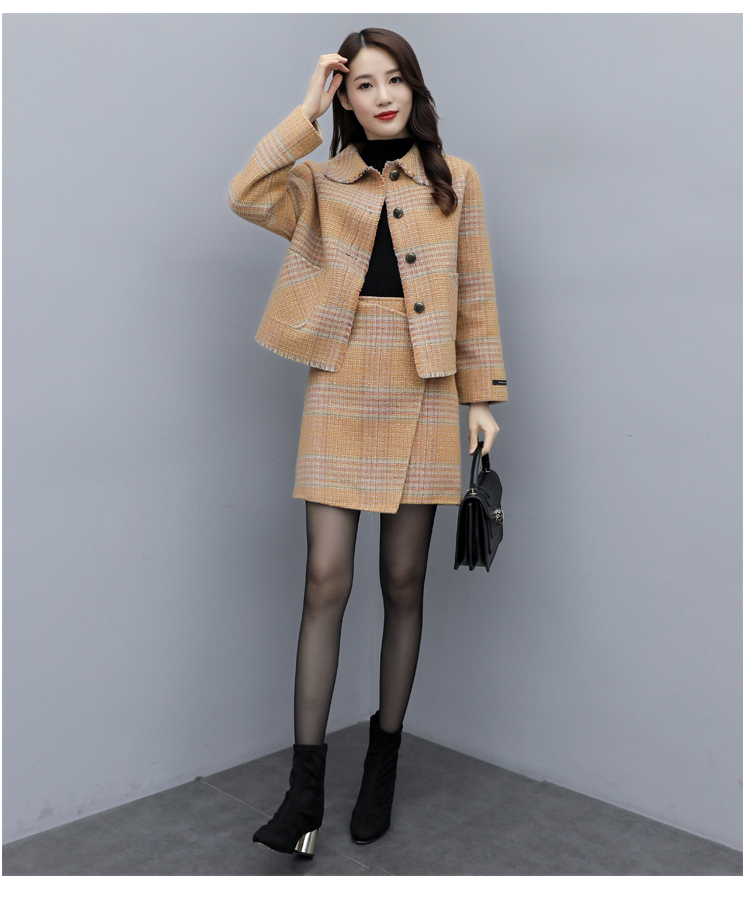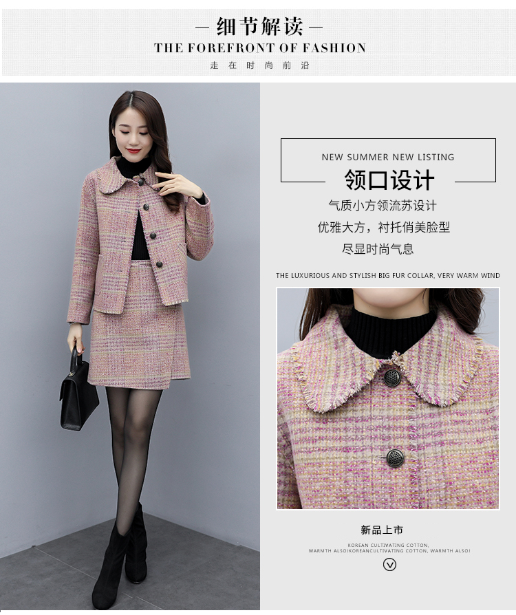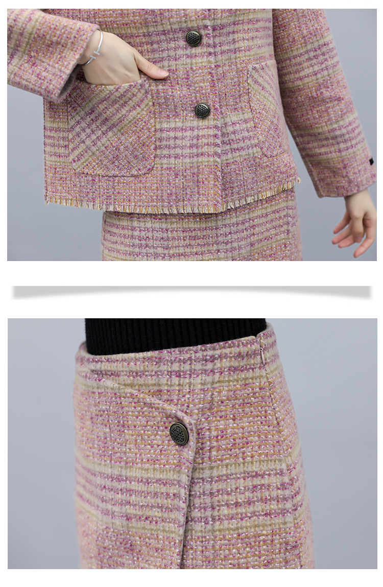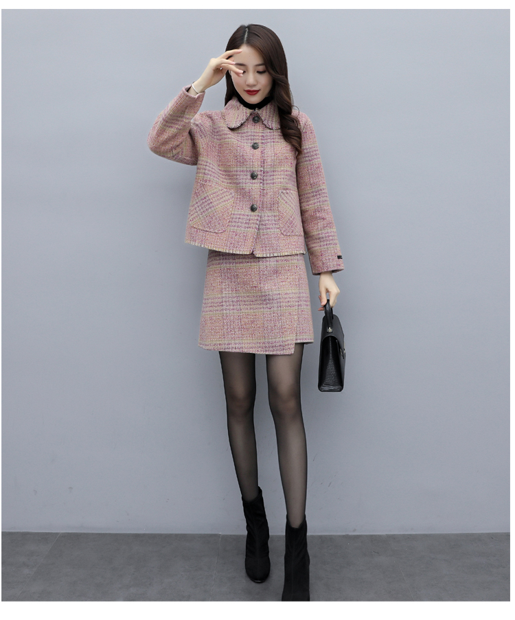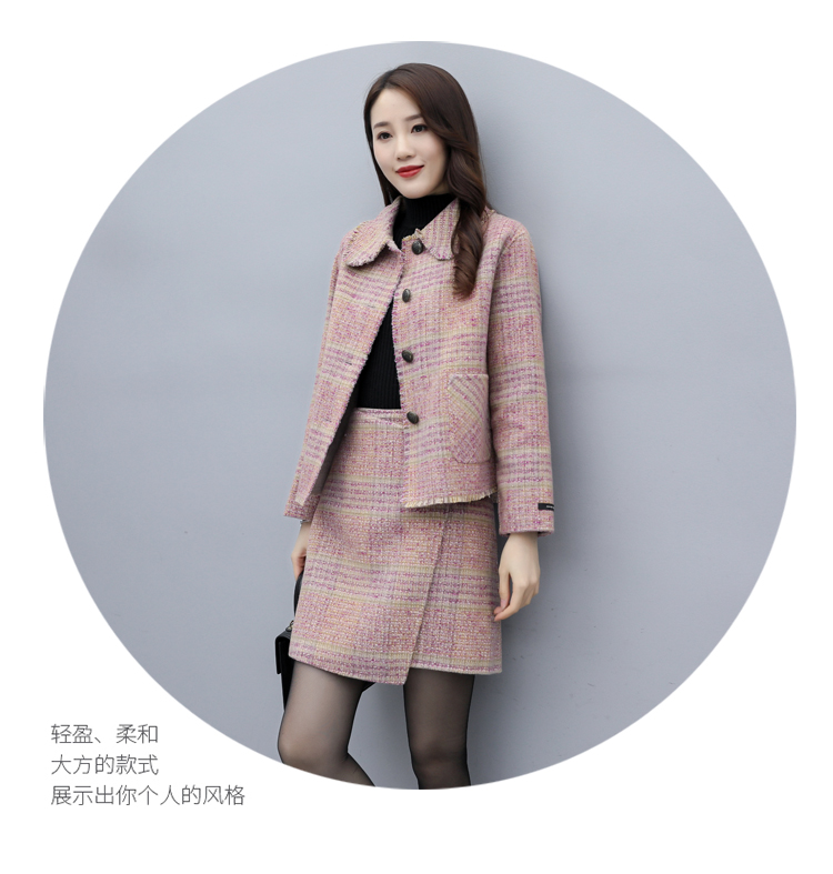 WZNH-ANY99611英伦小香风格子毛呢外套粗花毛呢百搭套装