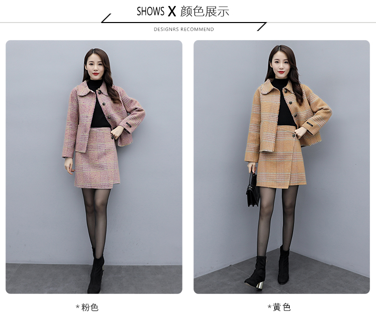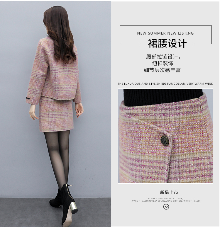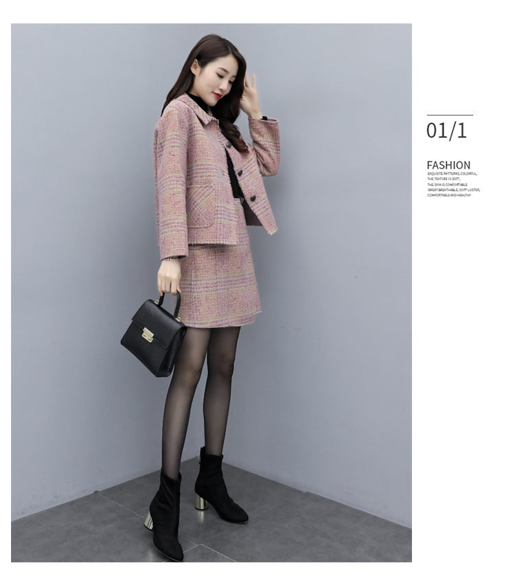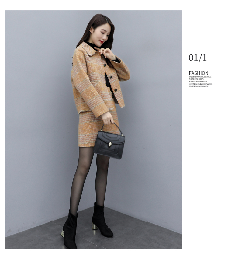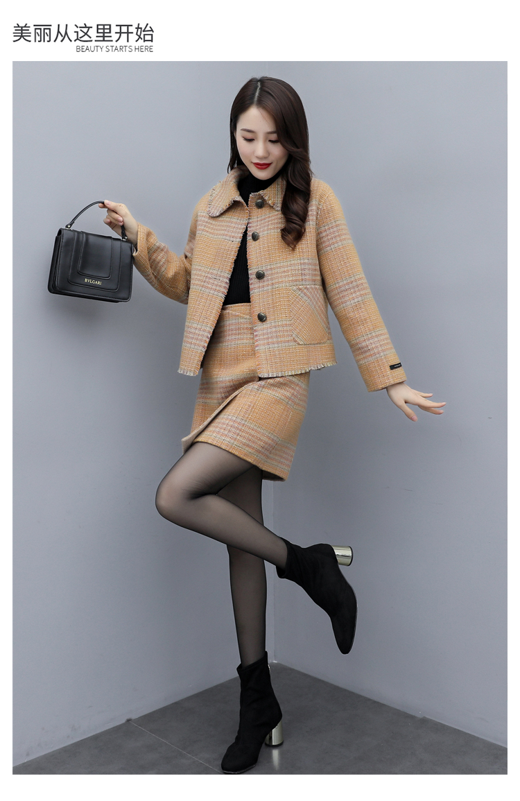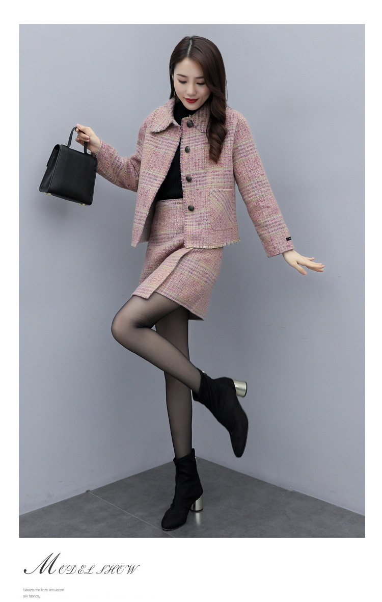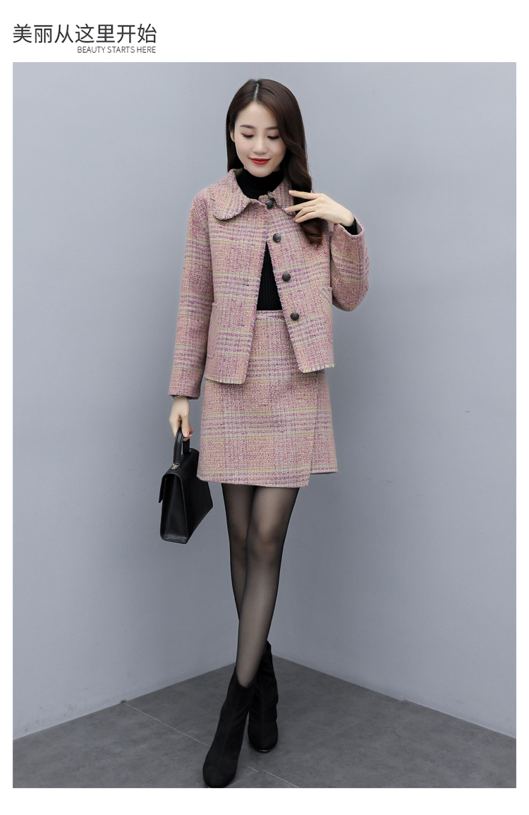 WZNH-ANY99611英伦小香风格子毛呢外套粗花毛呢百搭套装