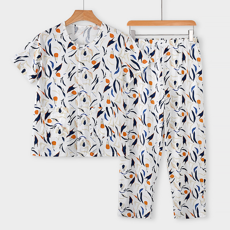 雀说 夏季纯棉宽松大码中老年女家居服开衫
