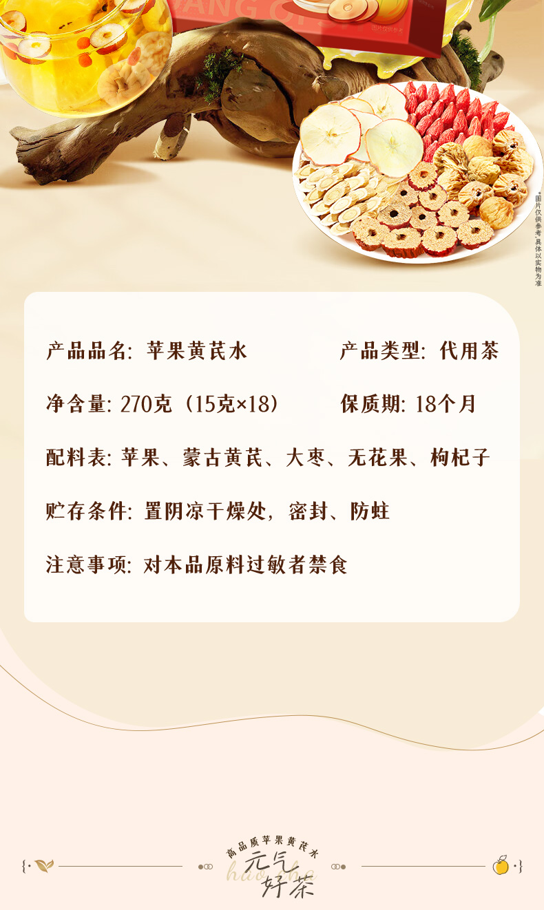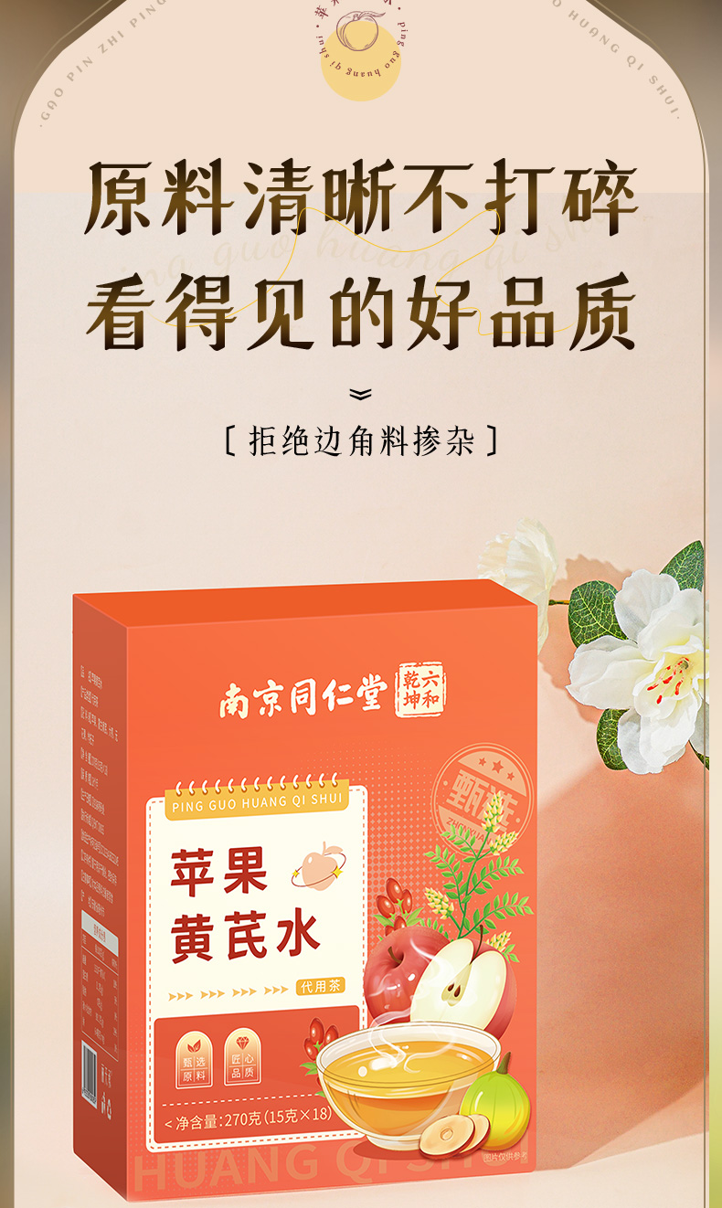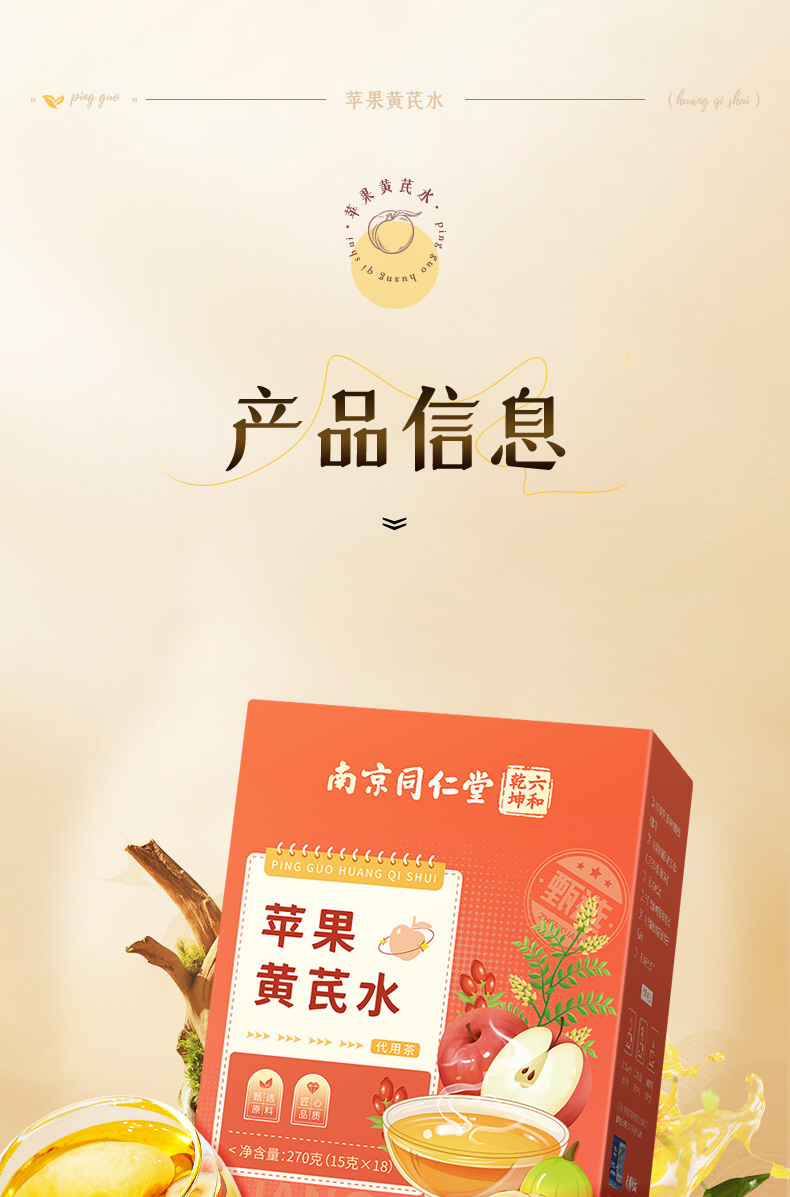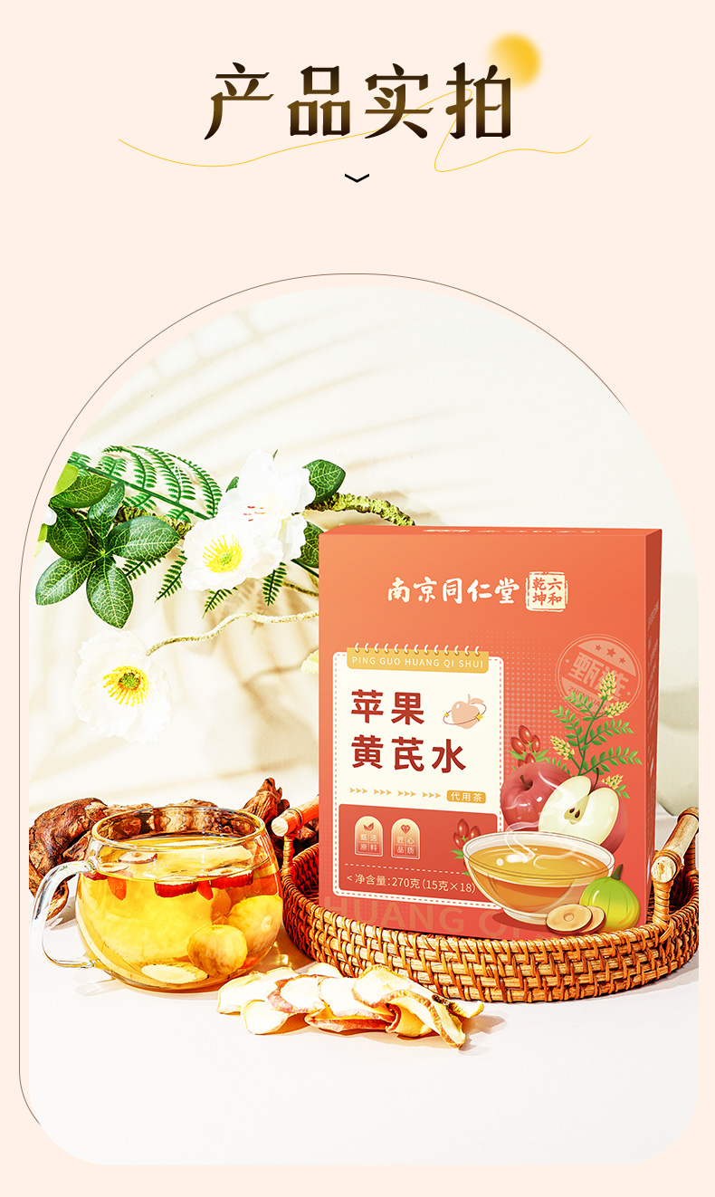 南京同仁堂 苹果黄芪水 270克(15克x18) 无花果红枣枸杞