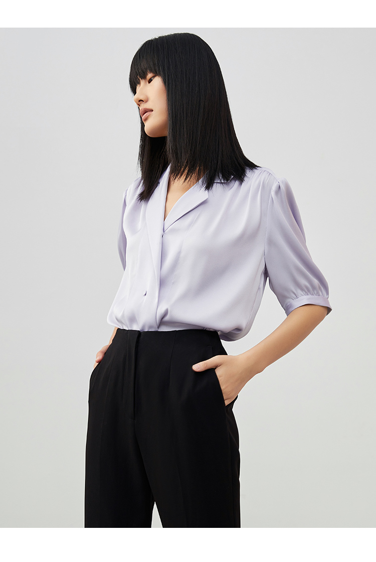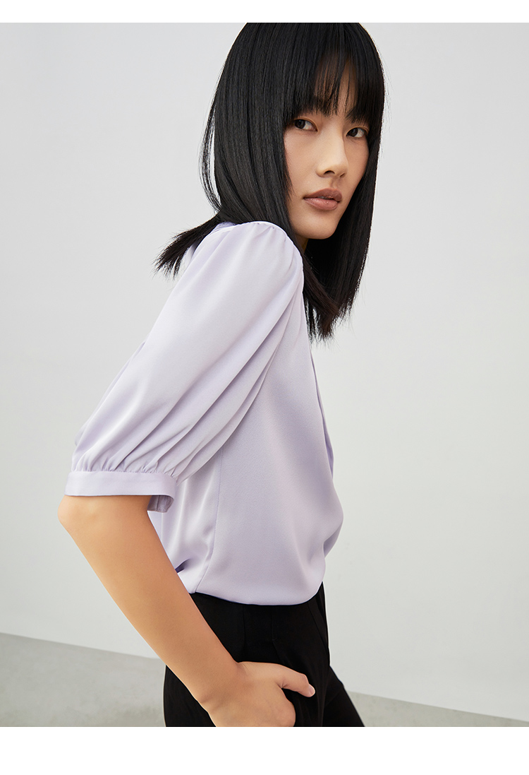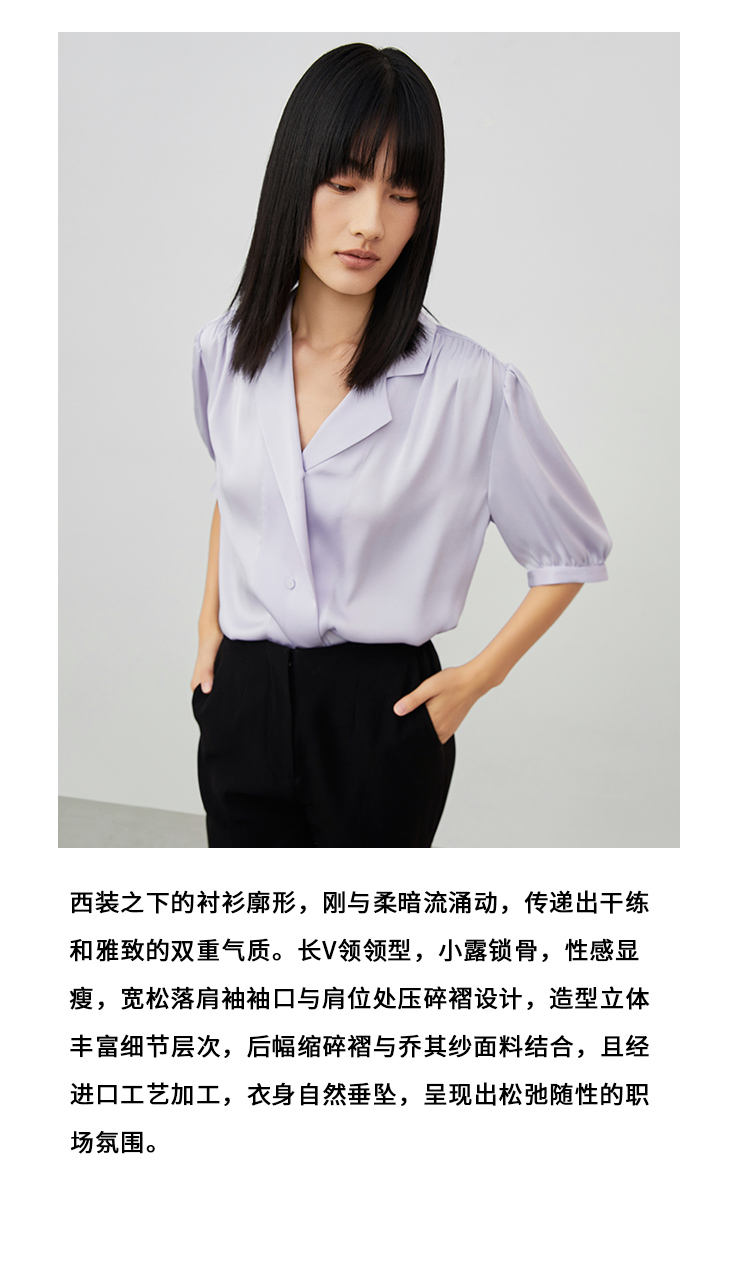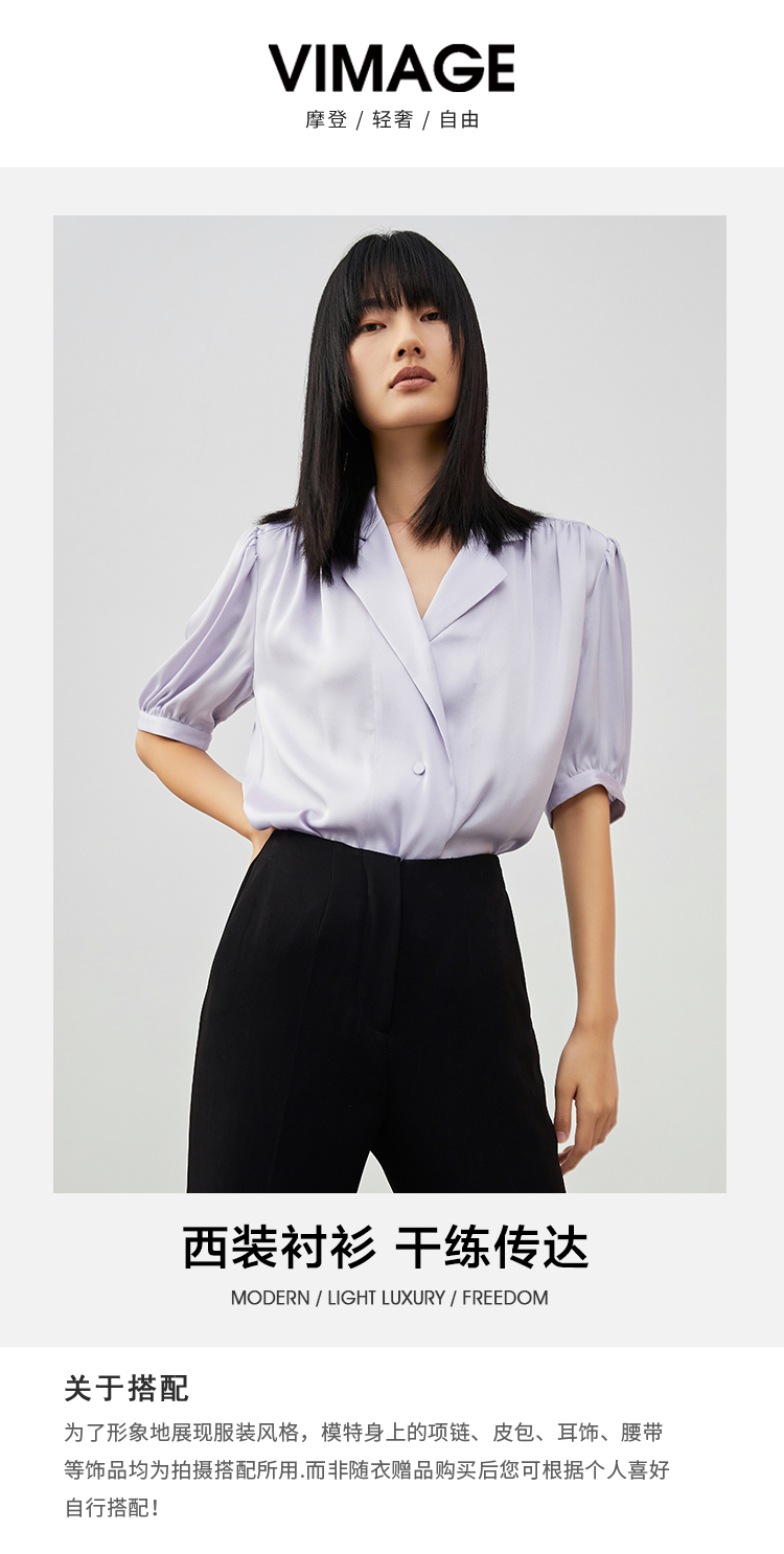 VIMAGE/纬漫纪夏季新款V领五分袖收腰显瘦女短衬衫V1709334