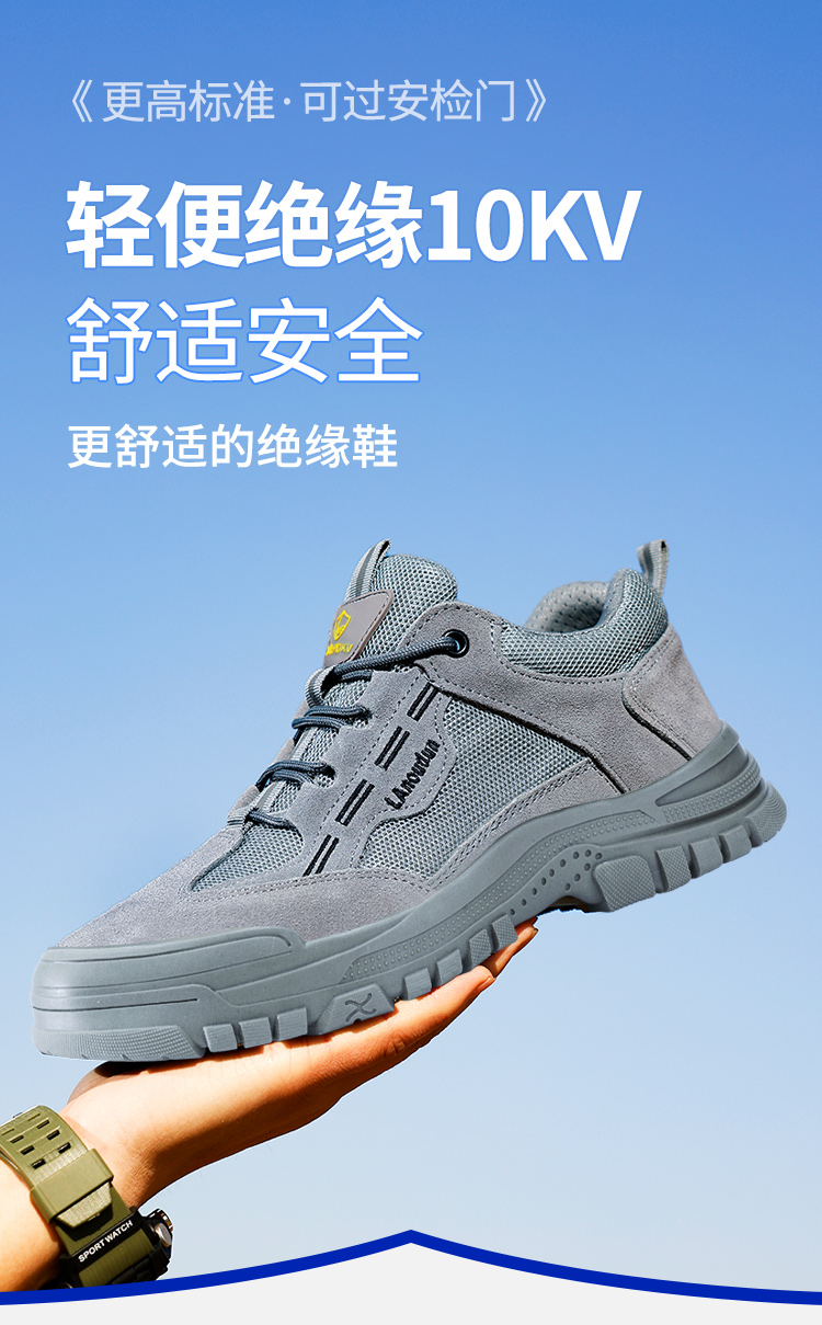 蓝鸥盾四季款透气绝缘鞋劳保鞋男防砸防刺安全鞋欧标玻纤头工作鞋橡胶底