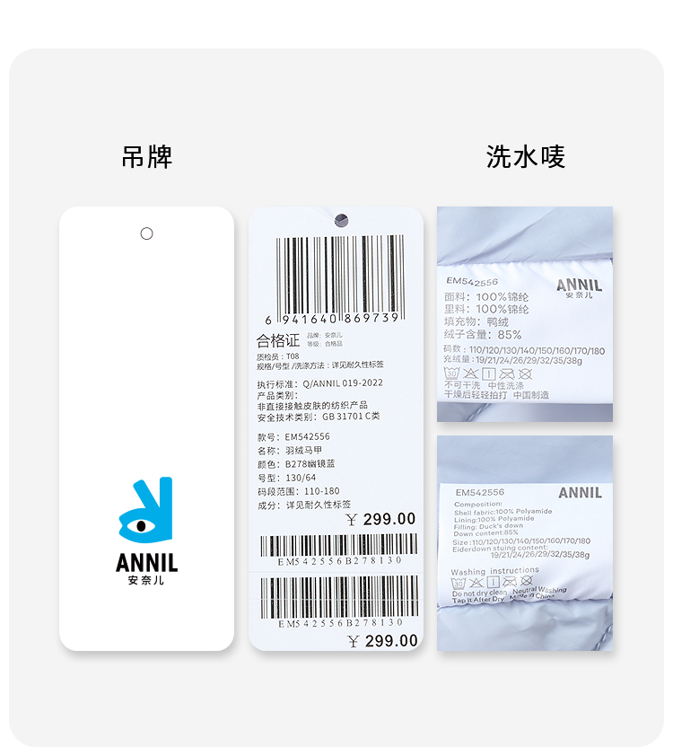 男女童羽绒马甲冬季新款安奈儿童装EM542556