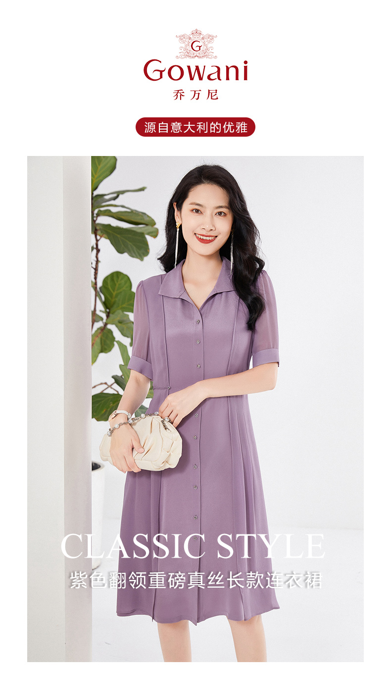 乔万尼真丝桑蚕丝连衣裙夏季新款重磅收腰长裙EF2E320