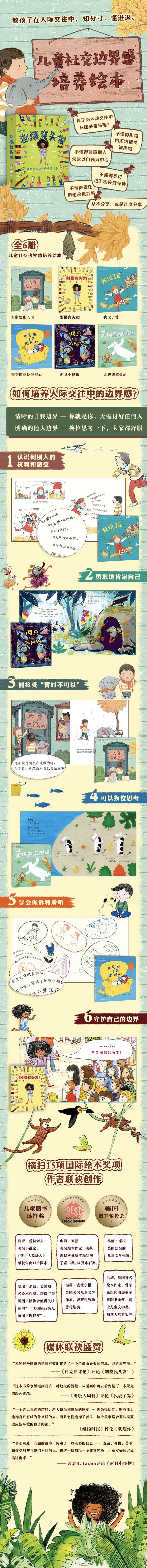 1.这套书用6个故事让孩子们懂得为什么要从小建立社交边界感,因为如果处理不好边界感,不但自己会受伤害,还会让他人觉得没教养。