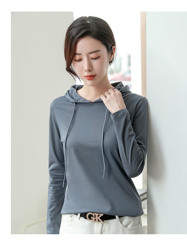LFH6736-1 时尚气质百搭丝光棉连帽长袖薄款卫衣