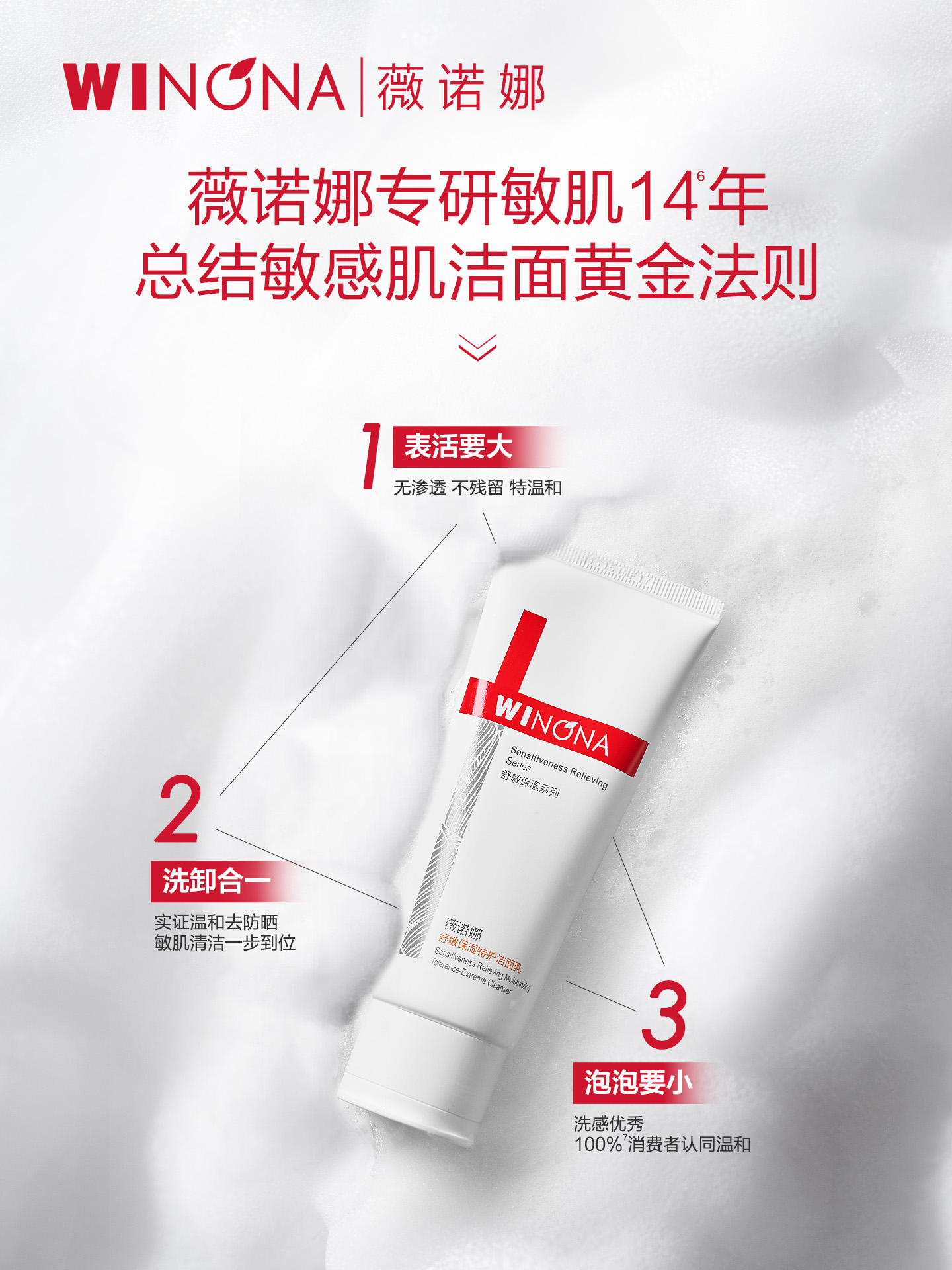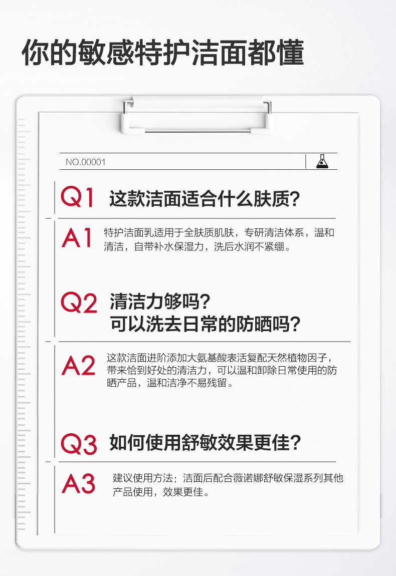 薇诺娜 | 舒敏保湿特护洁面乳100g | 深层清洁 补水保湿 清爽不紧绷 敏感肌洗面奶