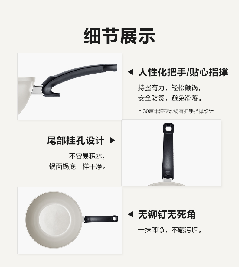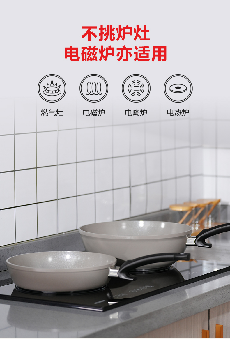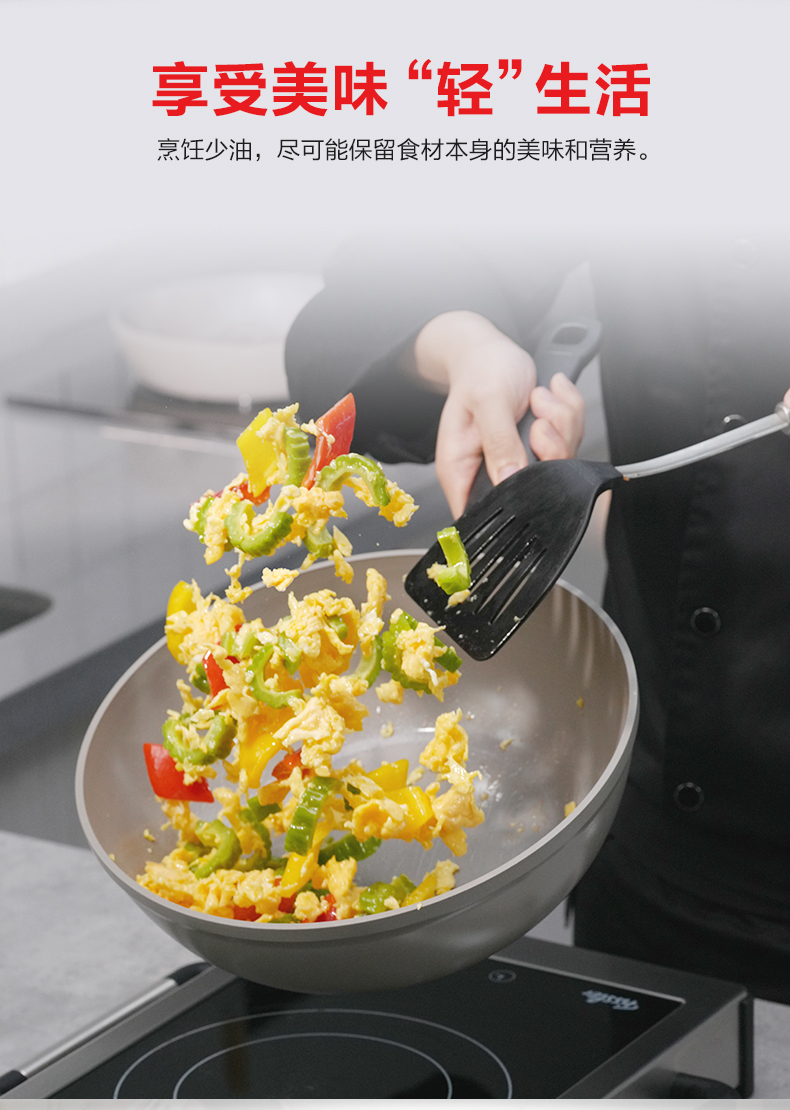 瓷瑞深型不粘煎炒锅-赠玻璃盖及不粘锅铲