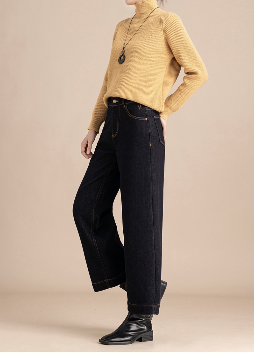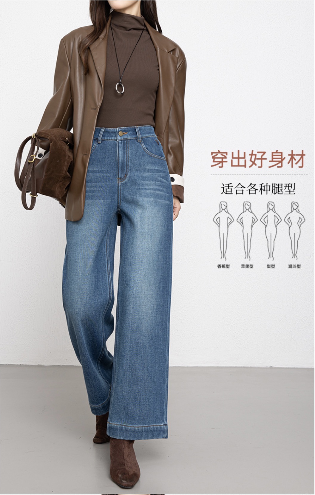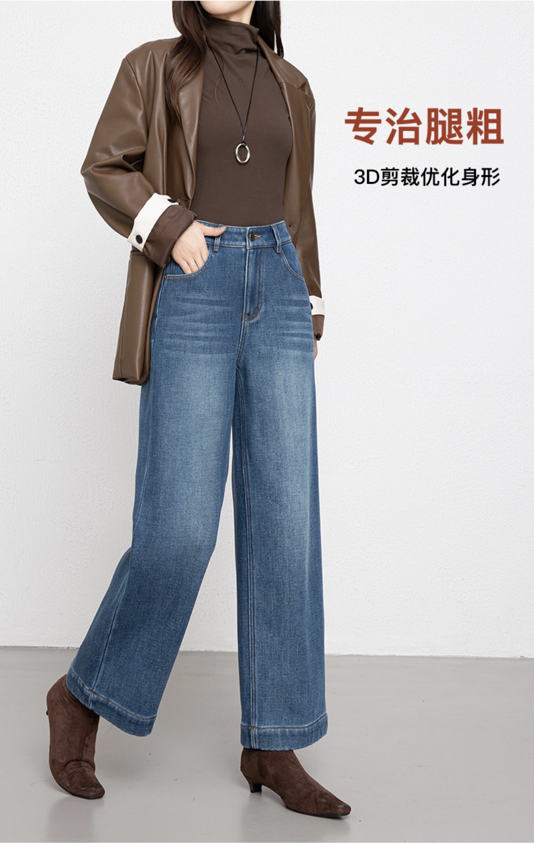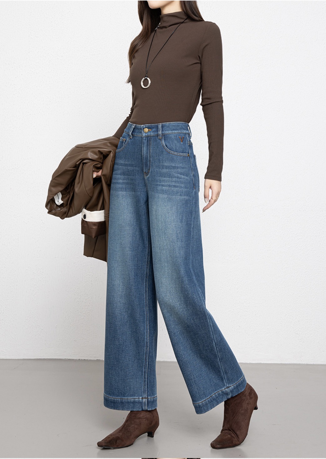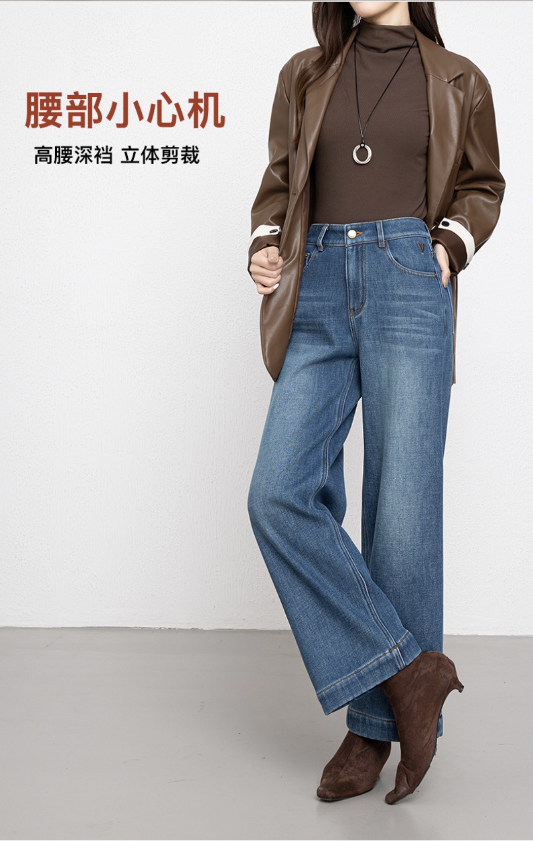 「高货rg」全新升级【铂金会员192/天猫259/差价67】(00211)洛诗琳宽松高腰九分阔腿裤2025冬季加绒加厚刺绣牛仔裤女