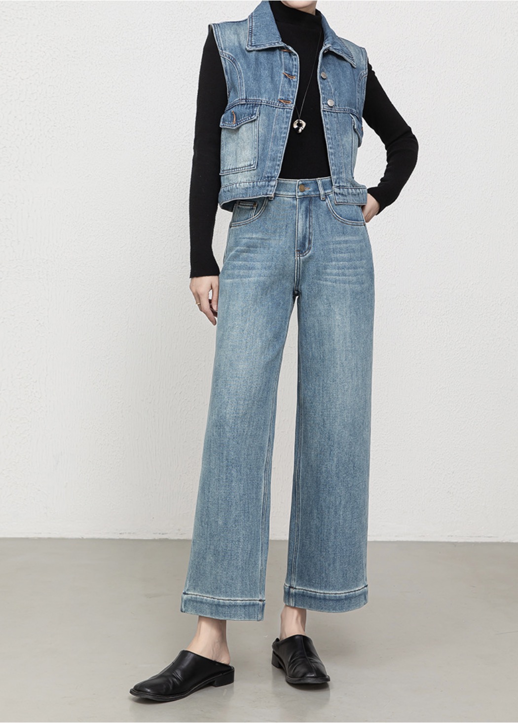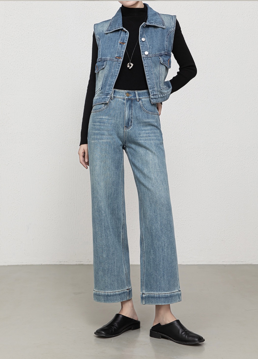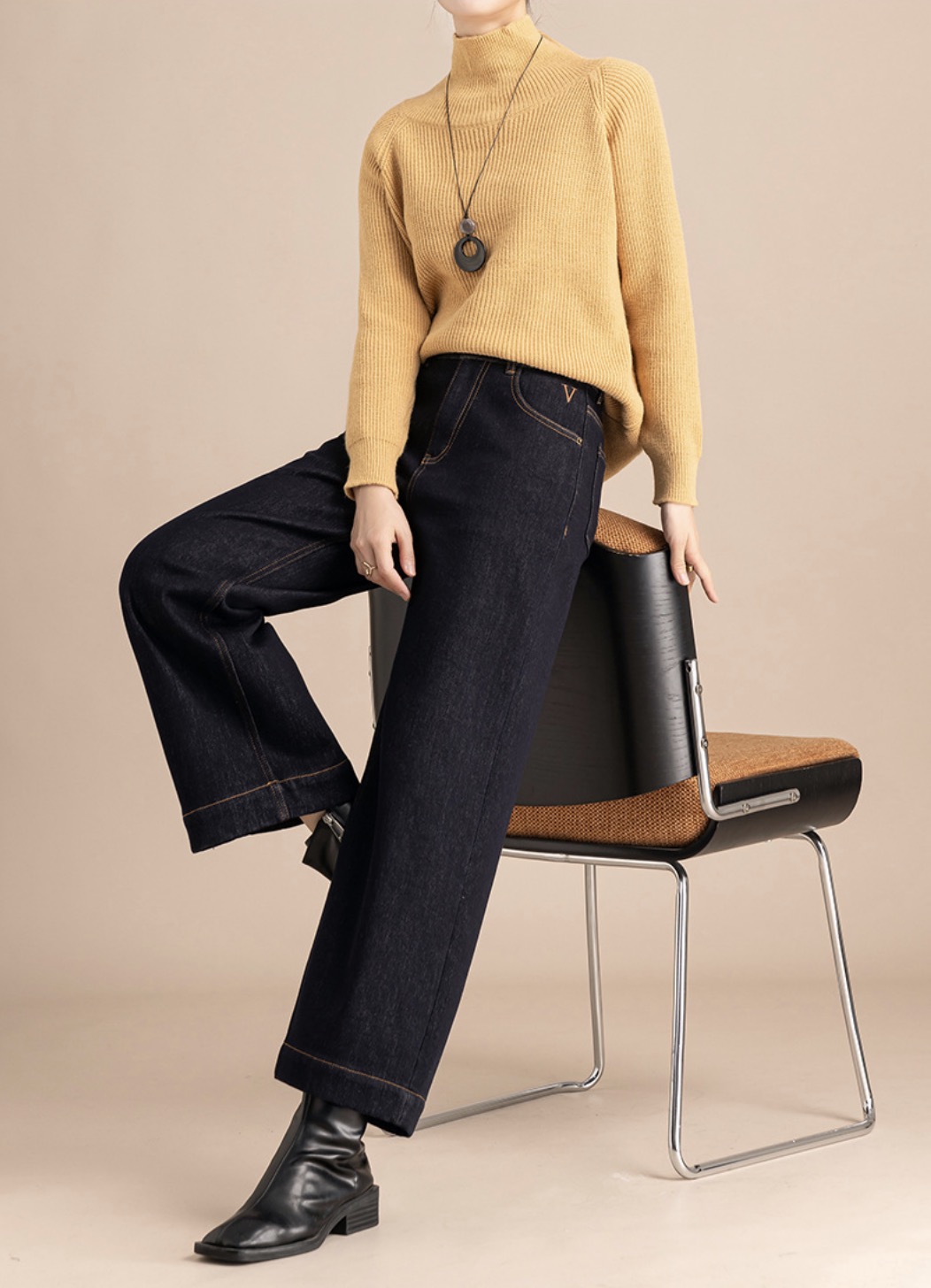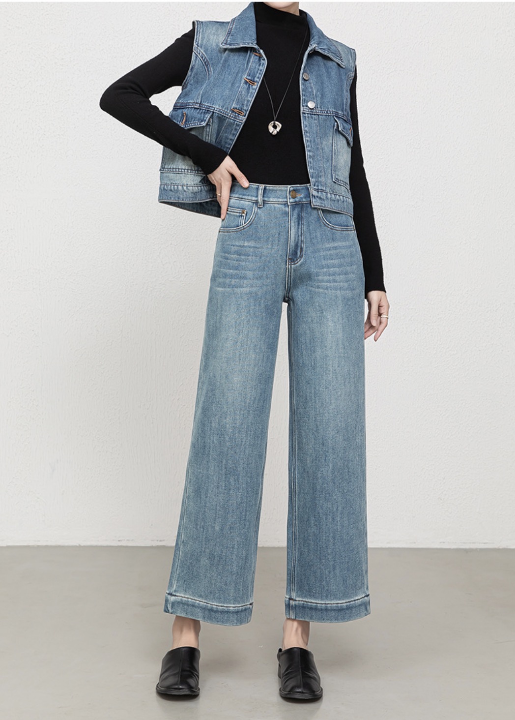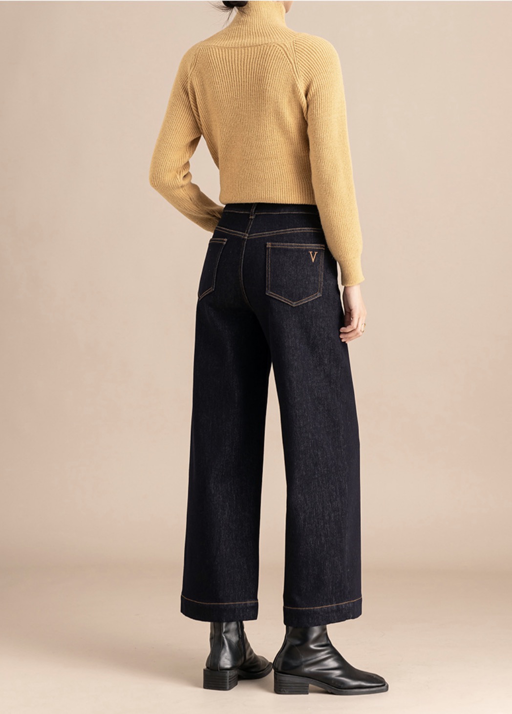 「高货rg」全新升级【铂金会员192/天猫259/差价67】(00211)洛诗琳宽松高腰九分阔腿裤2025冬季加绒加厚刺绣牛仔裤女