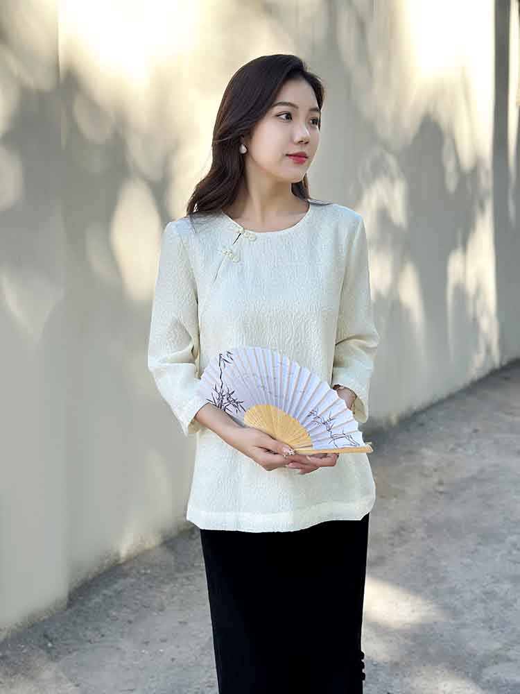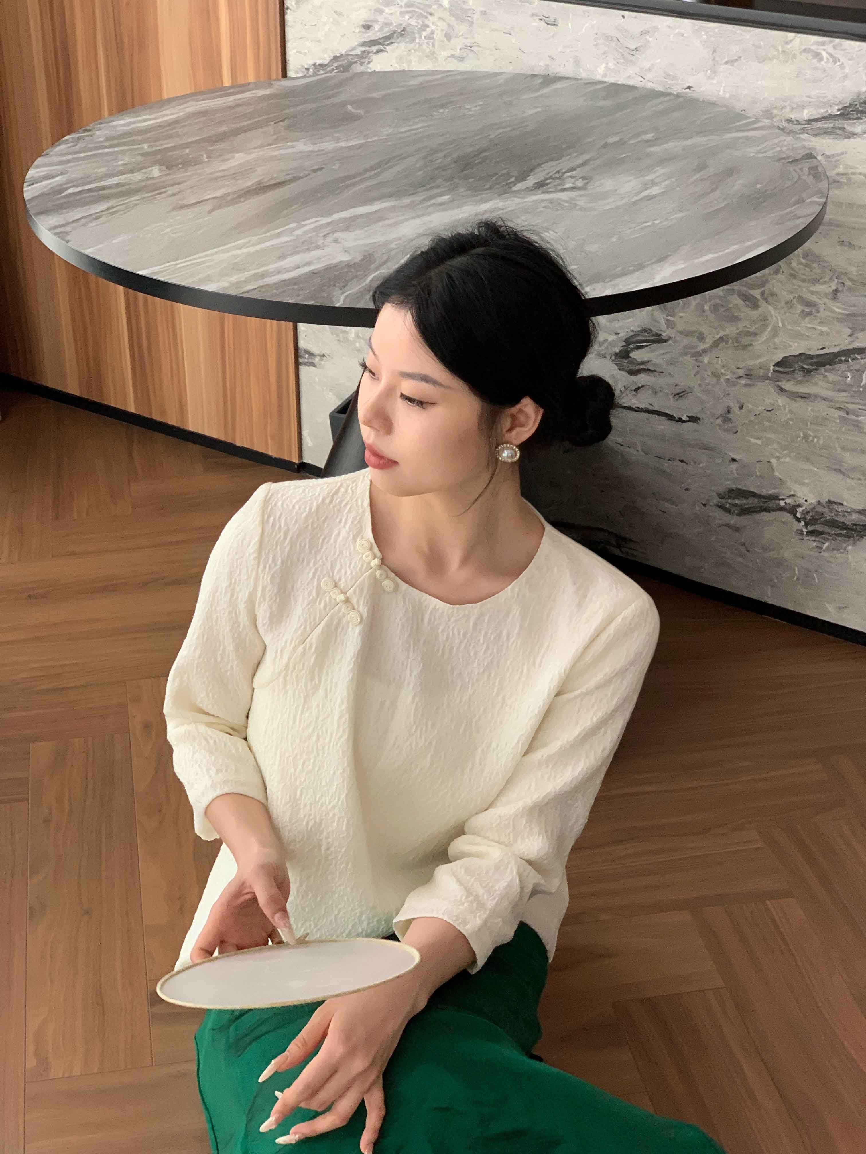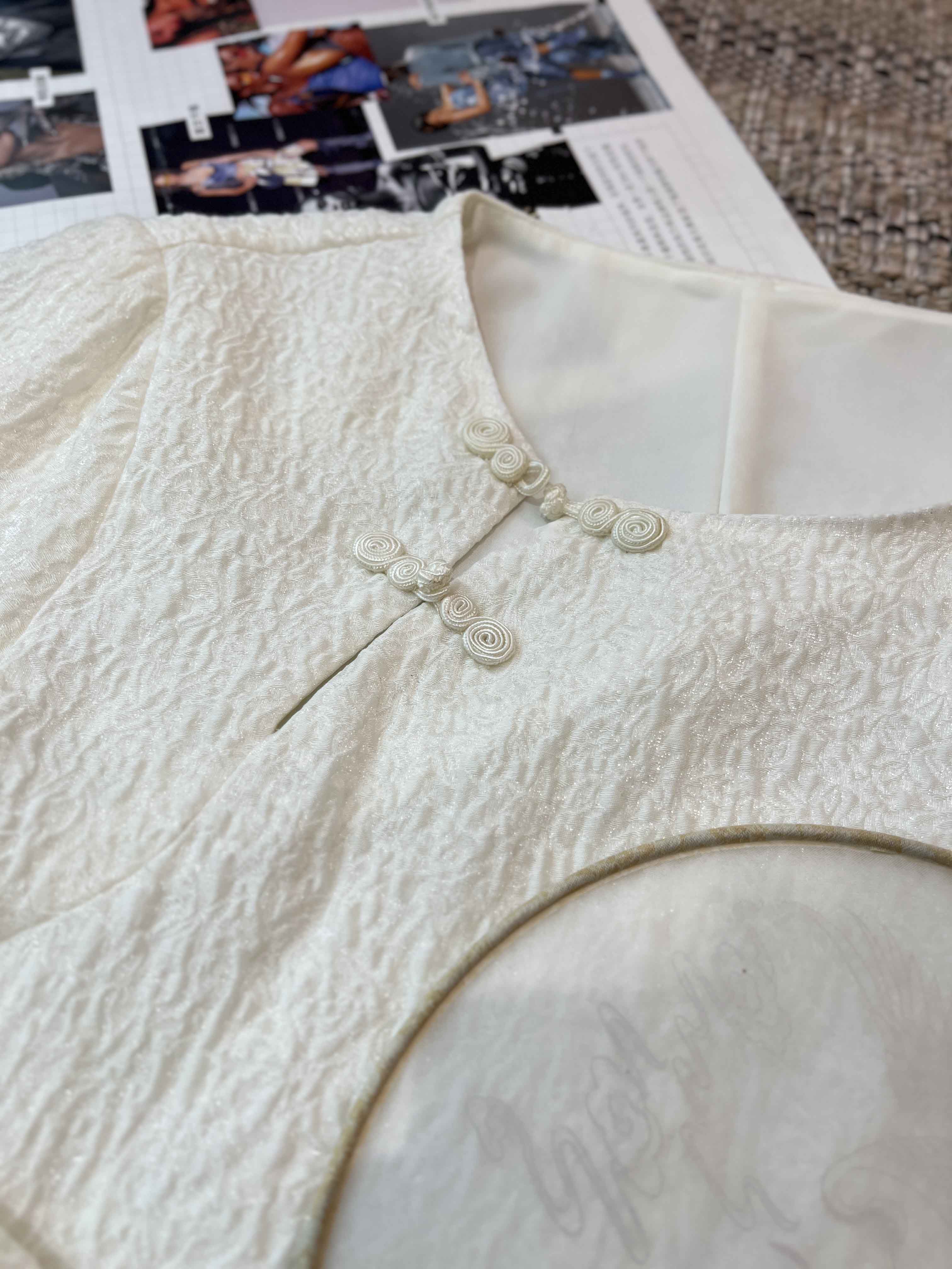 顺丰包邮洛诗琳34049春夏新中式羊毛混纺提花盘扣国风上衣11088