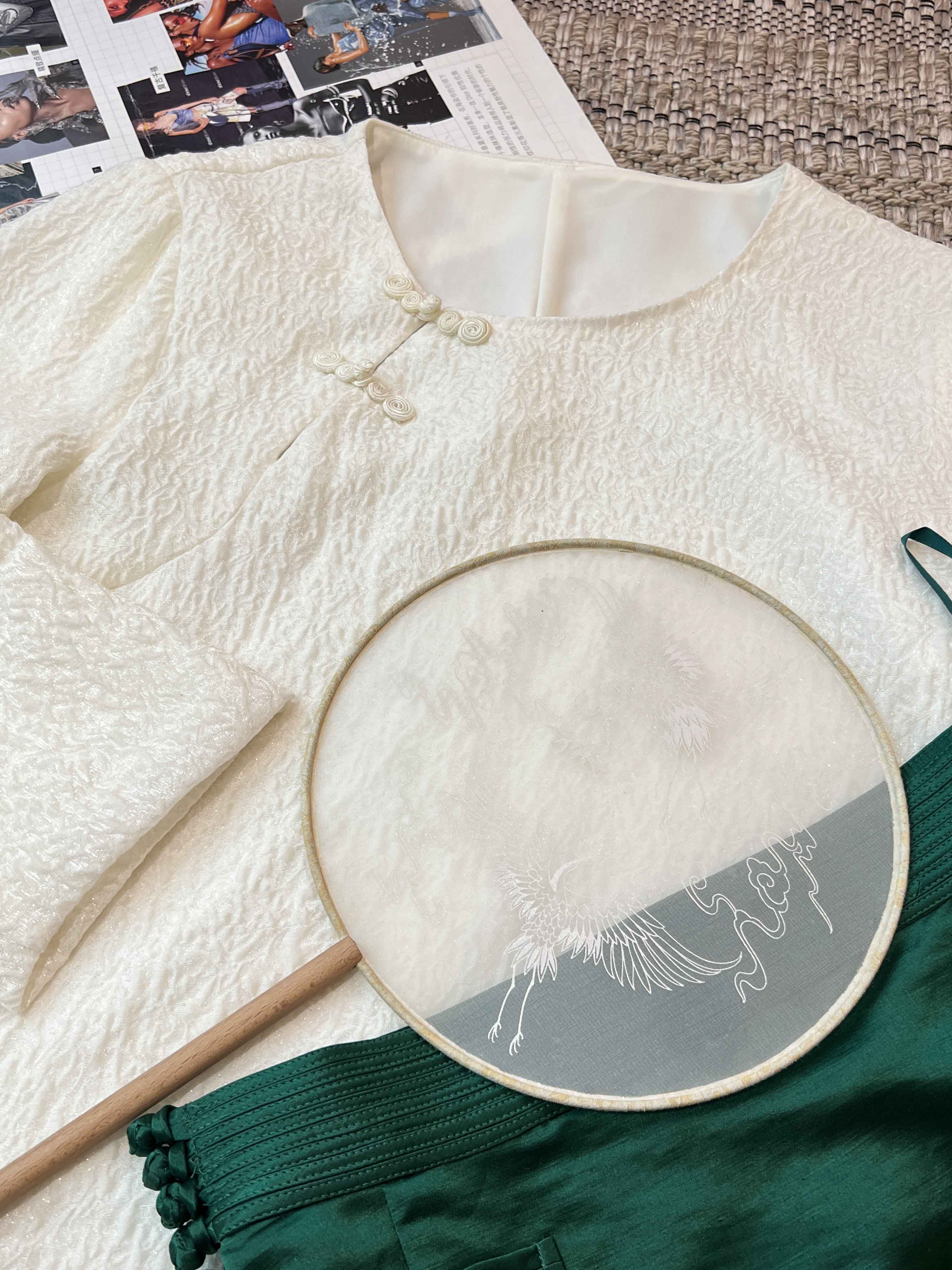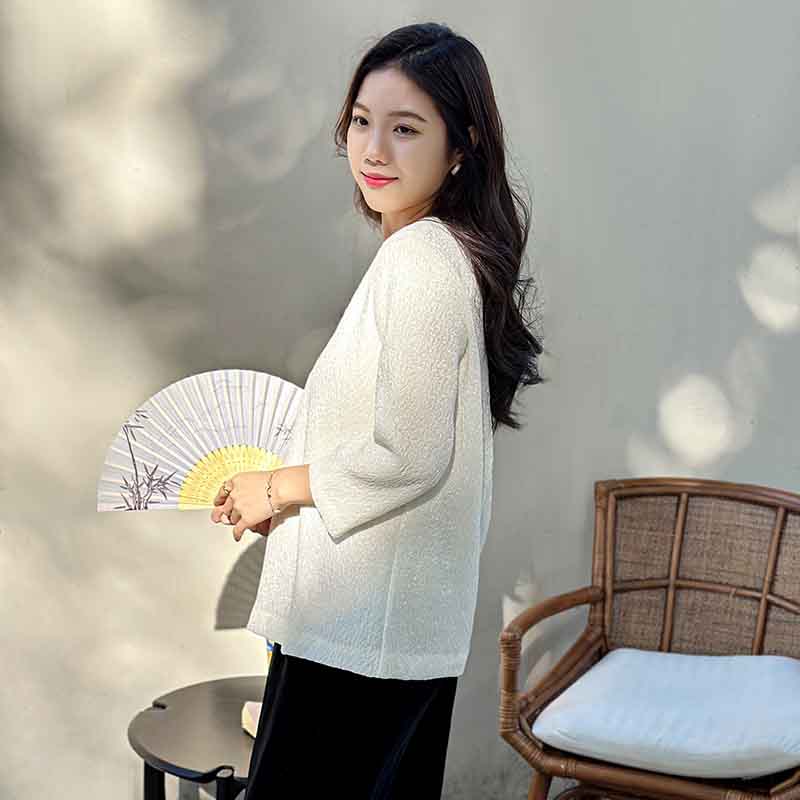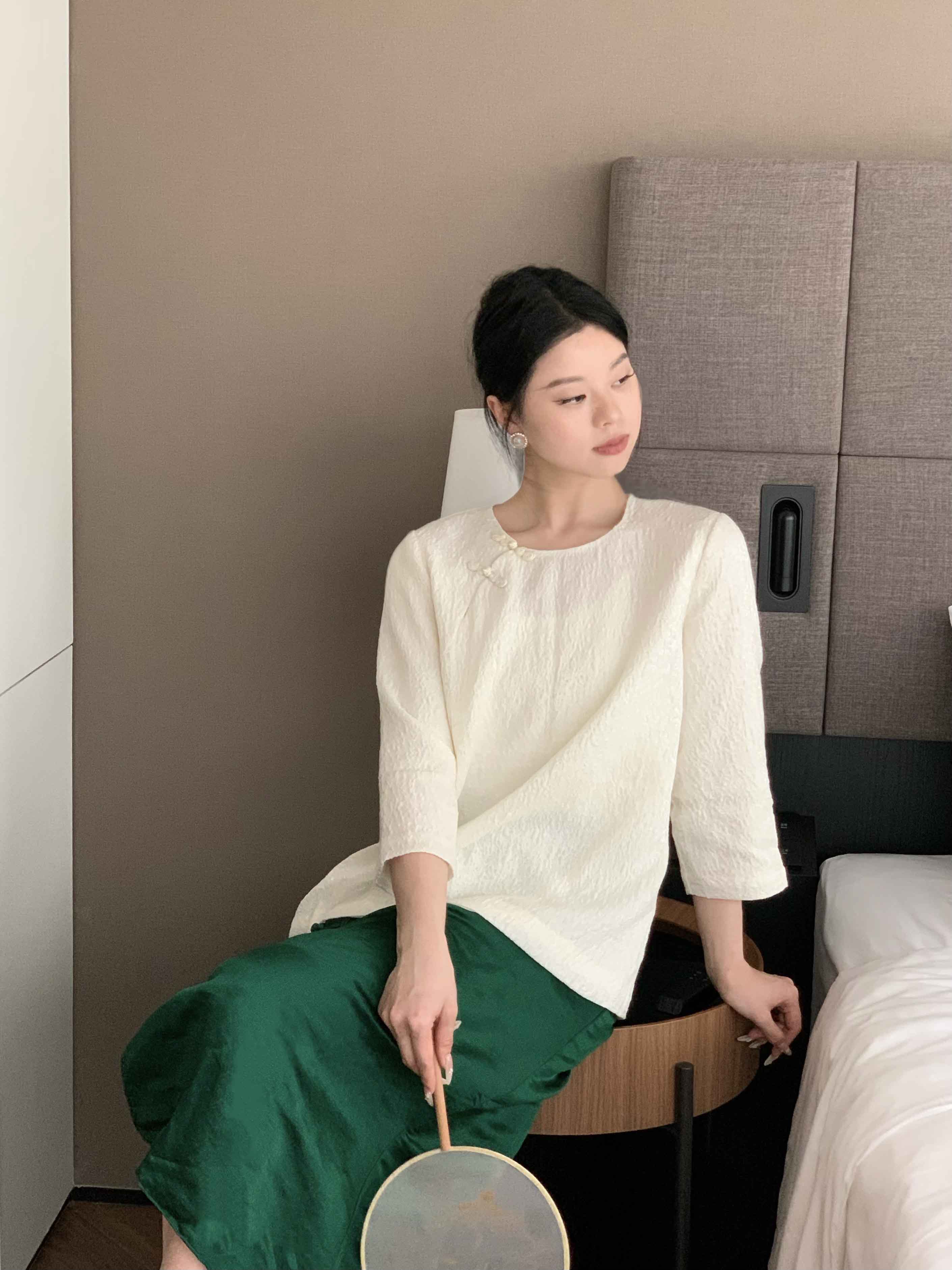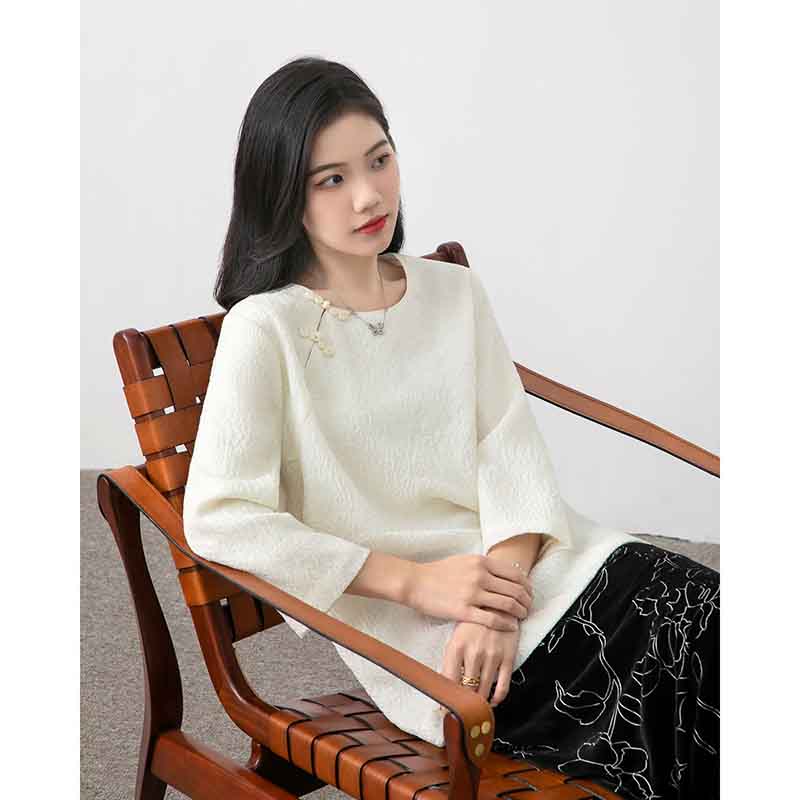 顺丰包邮洛诗琳34049春夏新中式羊毛混纺提花盘扣国风上衣11088