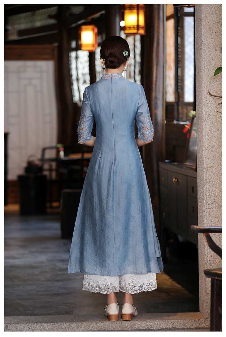 YFN21127禅服女夏中国风禅意女装收腰显瘦气质长裙日常古风裙子复古连衣裙