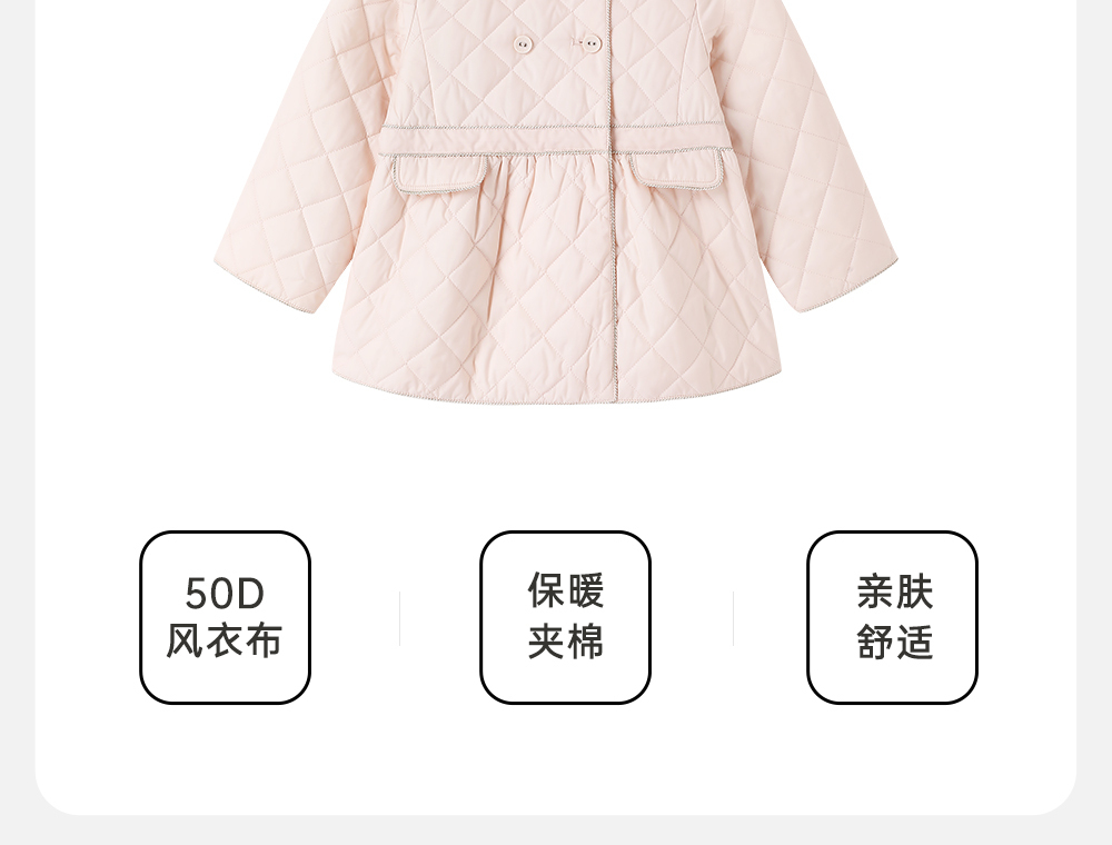 【商场同款】英氏儿童风衣外套女童冬季夹棉外套防风保暖新款