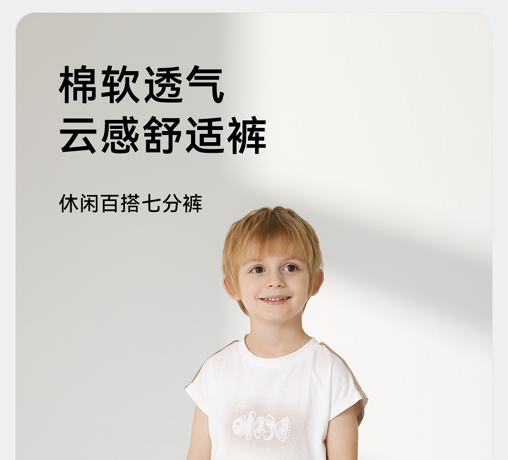 【商场同款】英氏儿童裤子夏季透气百搭纯棉男童七分裤2025新款