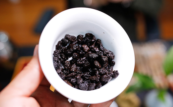 能结成块的茶叶都必须饱含丰富的胶质和糖分,而茶叶中的嫩芽含糖和胶质比较多,把这些茶块捡出来,精细加工,就成了“茶化石”。