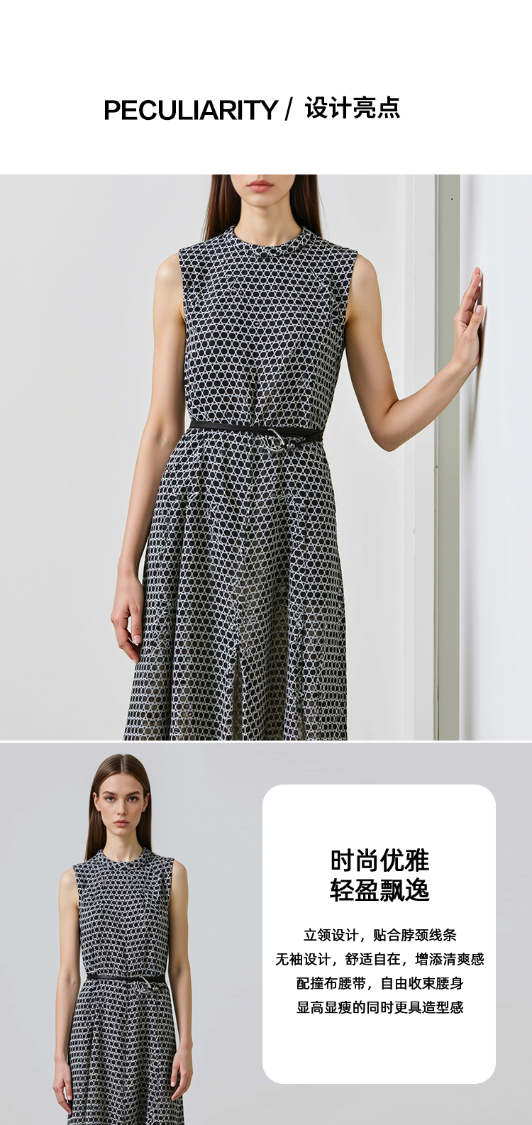 EITIE爱特爱夏季新款修身气质显瘦时尚收腰显瘦无袖连衣裙8107837