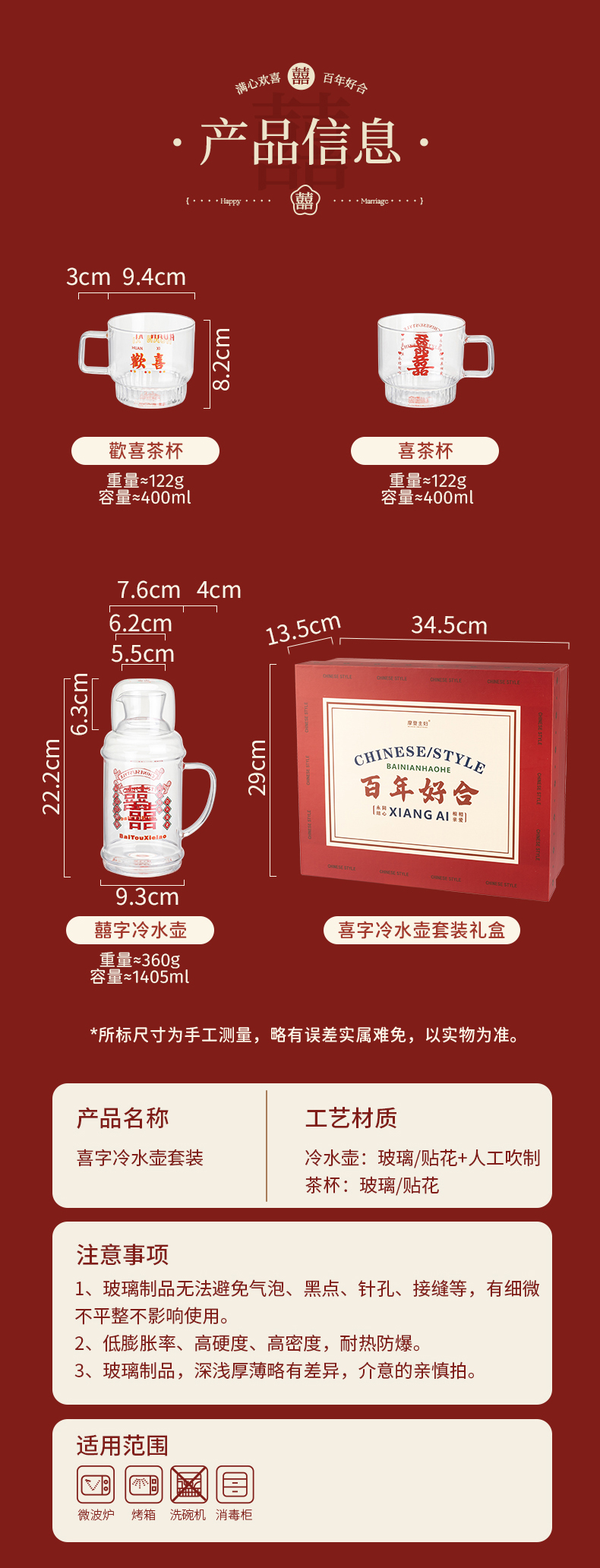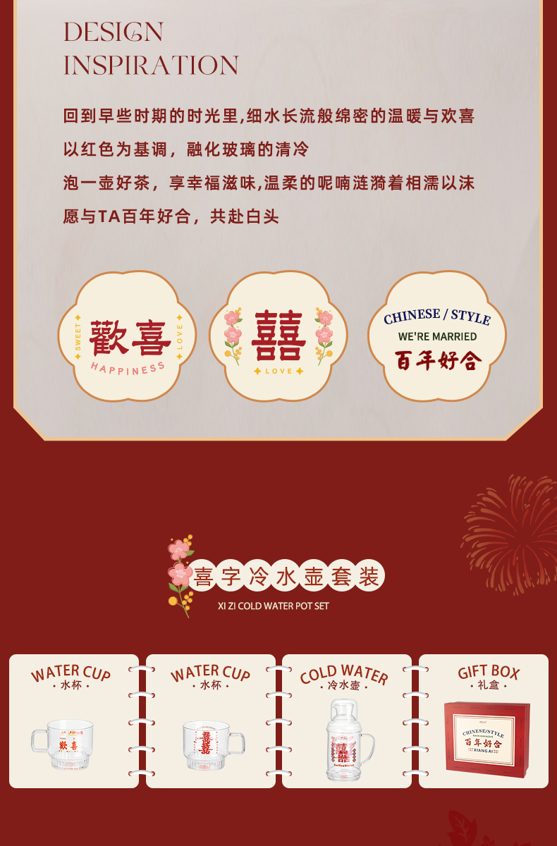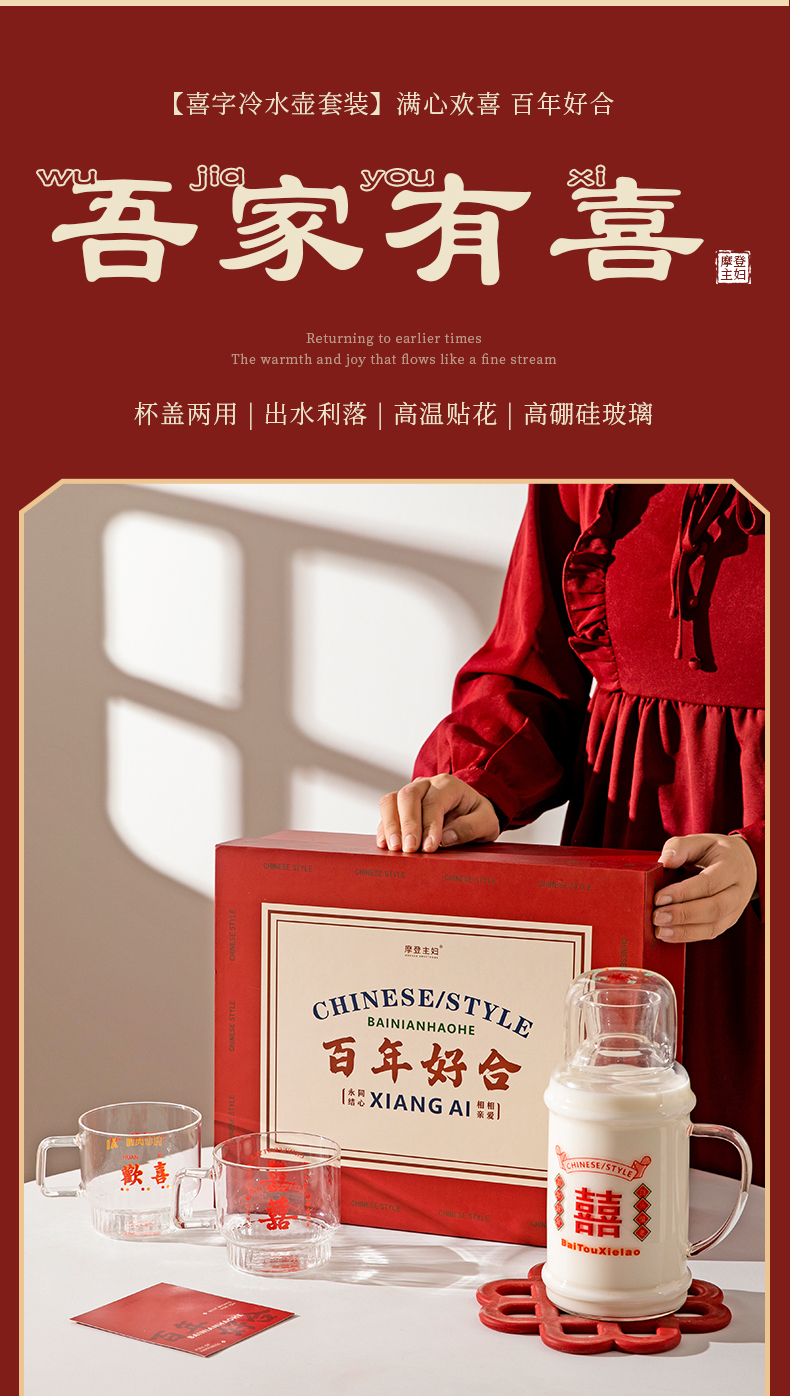 摩登主妇玻璃冷水壶家用凉水杯大容量新婚伴手礼凉水壶套装冷泡壶