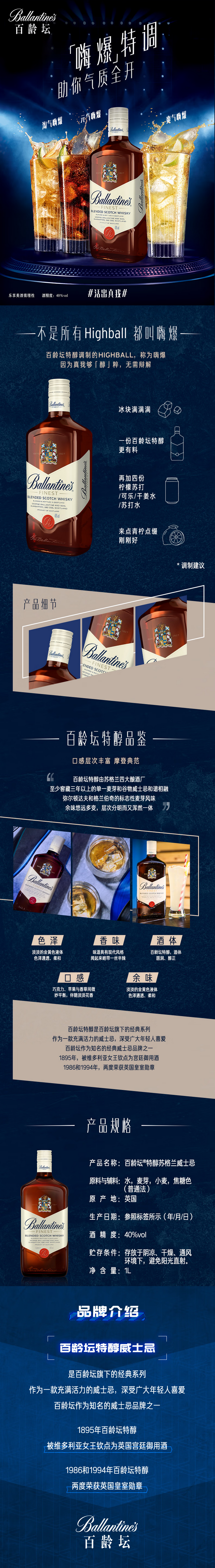 百龄坛特醇调和威士忌 苏格兰进口洋酒烈酒调酒基酒可乐桶