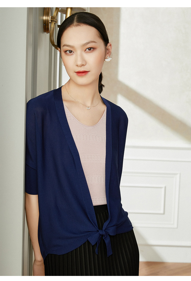 乔万尼薄款女冰丝短款针织衫女v领外套开衫外套上衣女设计感早春EI1M937