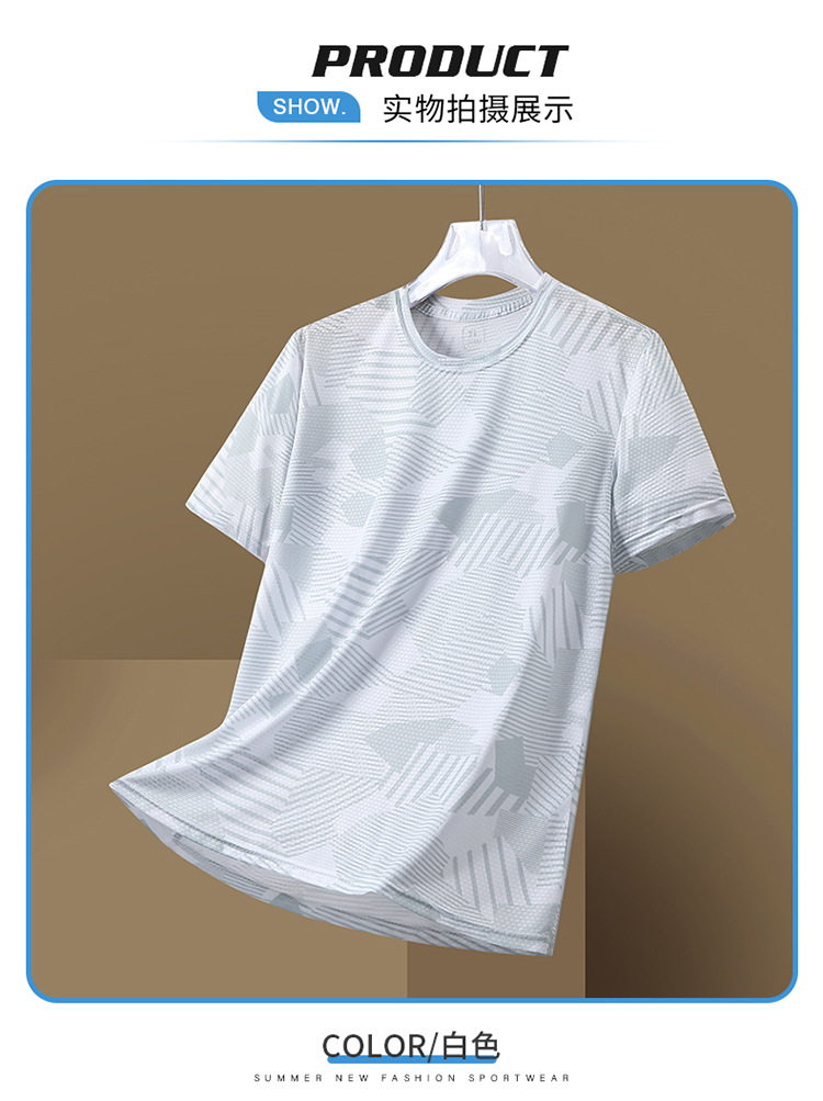 红览夏季男士短袖迷彩大码圆领T恤运动休闲户外跑步健身速干凉感上衣AL8902