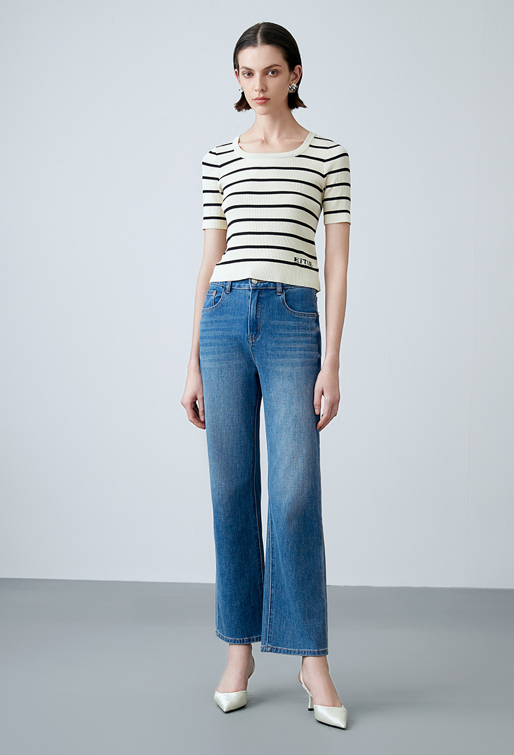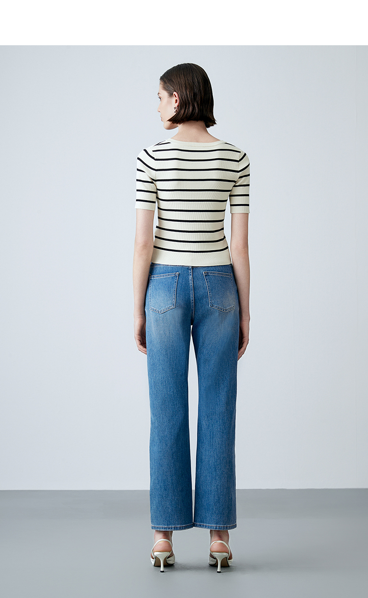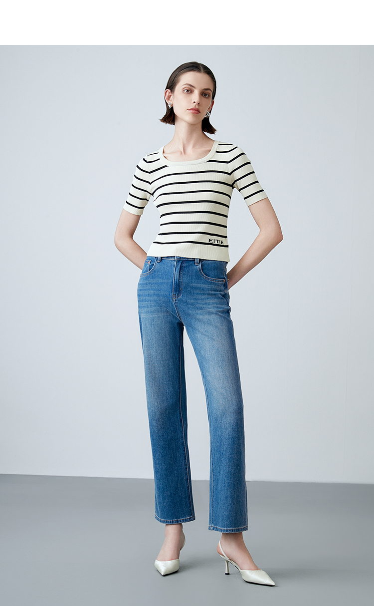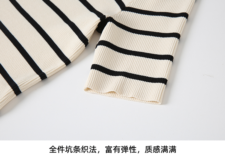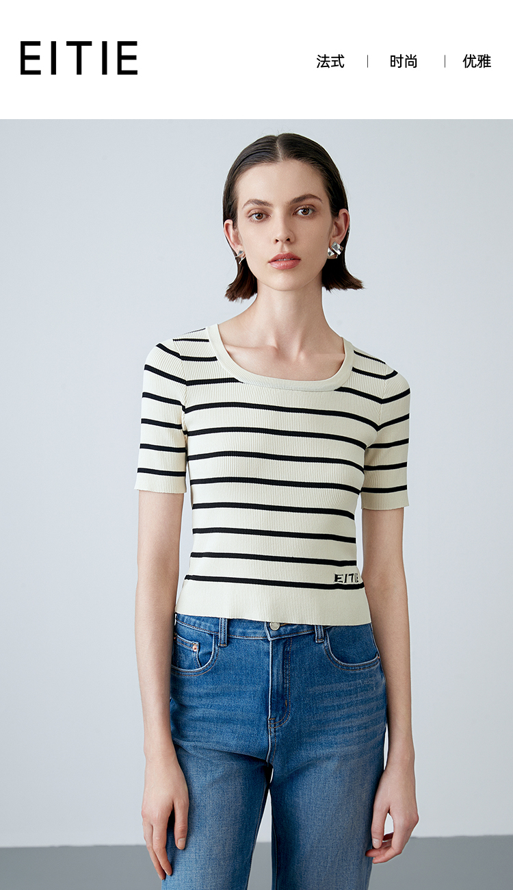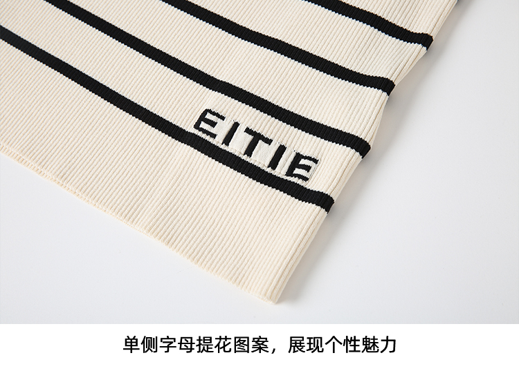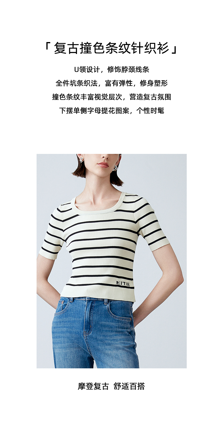 EITIE爱特爱春季新款撞色条纹显瘦百搭基础简约针织衫7701411