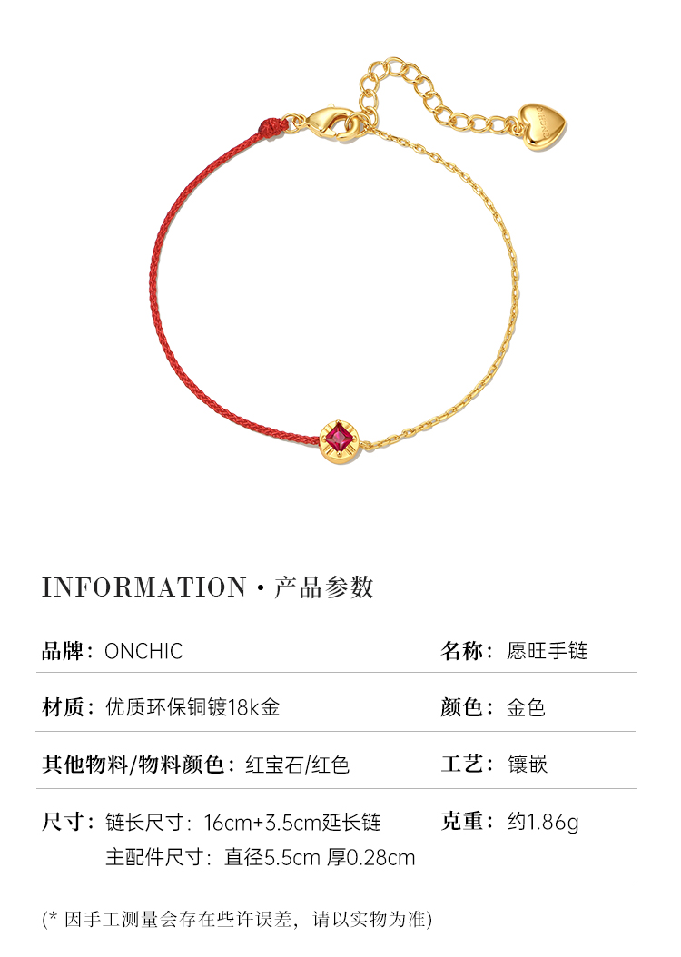 ONCHIC 愿旺手链镀18k金拼接原创手绳