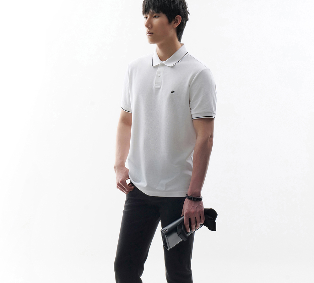 HIM漢崇 休闲百搭POLO衫简约字母胶章印花男士短袖上衣 2026夏季