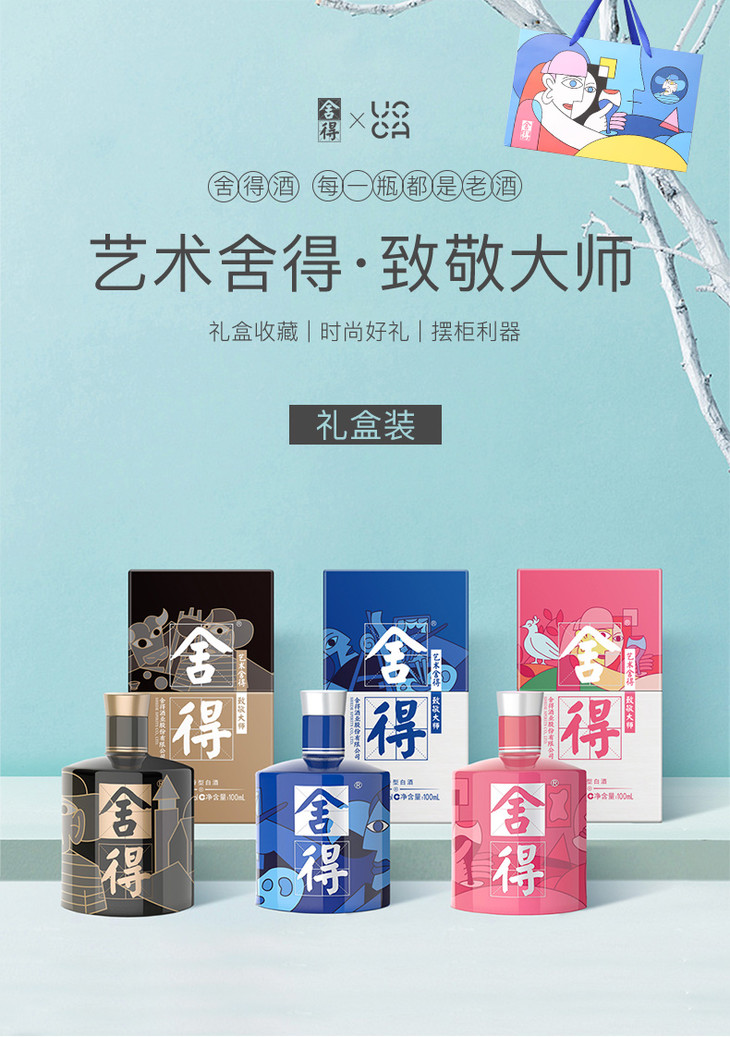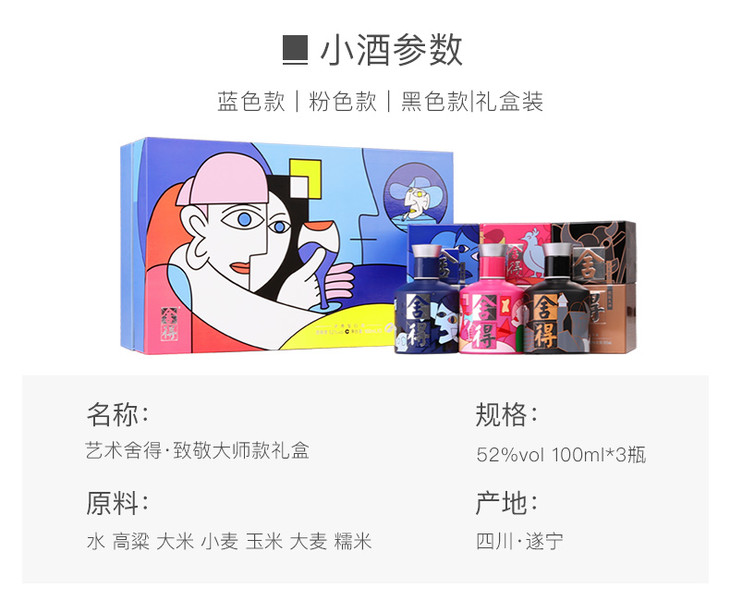 【2020年艺术礼盒】沱牌舍得 浓香型白酒 52度 送礼自饮 毕加索100mL*3瓶 礼盒装