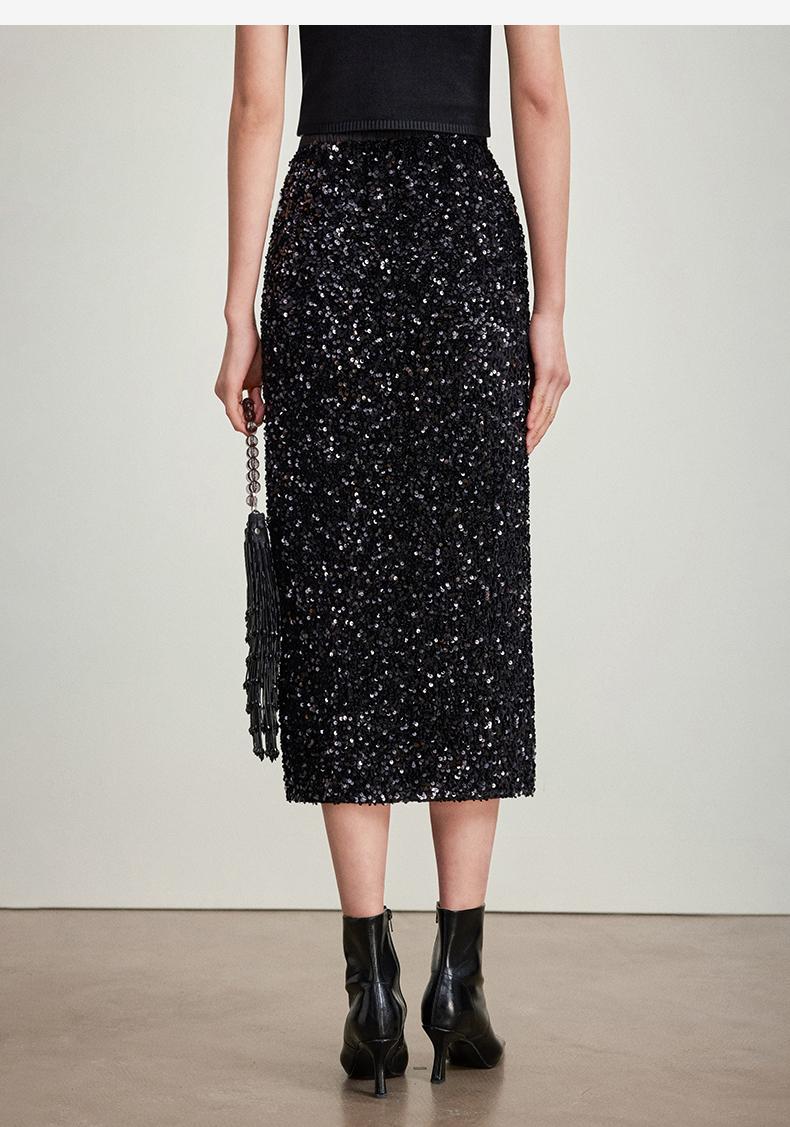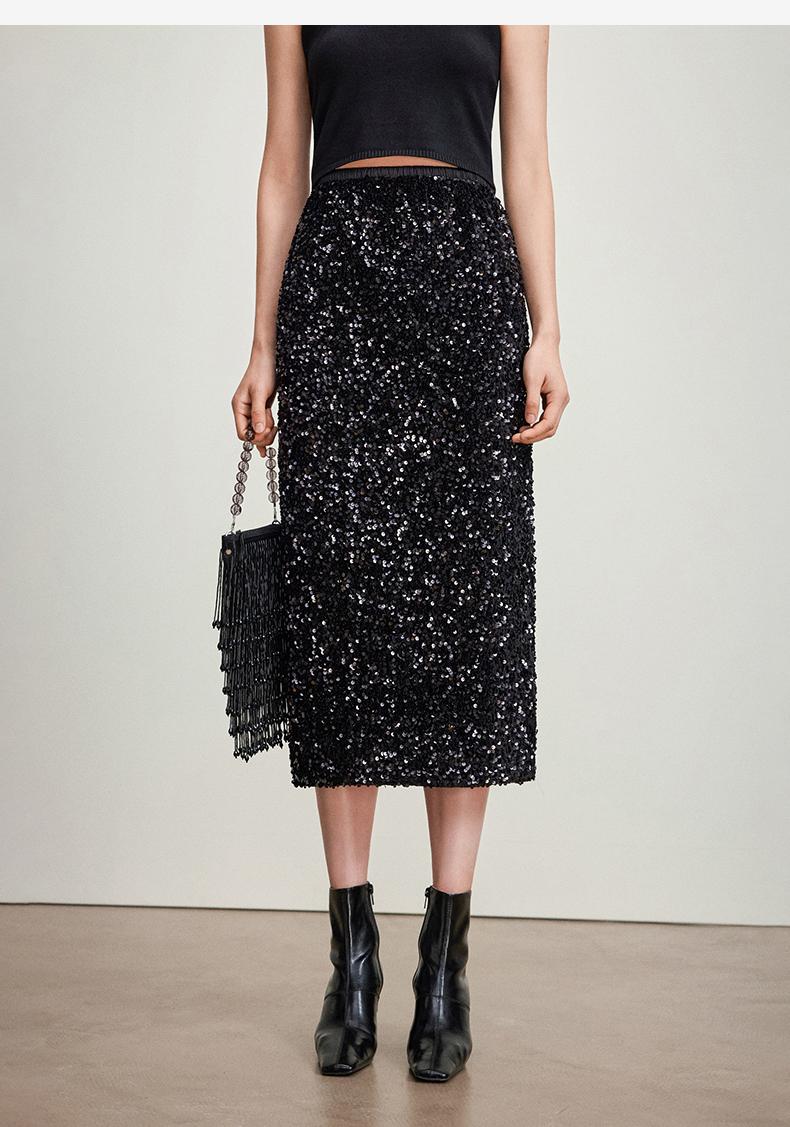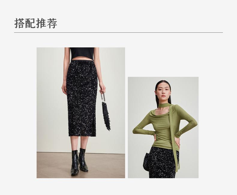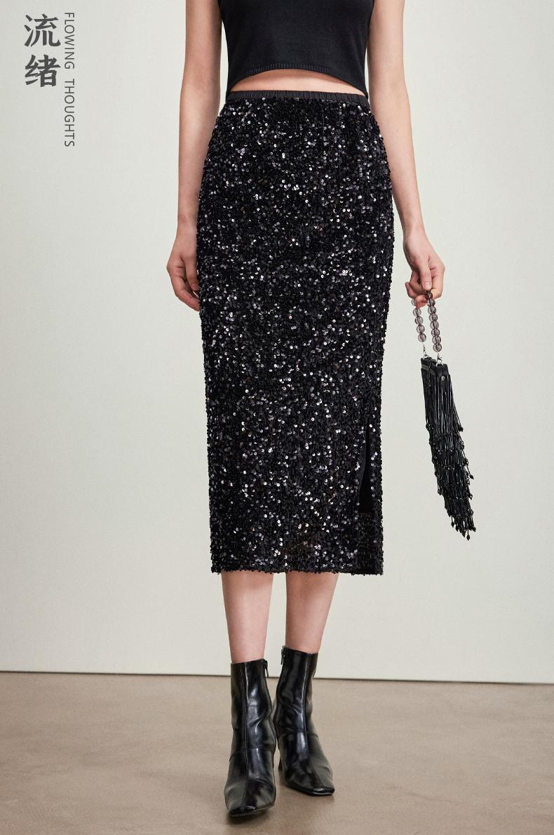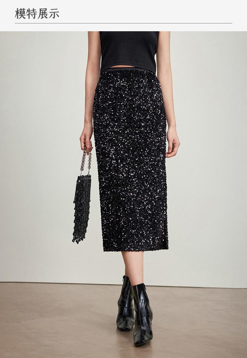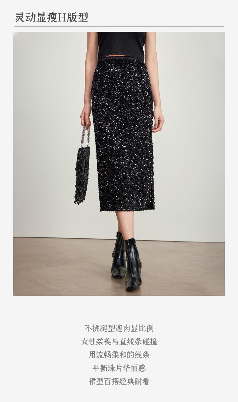 西嘉C+IMPRESS/西嘉老钱风高定秀场光感半身裙女士亮片高腰直筒包臀裙BQ2401112