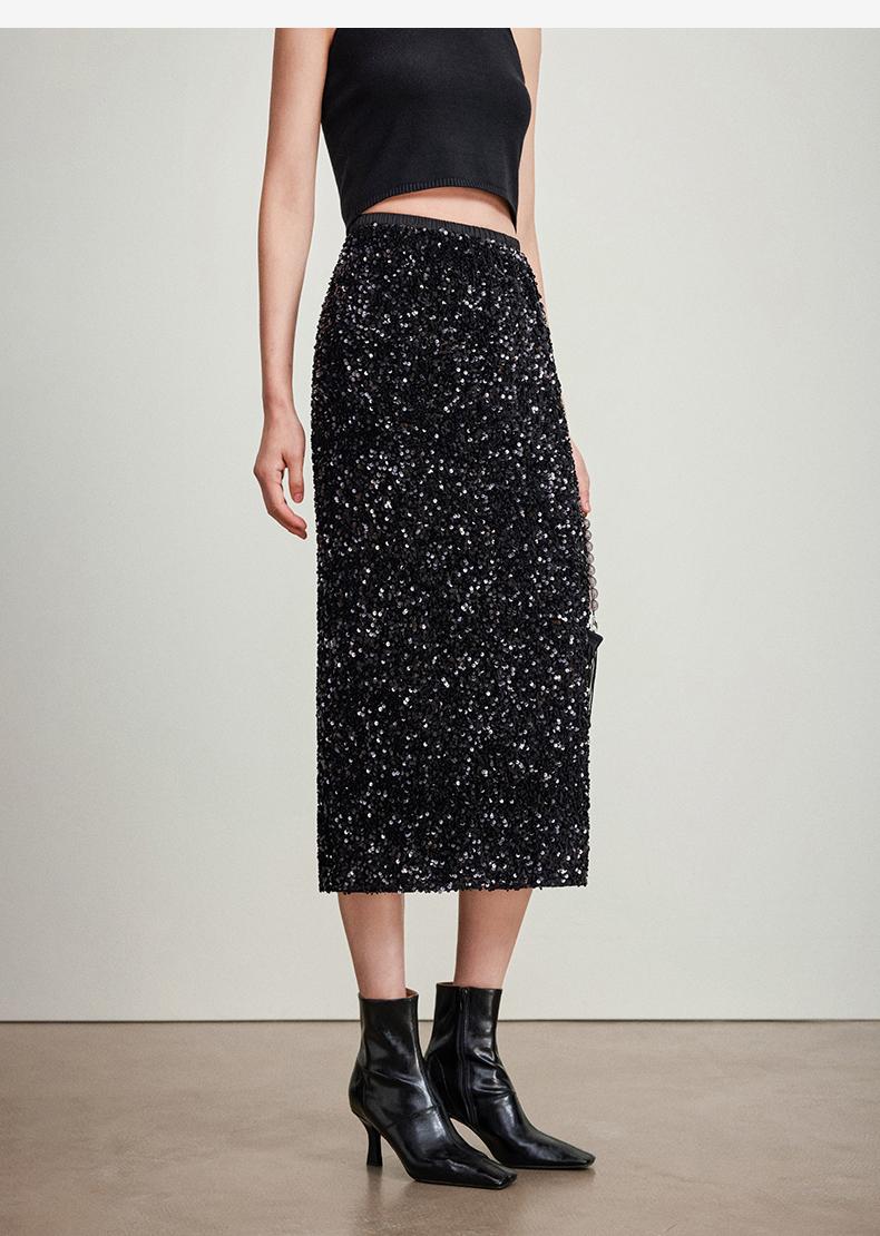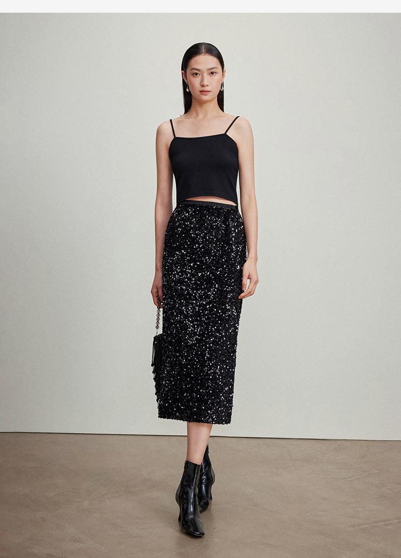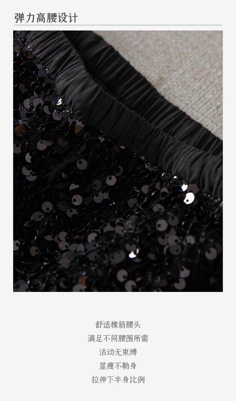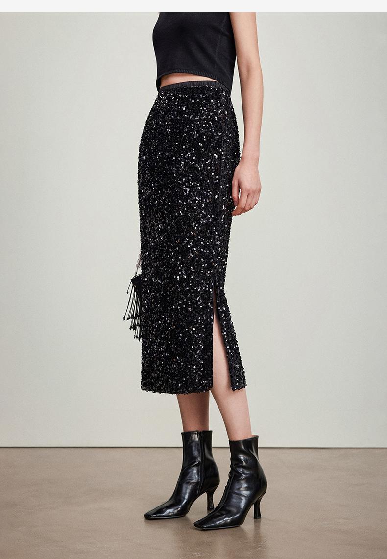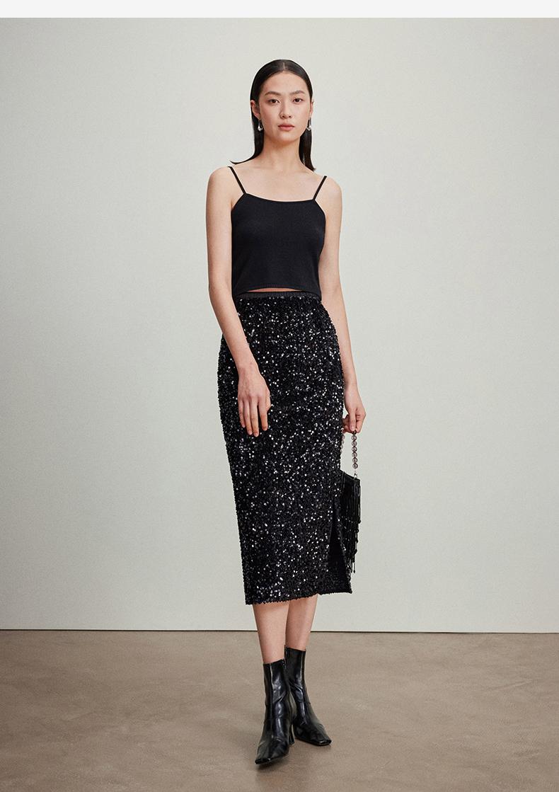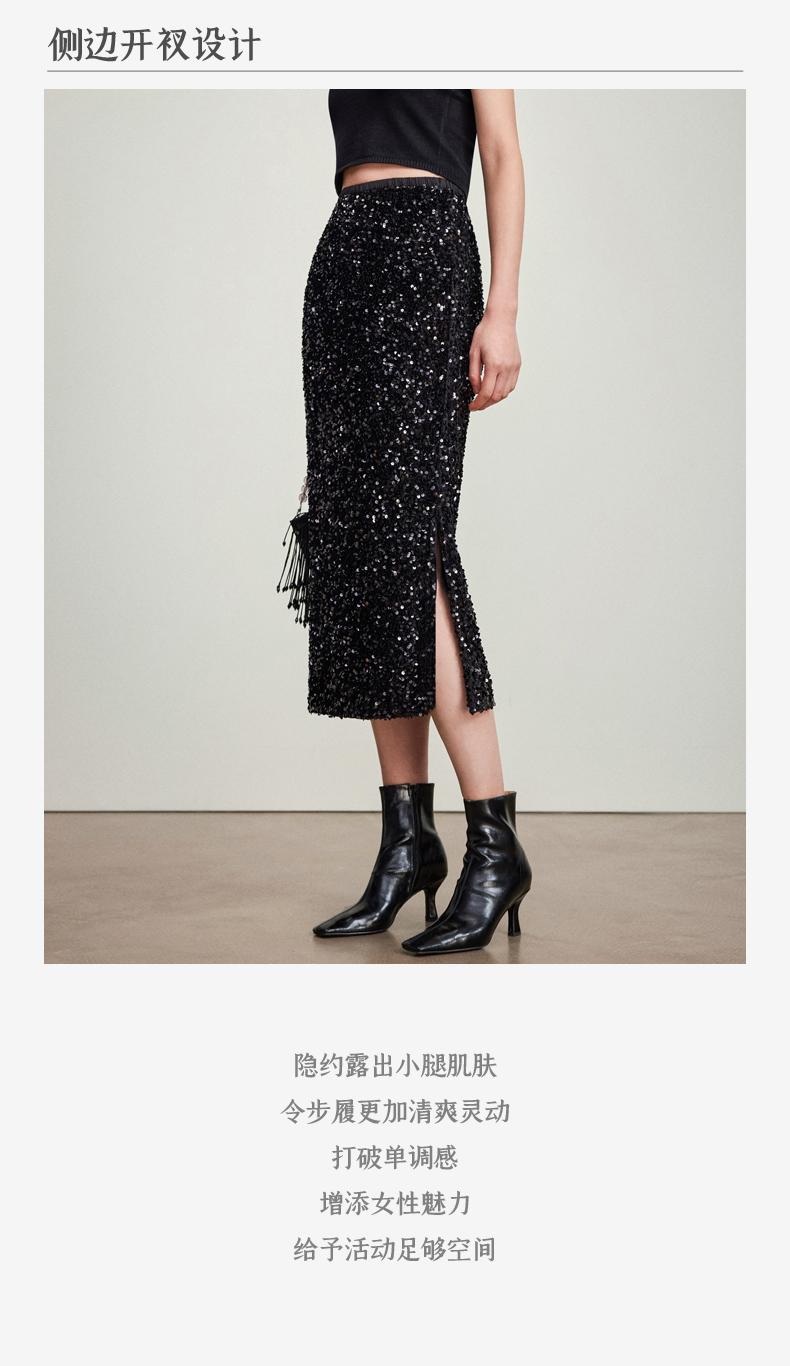 西嘉C+IMPRESS/西嘉老钱风高定秀场光感半身裙女士亮片高腰直筒包臀裙BQ2401112