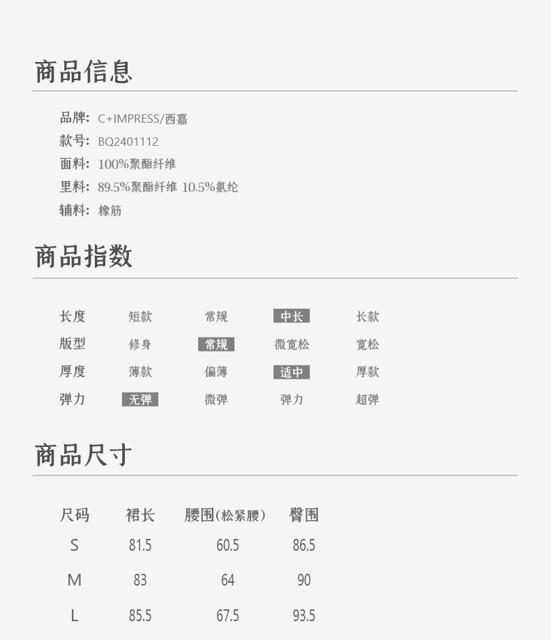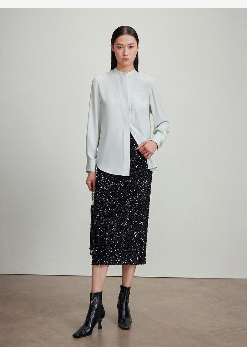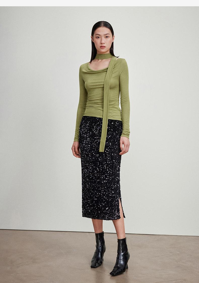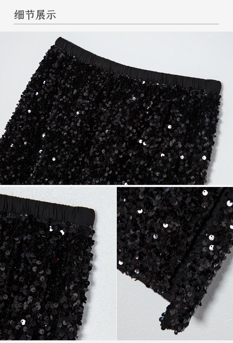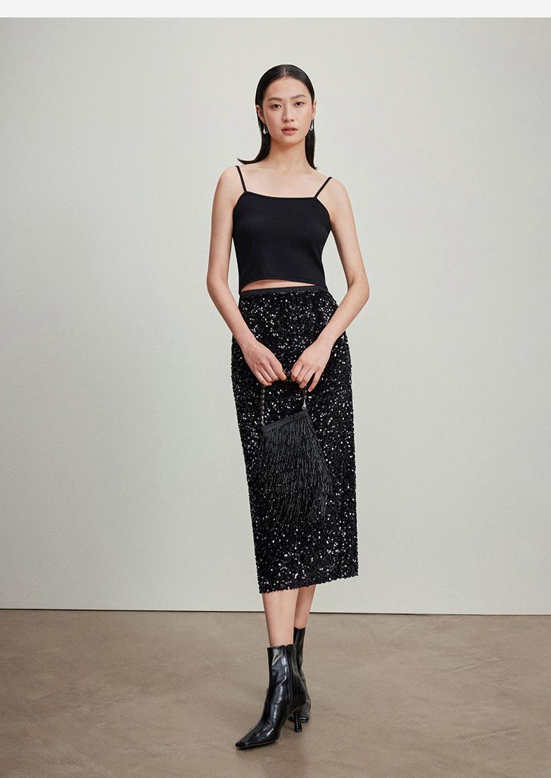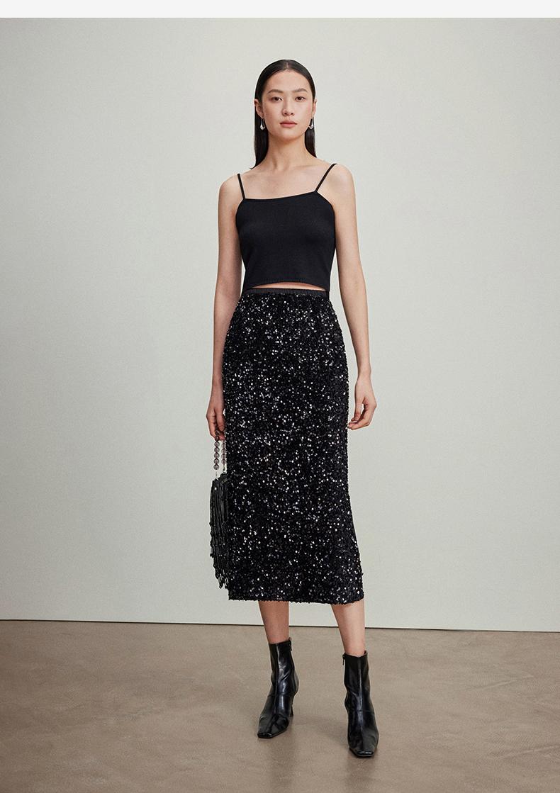西嘉C+IMPRESS/西嘉老钱风高定秀场光感半身裙女士亮片高腰直筒包臀裙BQ2401112