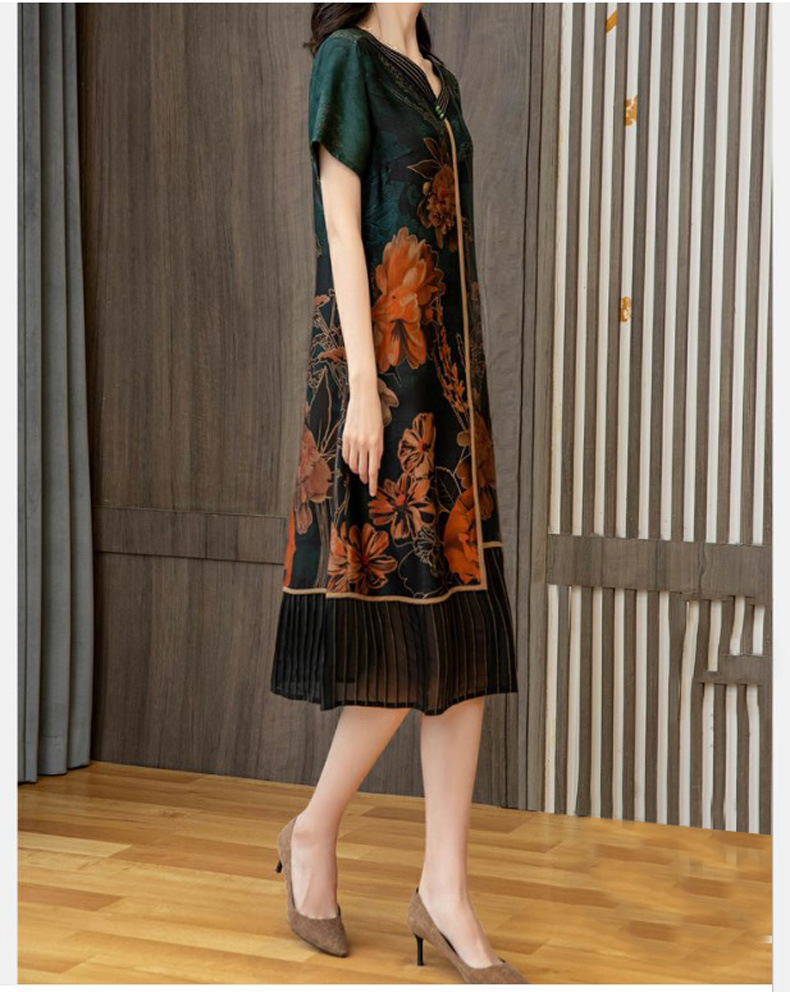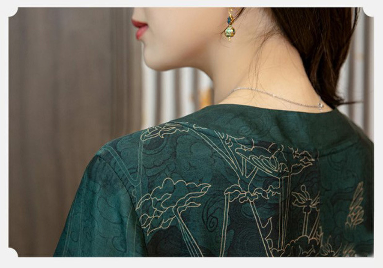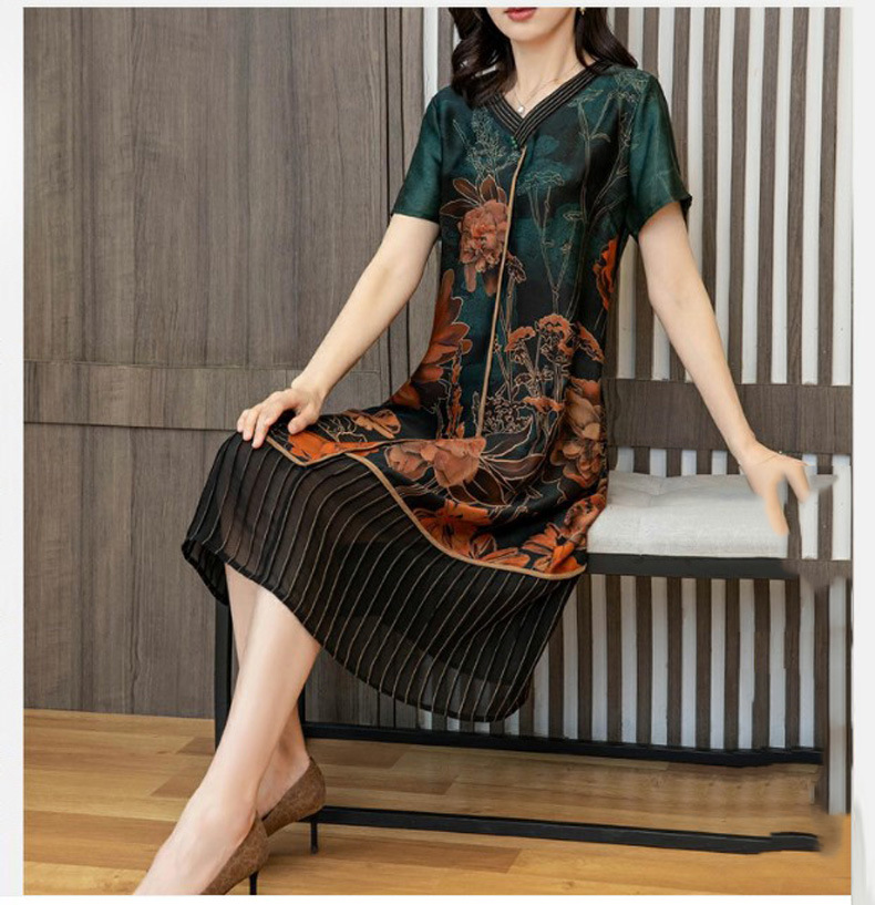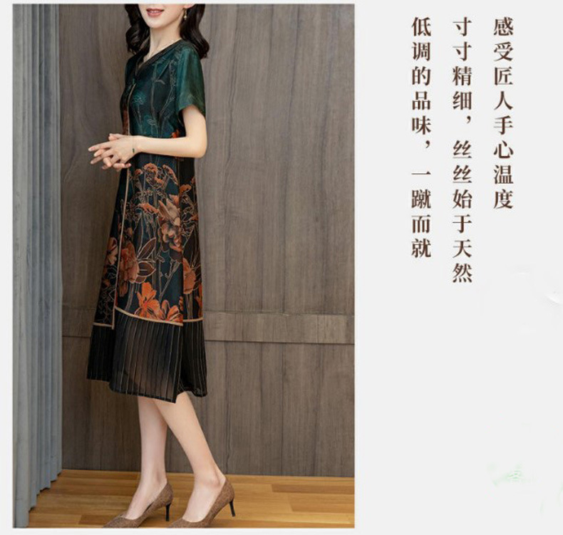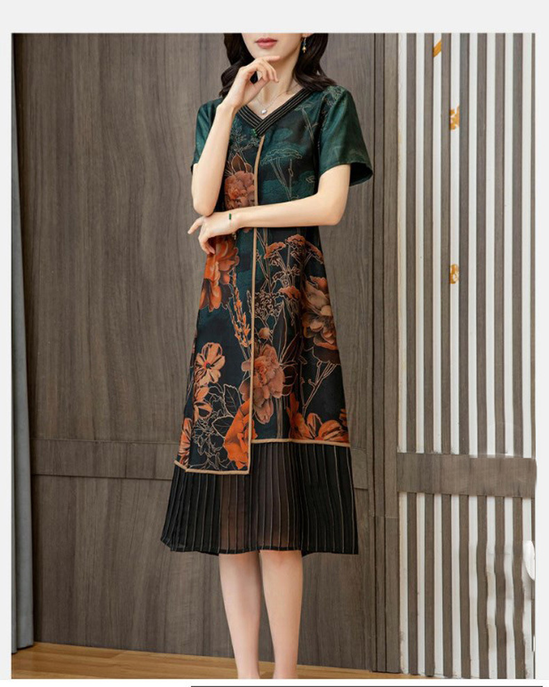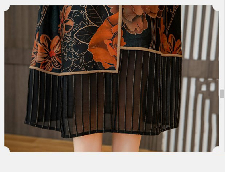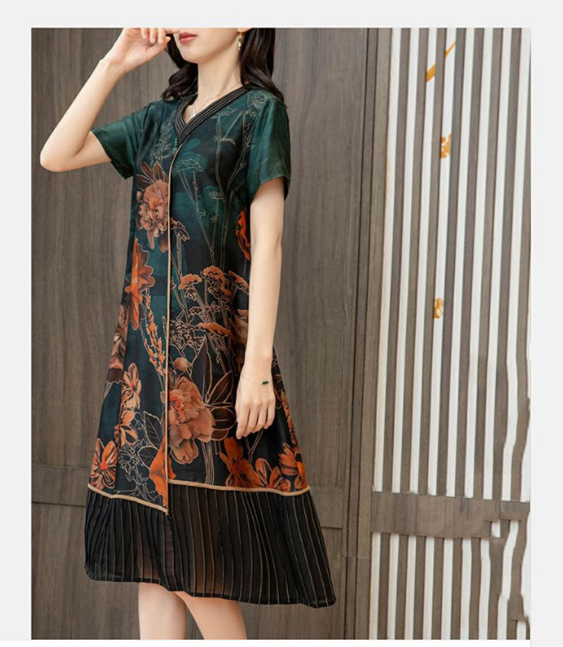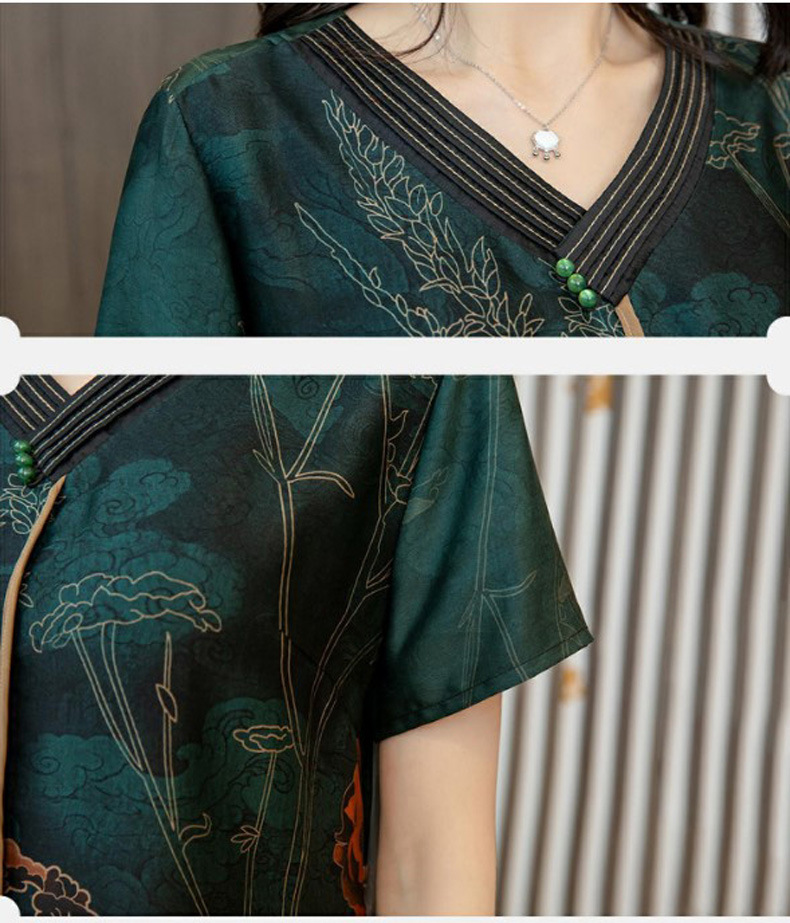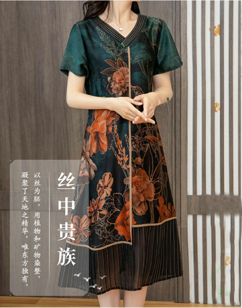 上海旗袍厂XT-21019-3真丝v领下摆拼接 摇曳生姿步步生香 丝绸 香云纱连衣裙