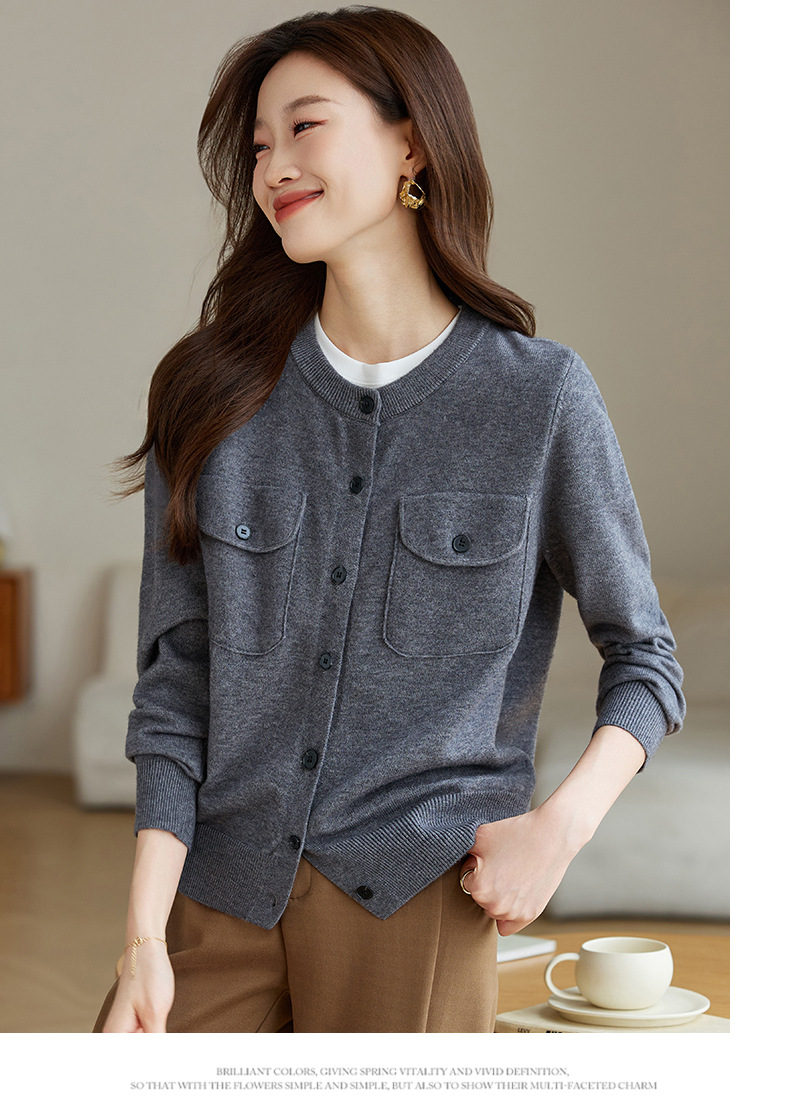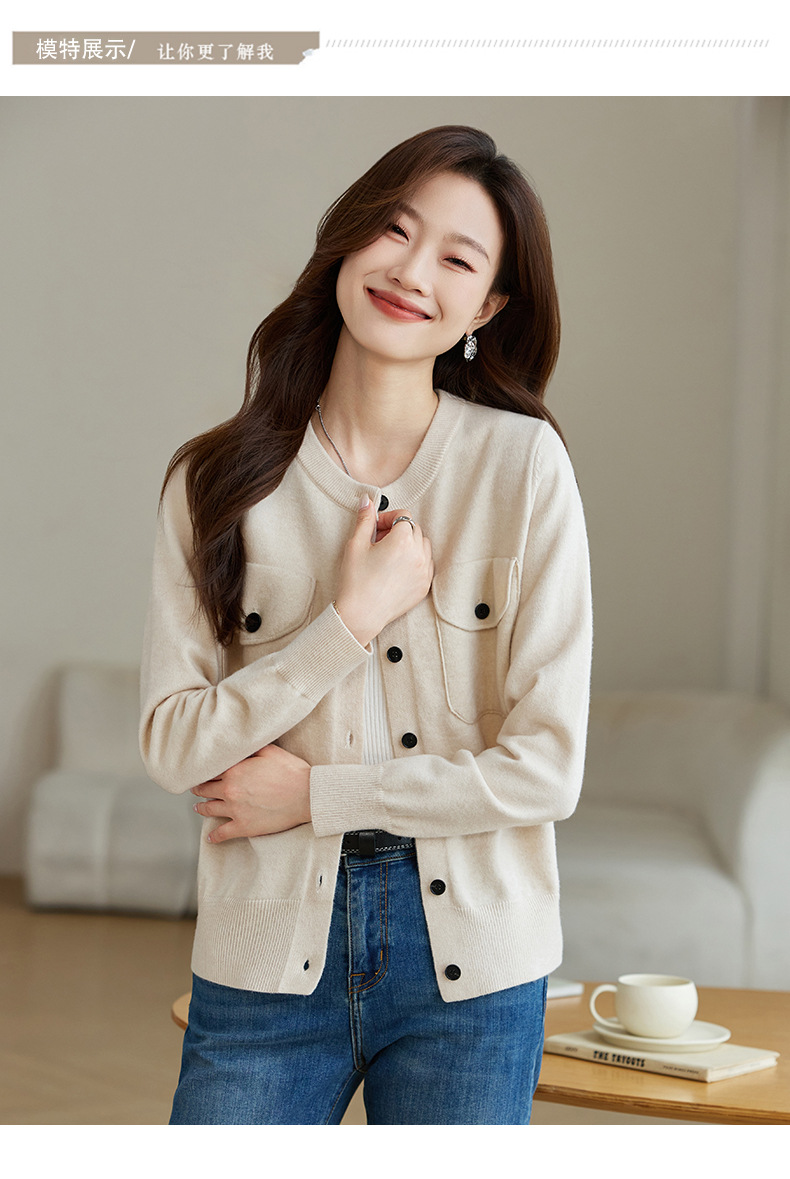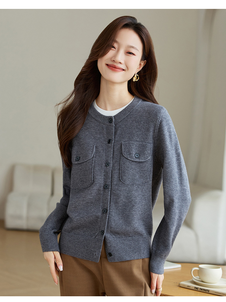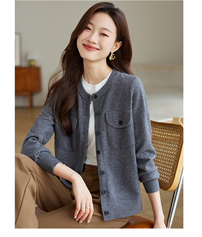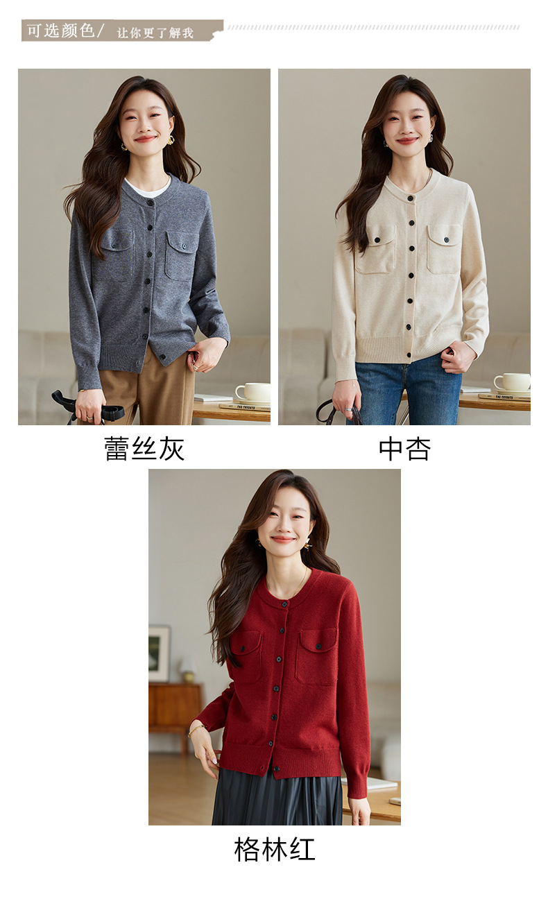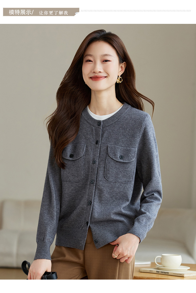 CC-J878灰色短款 羊毛针织开衫女2024春秋新款慵懒风短款小香风毛衣外套
