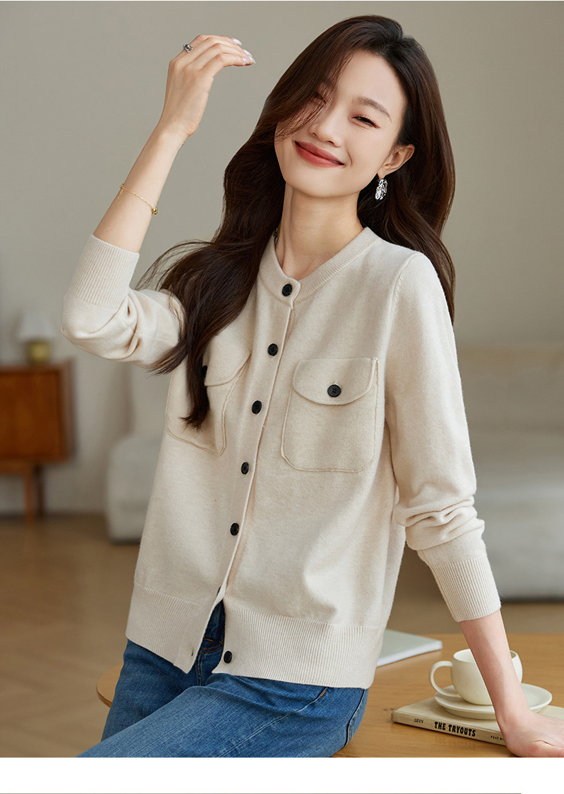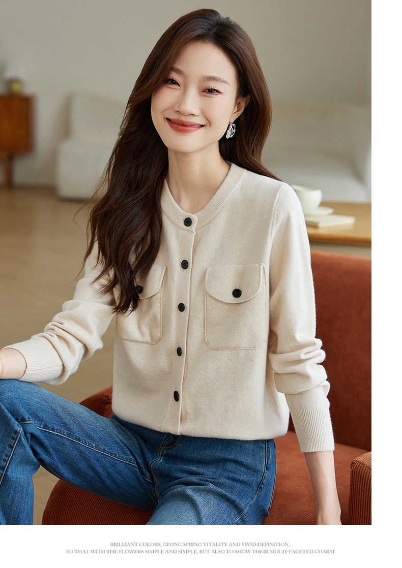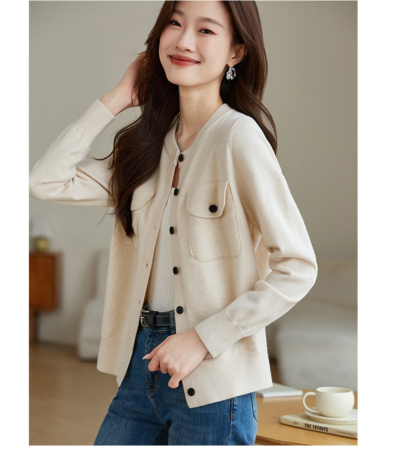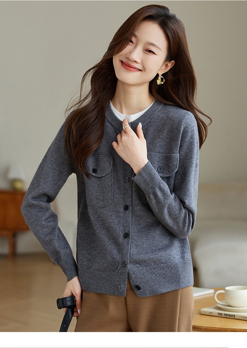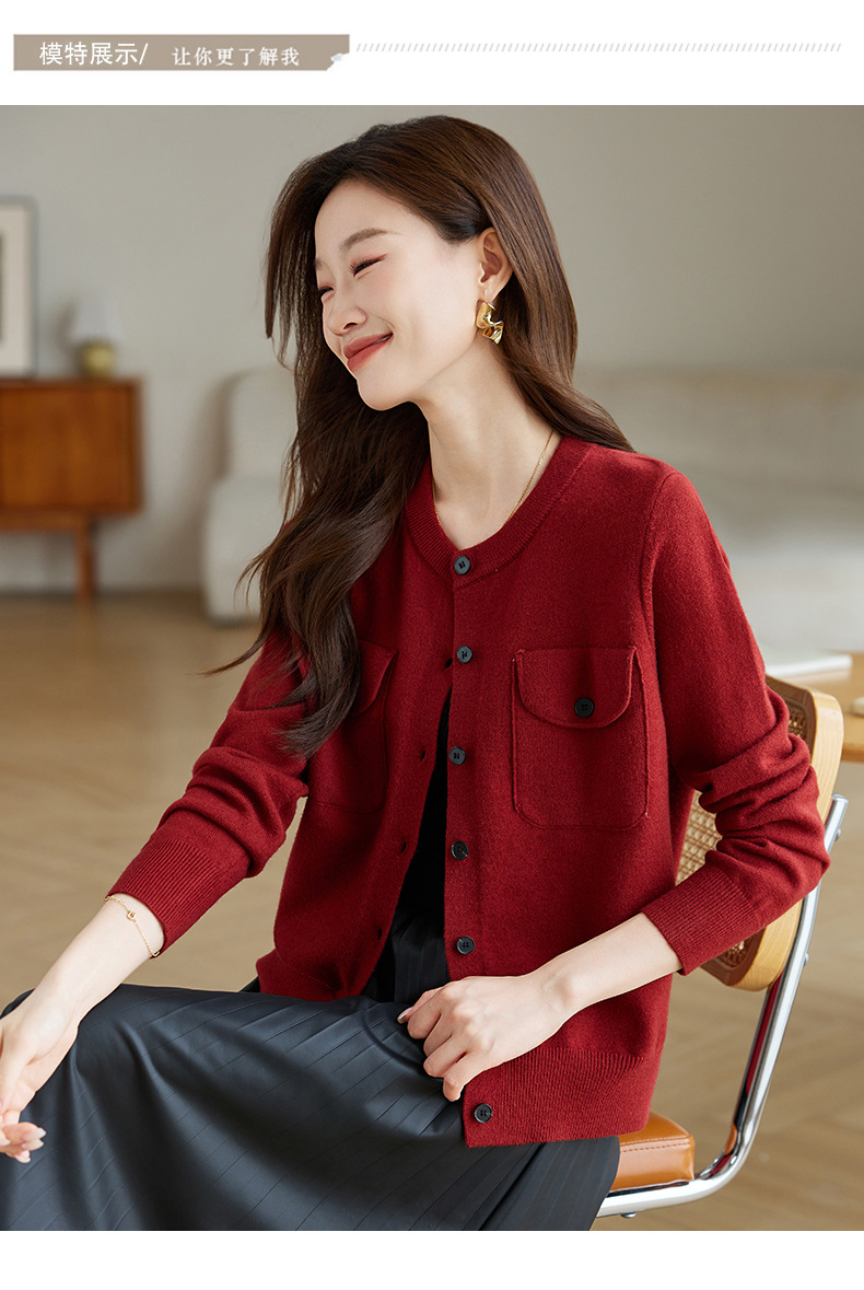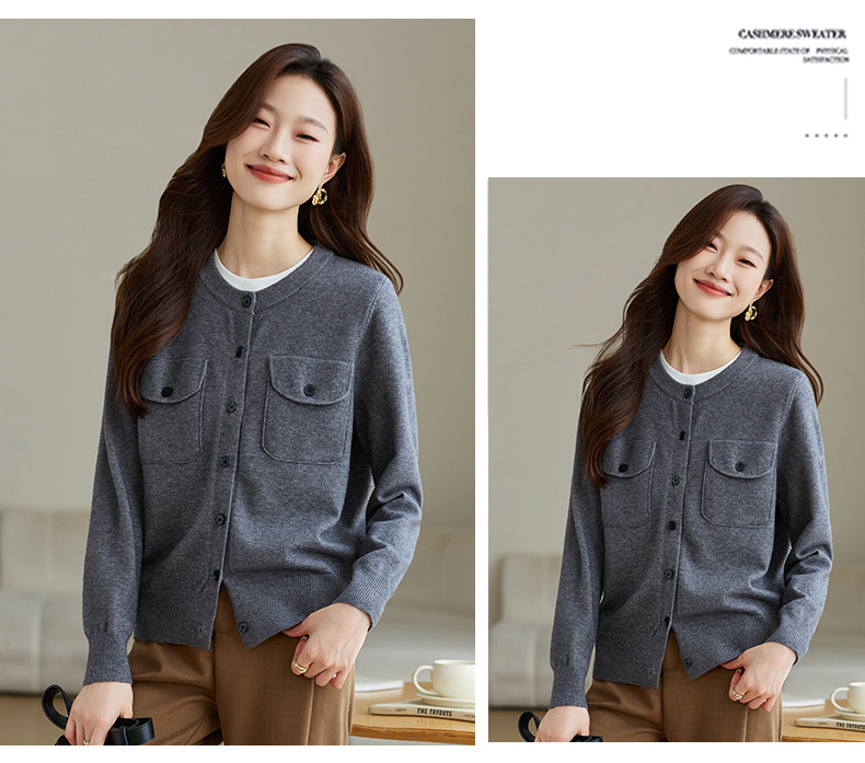 CC-J878灰色短款 羊毛针织开衫女2024春秋新款慵懒风短款小香风毛衣外套