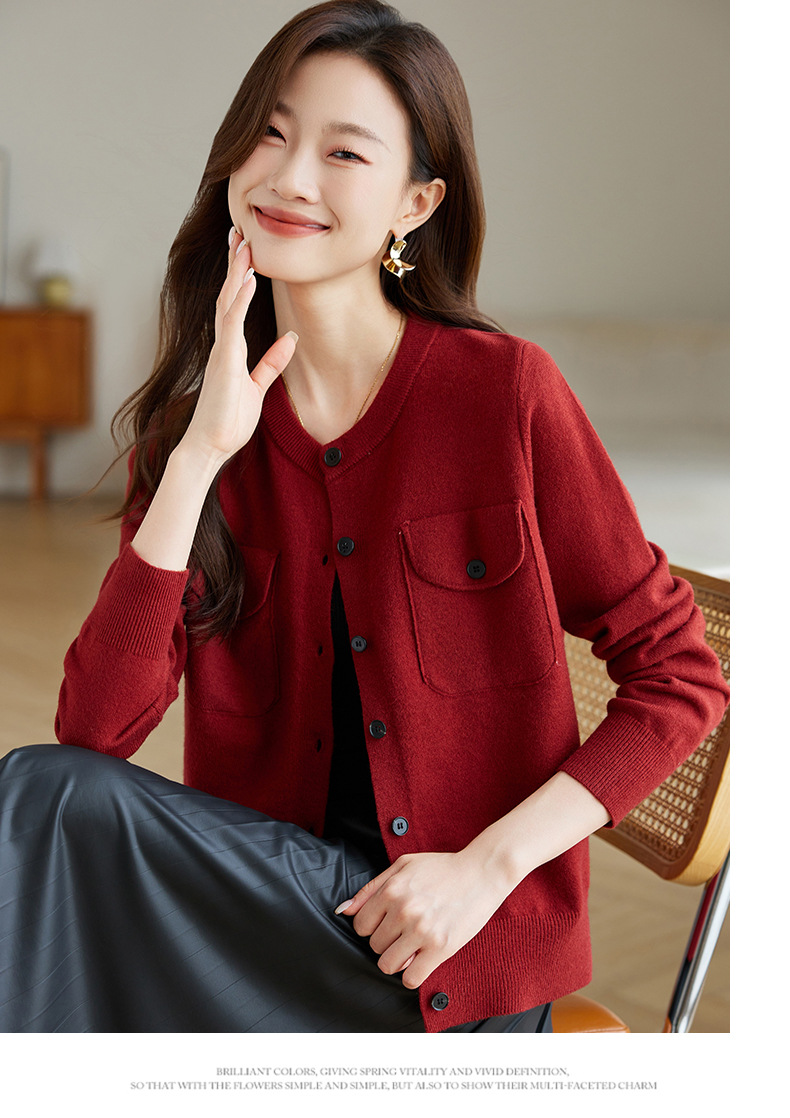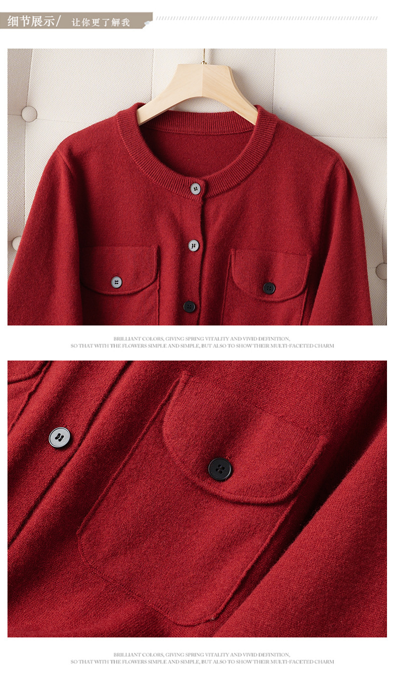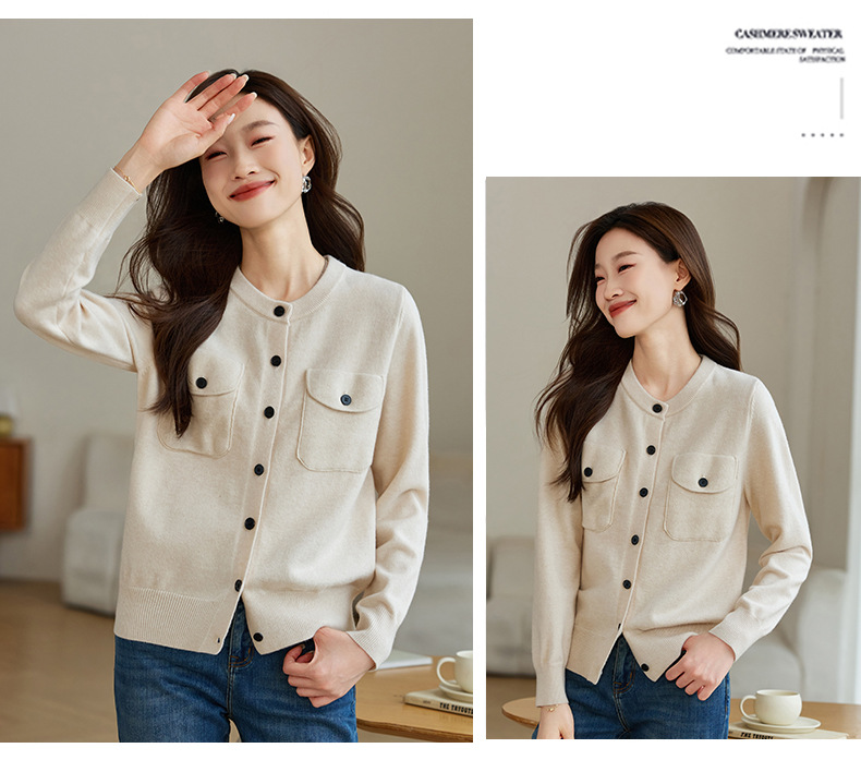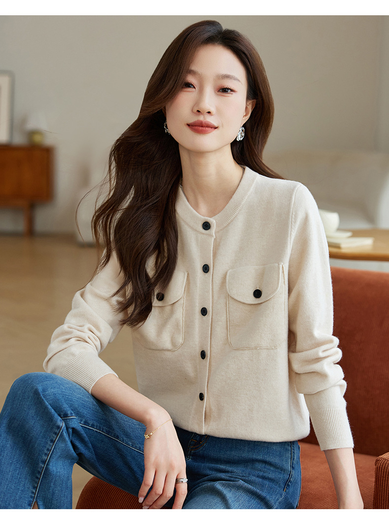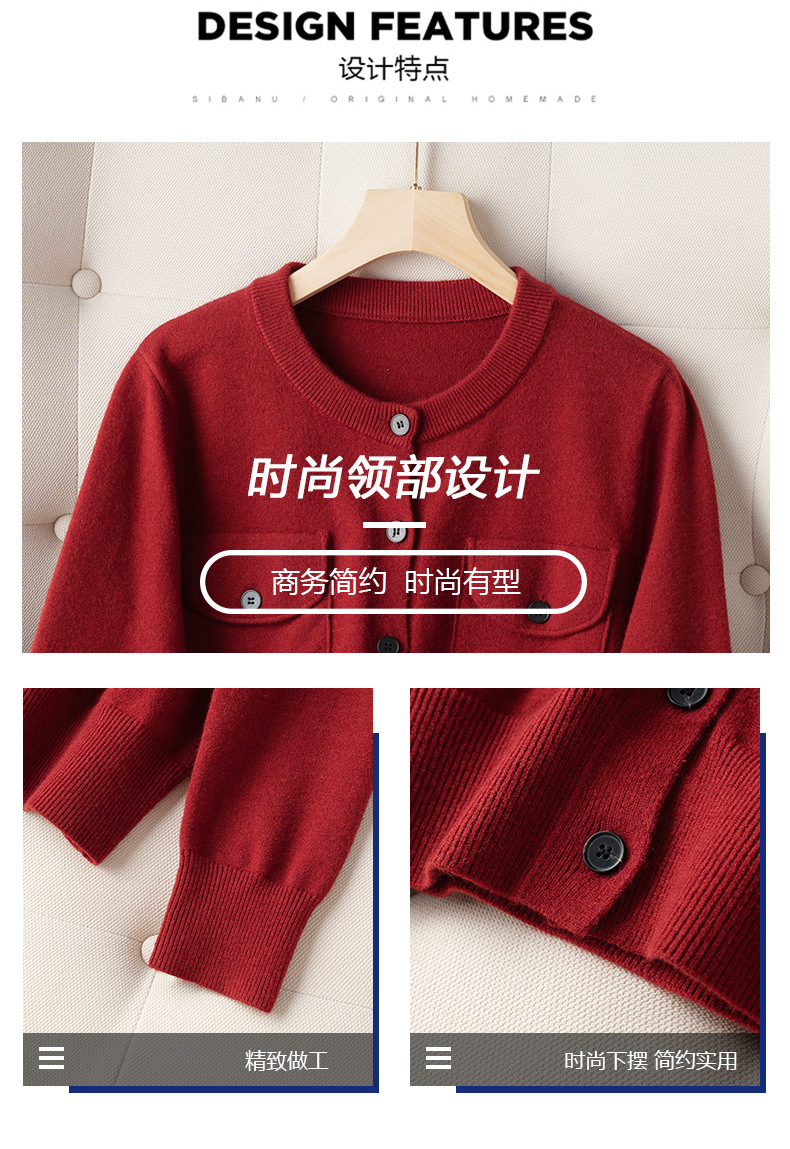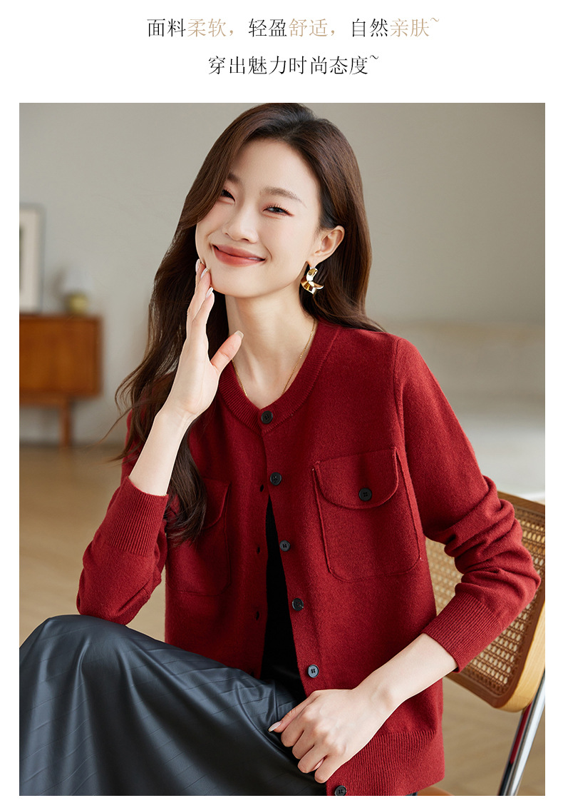 CC-J878灰色短款 羊毛针织开衫女2024春秋新款慵懒风短款小香风毛衣外套
