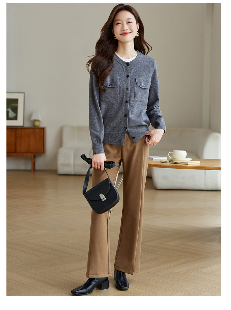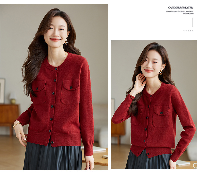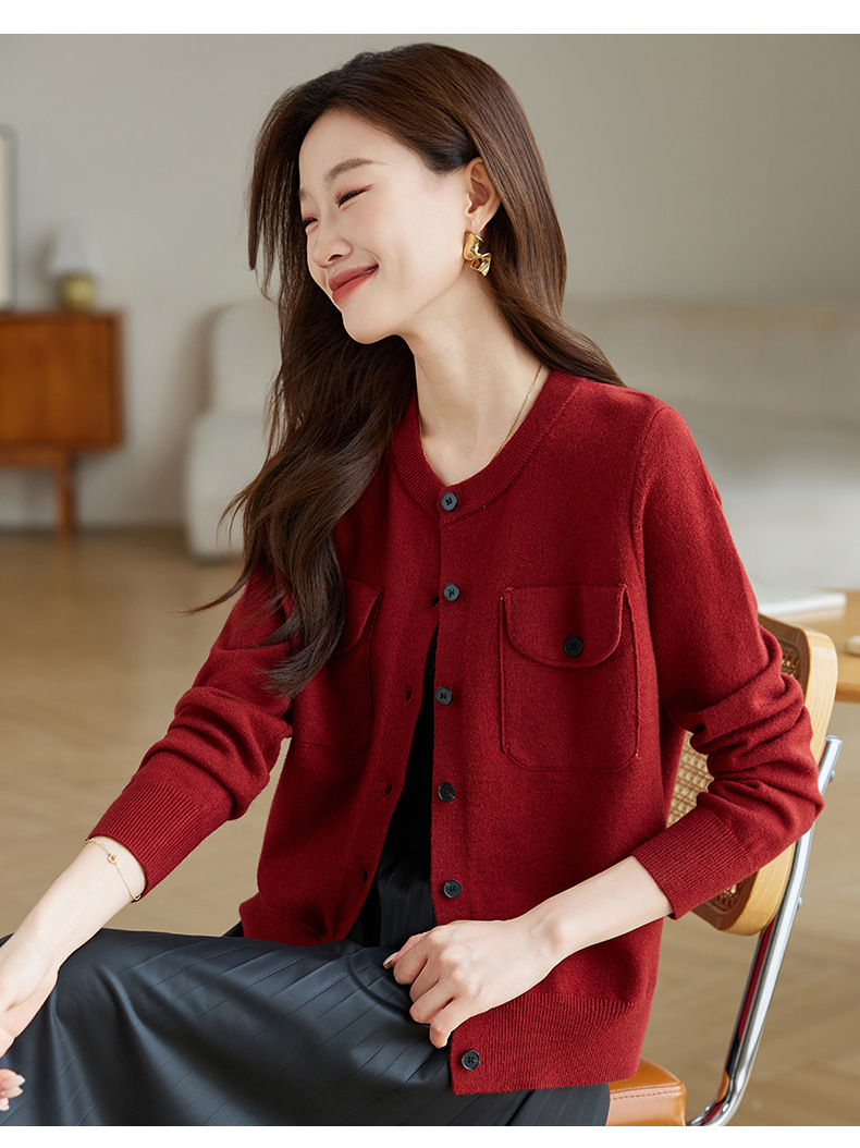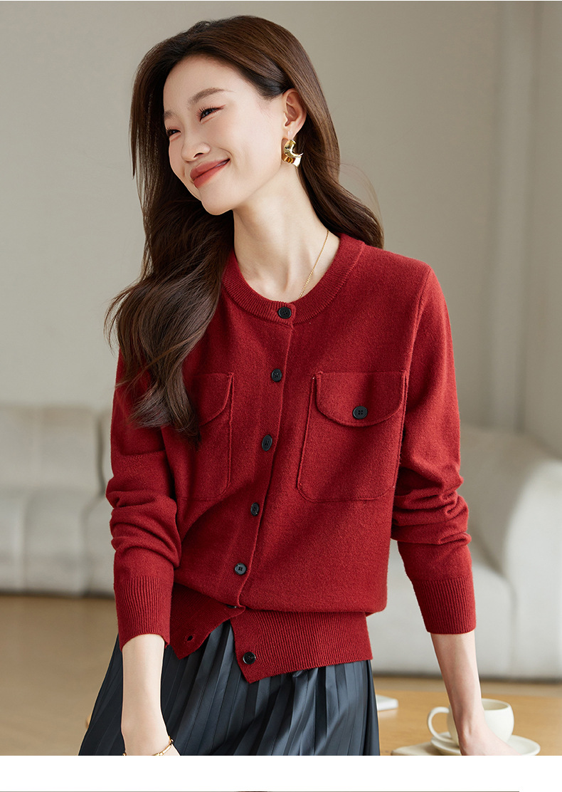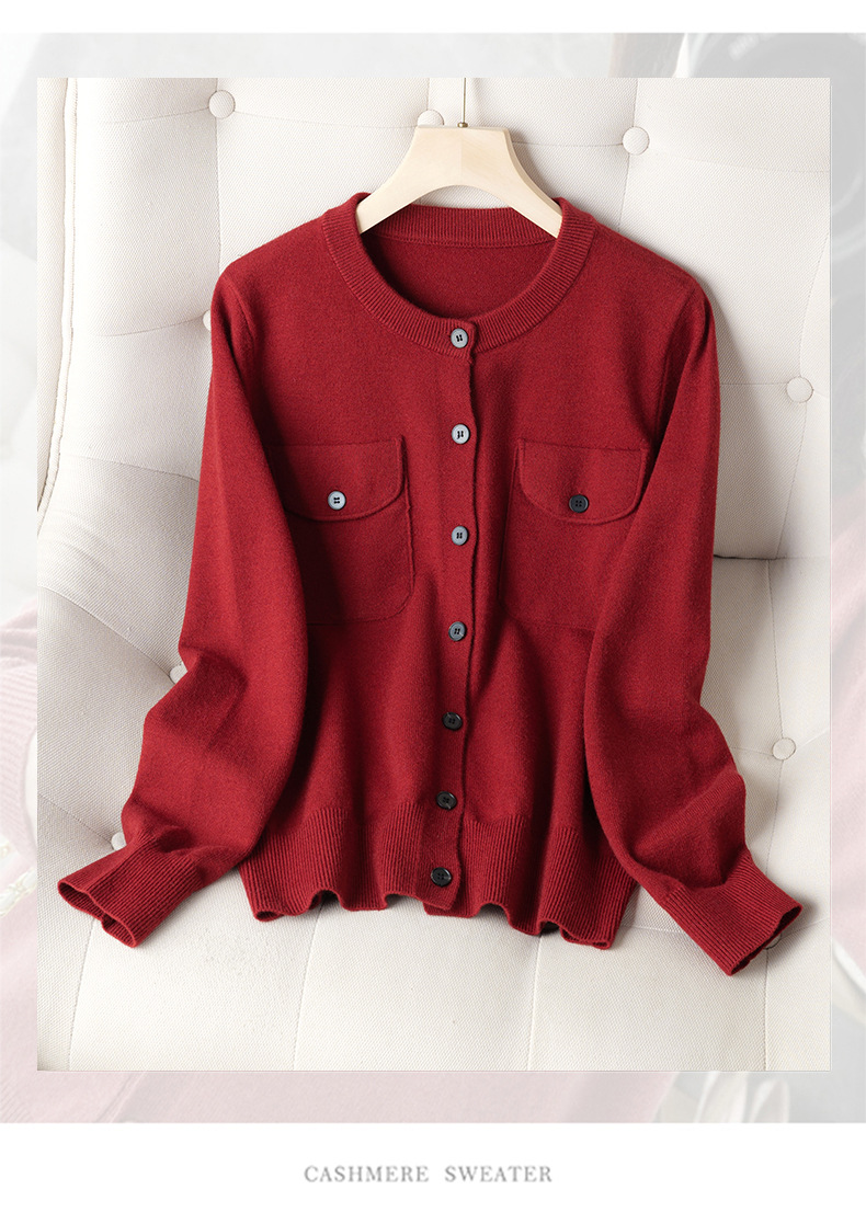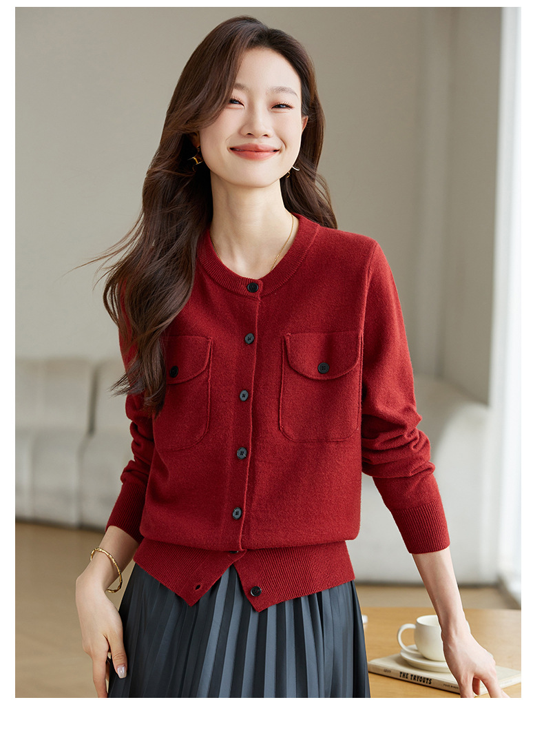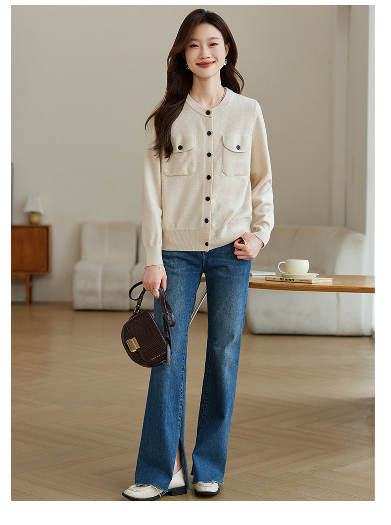 CC-J878灰色短款 羊毛针织开衫女2024春秋新款慵懒风短款小香风毛衣外套