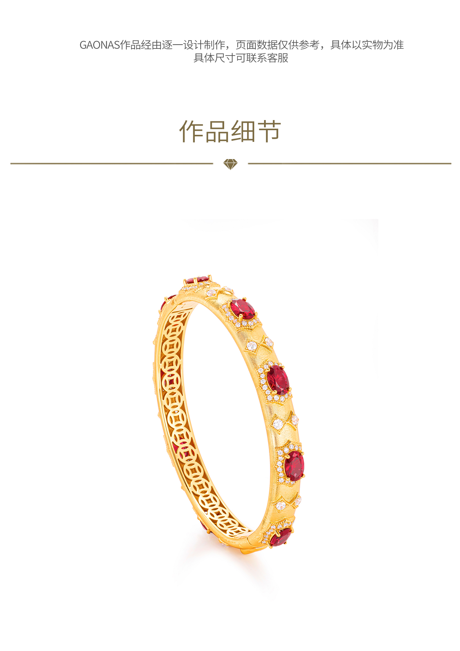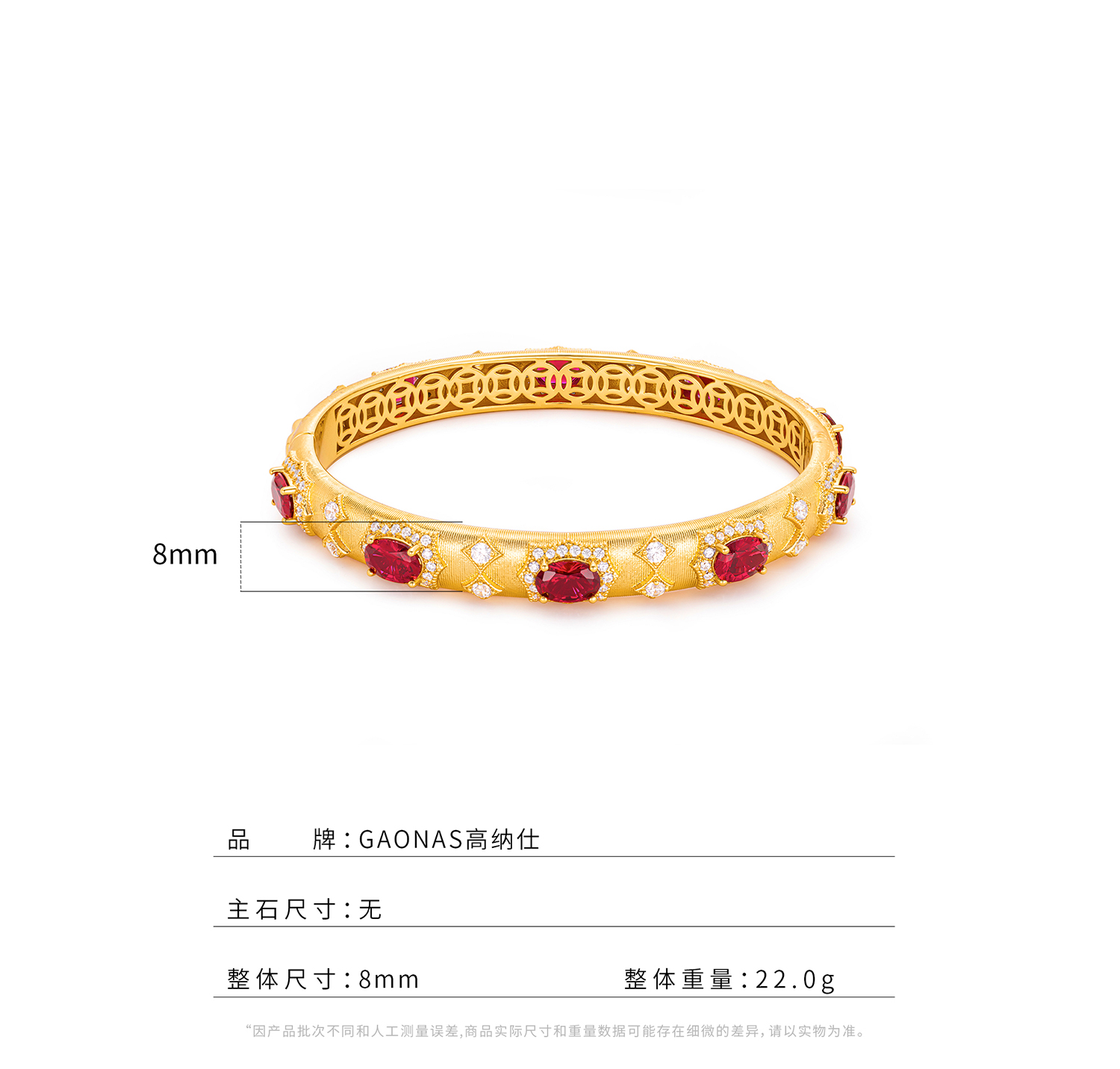 GAONAS 时尚红色贵气华丽美金色手镯 11328SR