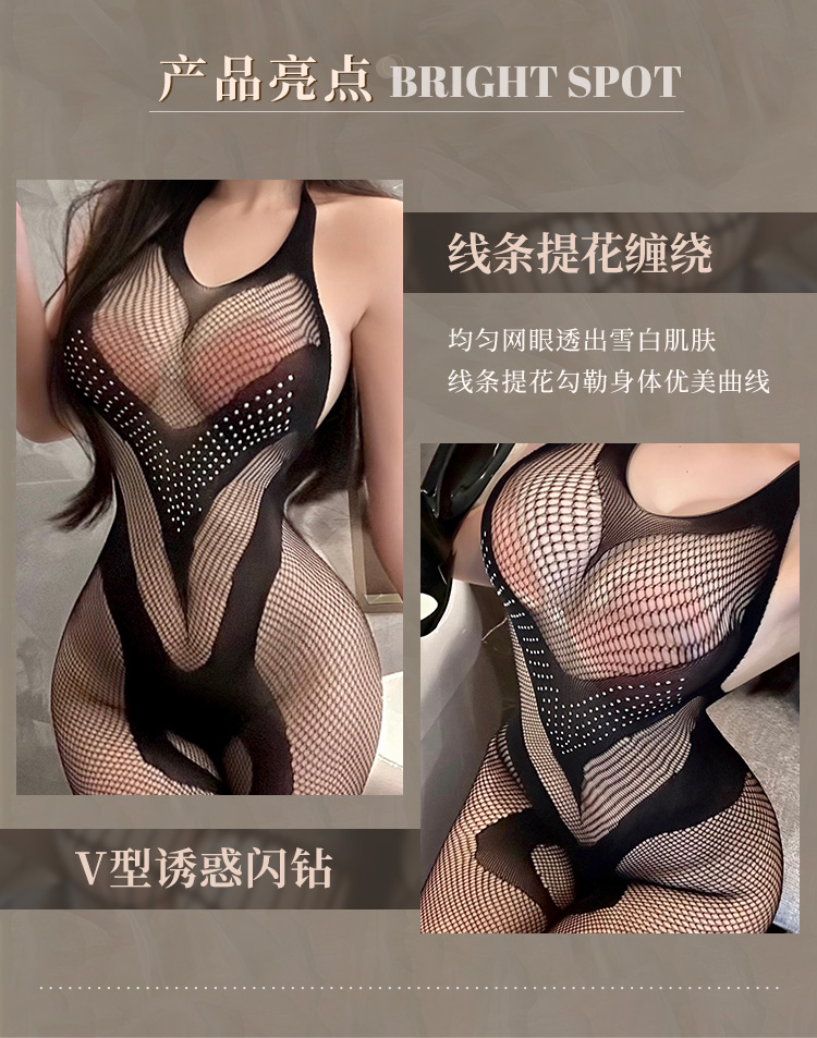 【情趣内衣】霏慕 烫钻缀饰线性缠绕连身袜7551(非质量问题,拆封后不支持退货退款, 介意者慎拍)