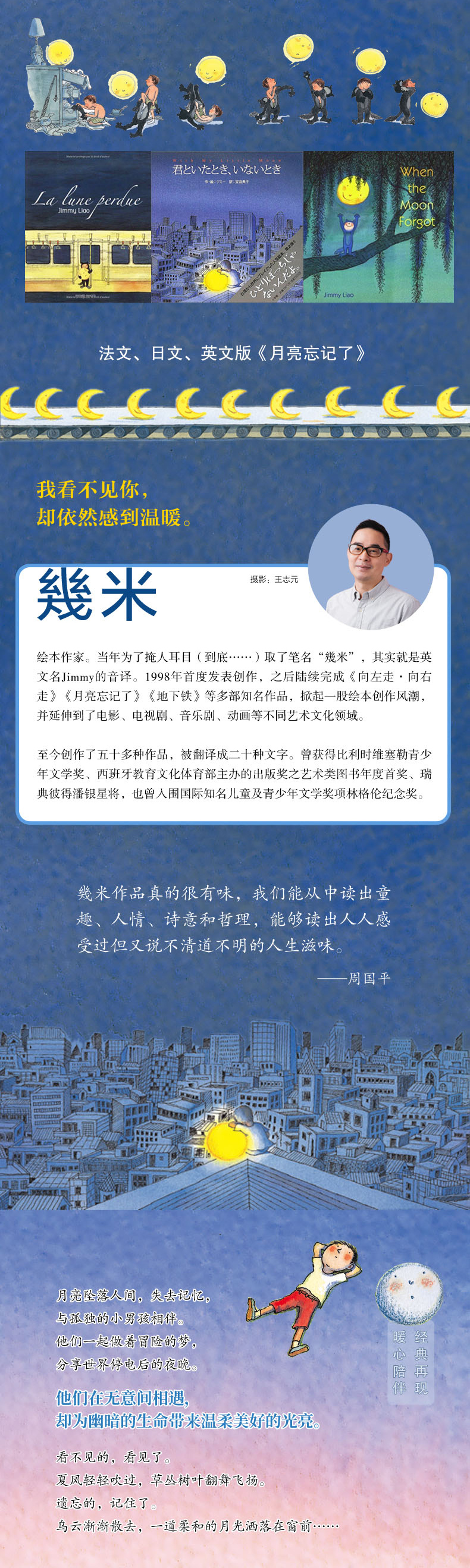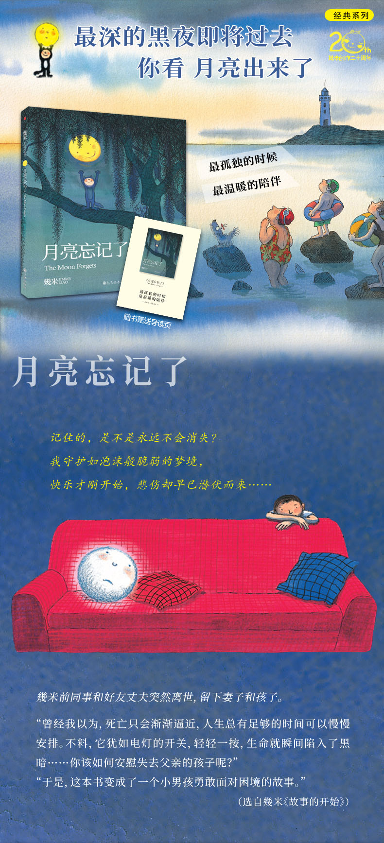 ★《月亮忘记了》是幾米知名的经典作品之一,创作于1999年台湾9.21大地震前夕,在那样的时期,它曾经治愈了许多孤单的心,也畅销至今